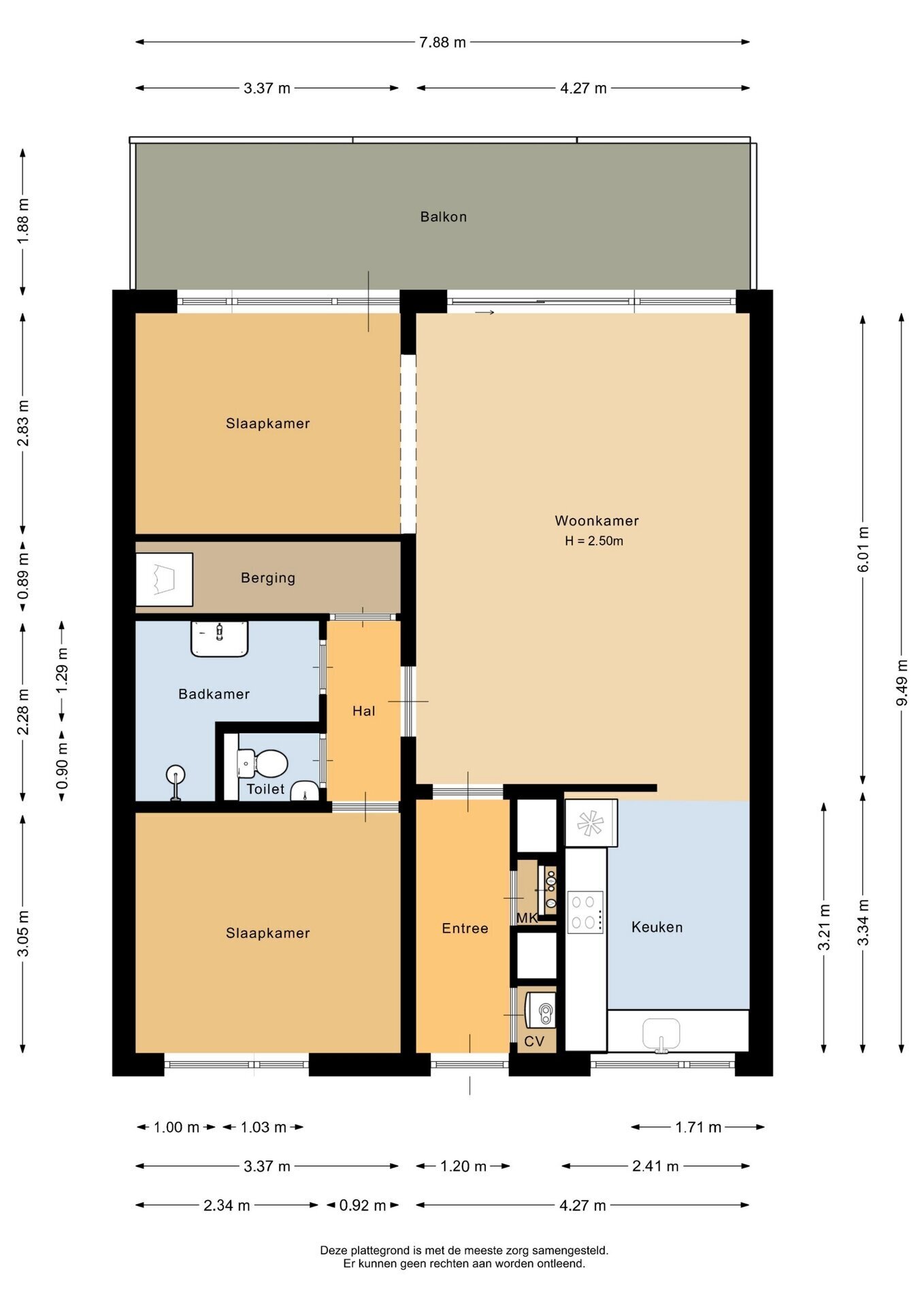 “Deze informatie is door ons met de nodige zorgvuldigheid samengesteld. Onzerzijds wordt echter geen enkele aansprakelijkheid aanvaard voor enige onvolledigheid, onjuistheid of anderszins, dan wel de gevolgen daarvan. Alle opgegeven maten en oppervlakten zijn indicatief.”