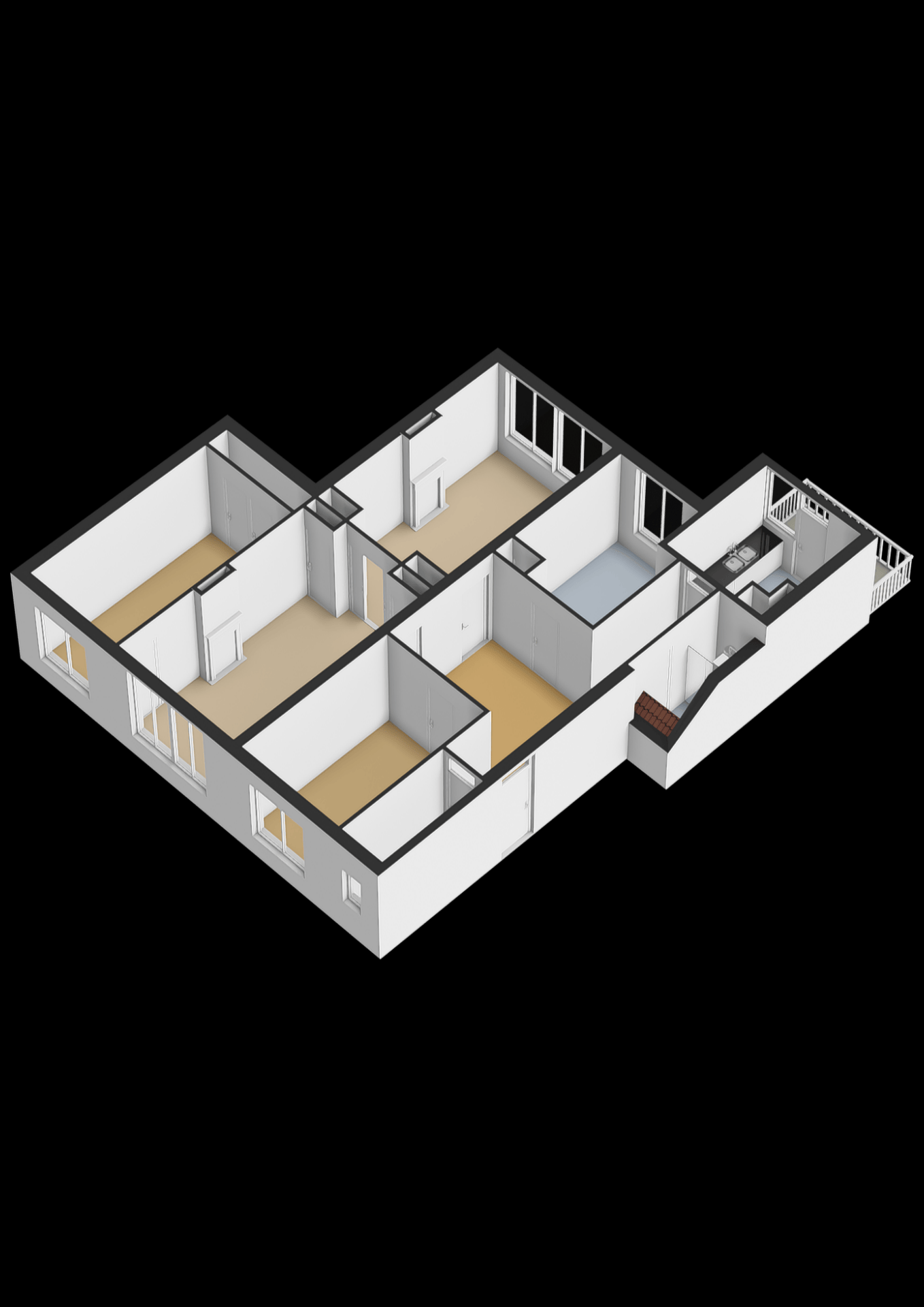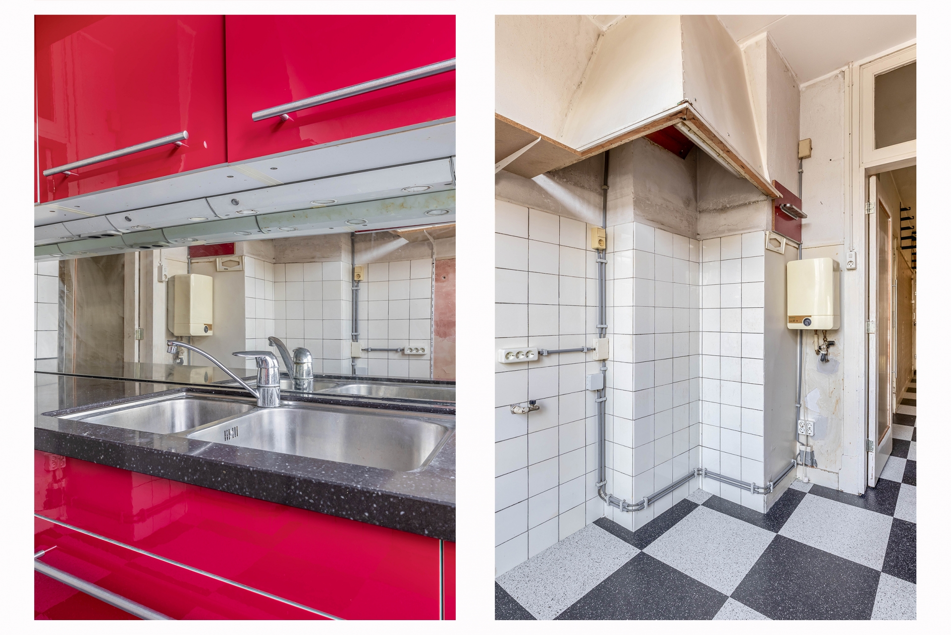 Aan de rechterzijde van de entree vind je de badkamer met toilet, compact maar functioneel. Aansluitend is er een doorgang naar de bijkeuken, een opvallend ruime ruimte die zich uitstekend leent voor het realiseren van een volwaardige keuken of zelfs een extra slaapkamer. Vanuit deze bijkeuken heb je tevens toegang tot het balkon aan de achterzijde, gelegen op Noordwesten.
