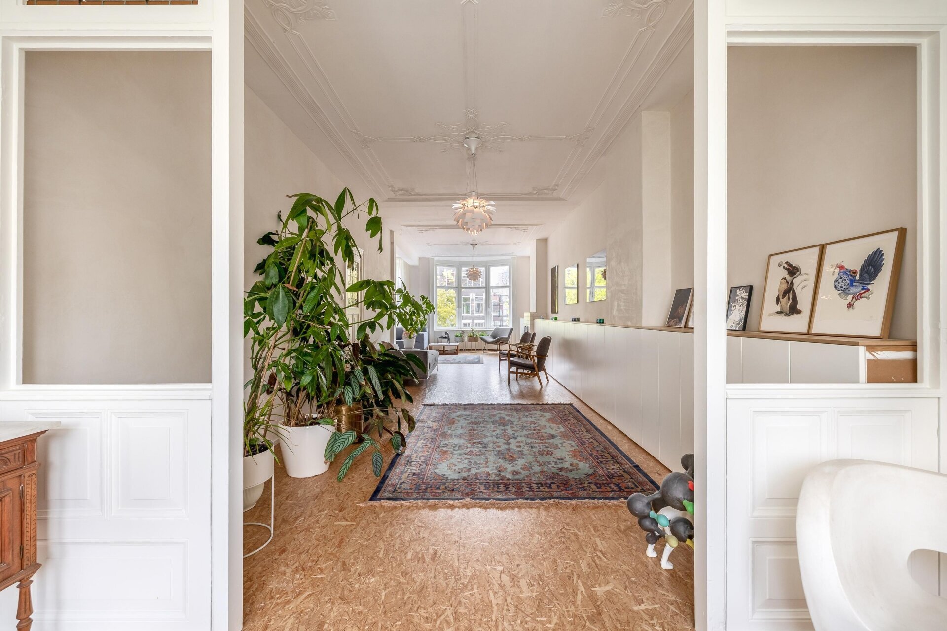 Wat meteen opvalt bij binnenkomst is het gevoel van ruimte. Op de tweede verdieping wordt je verrast door het karakter van deze woning vanuit vervlogen jaren met de prachtige ornamenten, glas-in-lood en paneeldeuren. Dit staat in prachtig contrast met de 2 verdiepingen erboven.