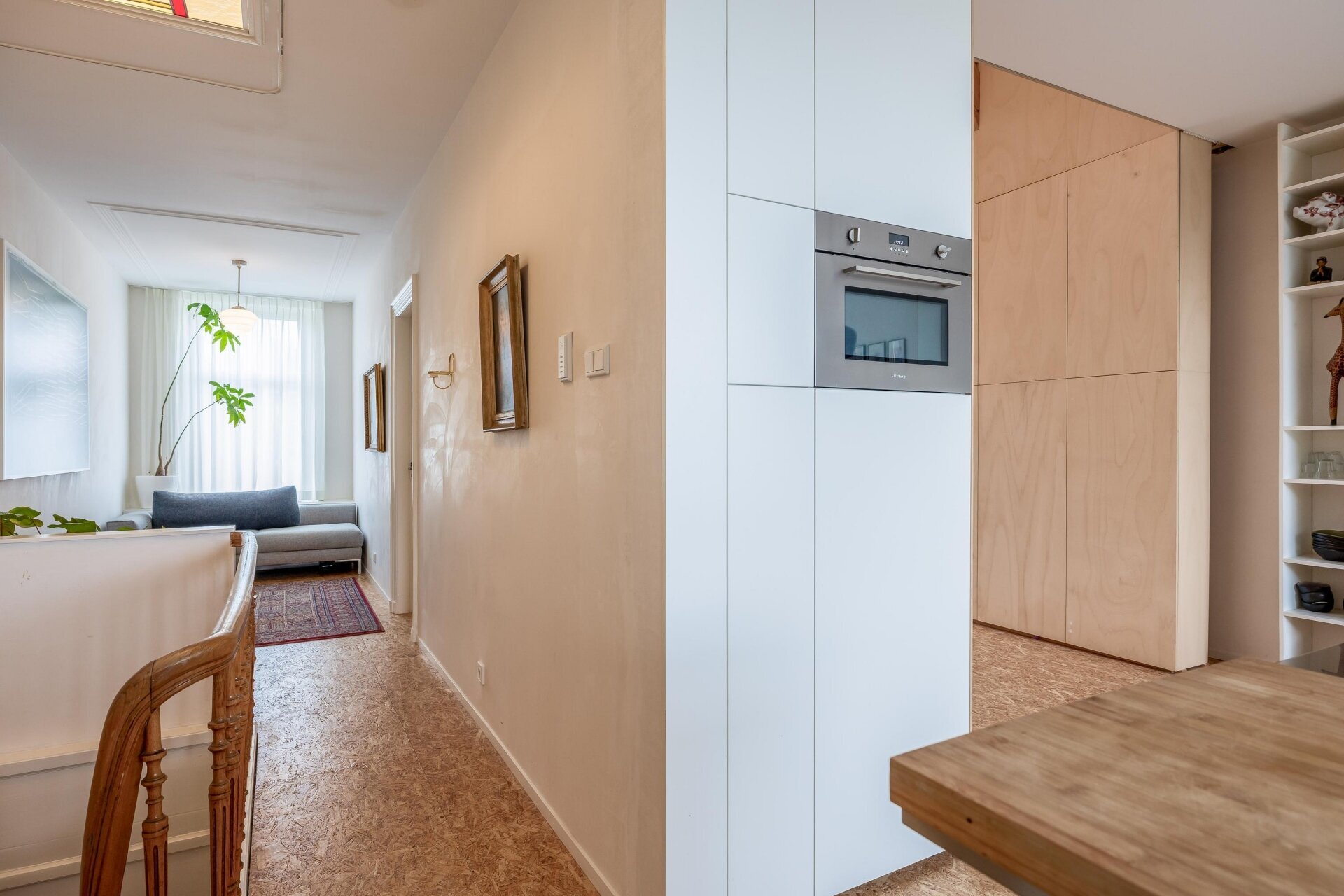 De woning is met veel liefde en visie verbouwd onder leiding van de huidige eigenaresse, die zelf architect is. Originele elementen zoals glas-in-loodramen, paneeldeuren en plafondornamenten zijn behouden gebleven en vormen een prachtig contrast met de moderne afwerking, slimme maatwerkkasten en open ruimtes.