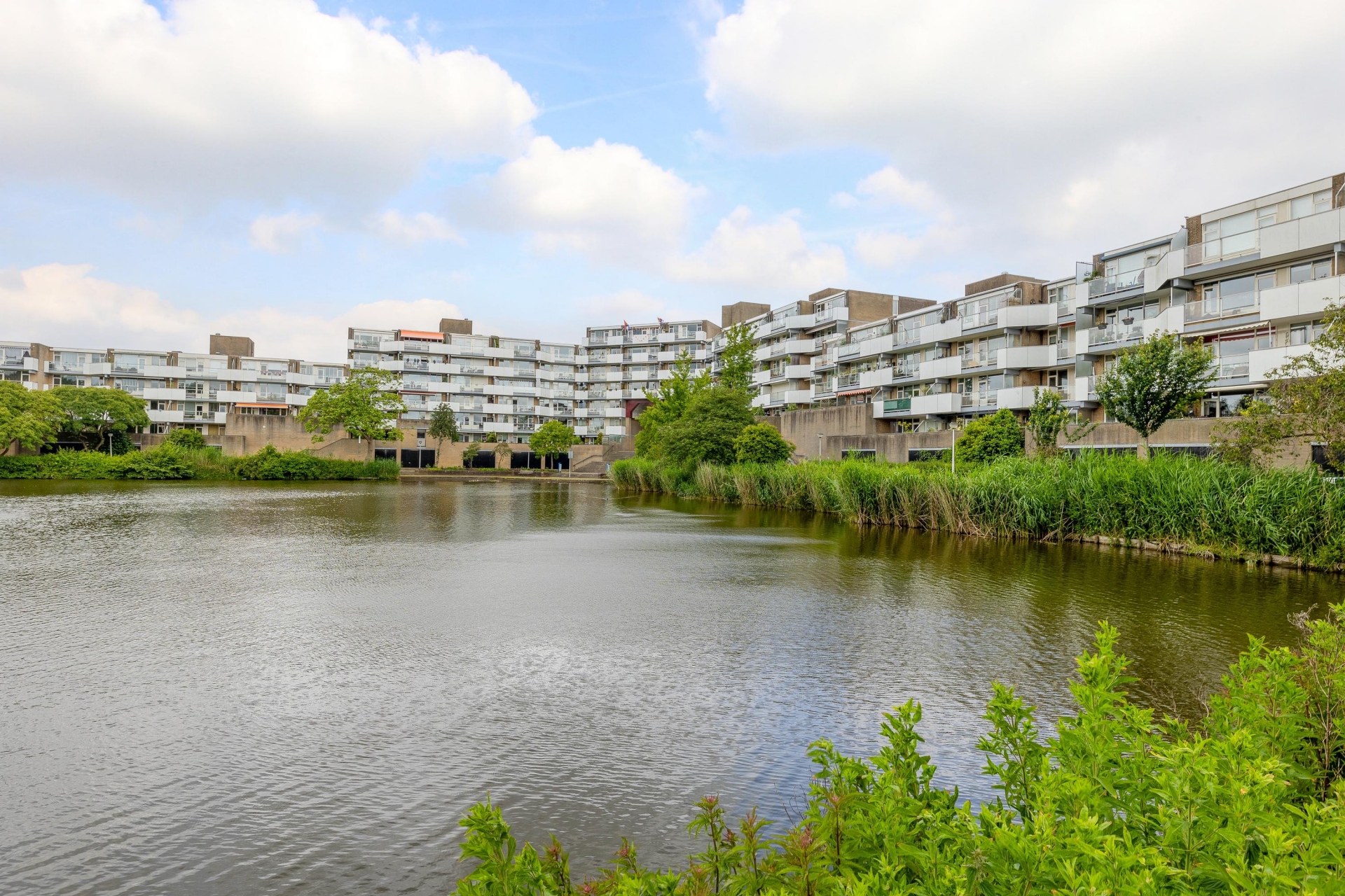 Het appartement is gelegen op de bovenste verdieping en beschikt over 72 m² woonoppervlakte. Dit is verdeeld over een lichte woonkamer met open keuken. Verder zijn er 2 ruime slaapkamers, een volledig betegelde badkamer en separaat het toilet. Middels de keuken en woonkamer is het balkon toegankelijk. Deze is zonnig gesitueerd namelijk op het zuidwesten en biedt een geweldig uitzicht over de vijver.