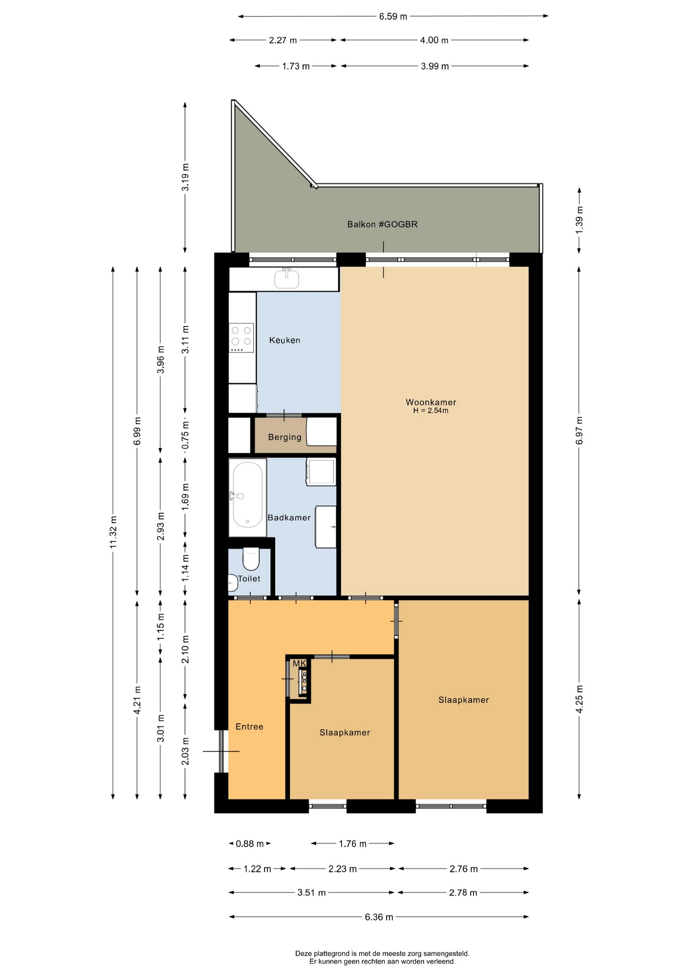 “Deze informatie is door ons met de nodige zorgvuldigheid samengesteld. Onzerzijds wordt echter geen enkele aansprakelijkheid aanvaard voor enige onvolledigheid, onjuistheid of anderszins, dan wel de gevolgen daarvan. Alle opgegeven maten en oppervlakten zijn indicatief.”