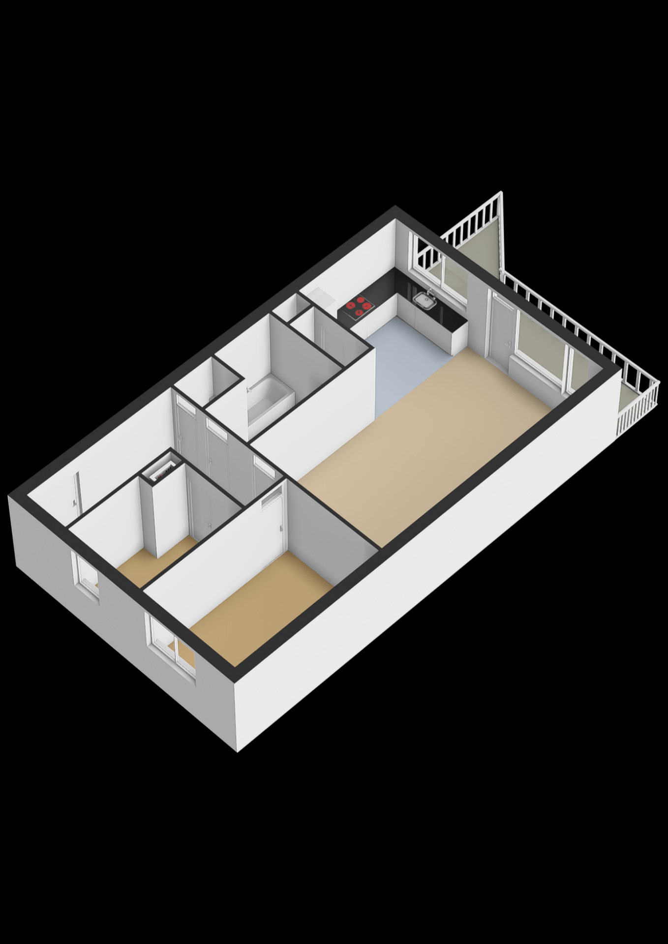 - Er zijn 2 slaapkamers aanwezig;