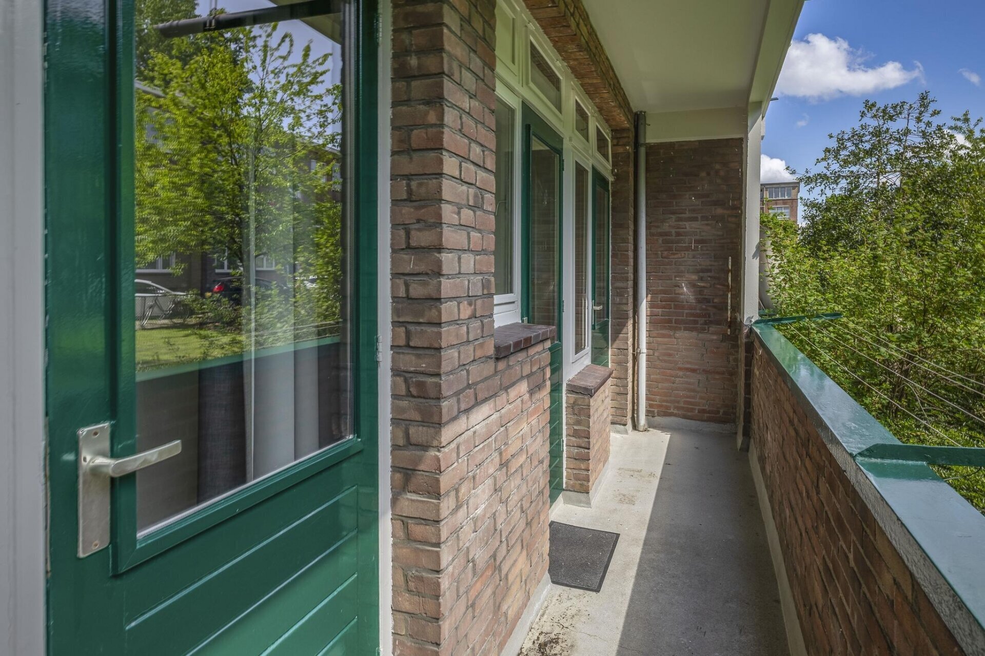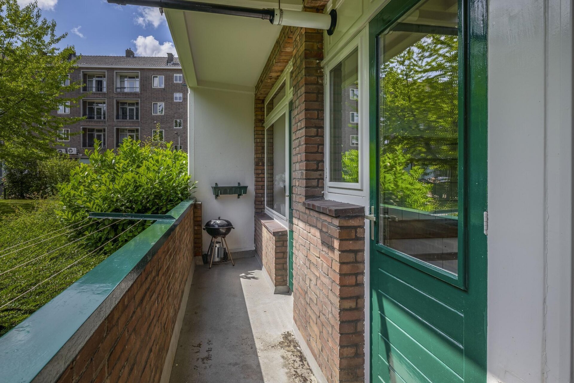 De ruime woonkamer ligt aan de rustige achterzijde en profiteert van een mooie plafondhoogte van 2.77 meter. De grote ramen zorgen voor een fijne lichtinval. De aparte keuken is praktisch ingedeeld, heeft toegang tot het balkon én is voorzien van een keukenblok met RVS werkblad. Hier kook je met plezier, met uitzicht op het groen. Extra fijn: ook de woonkamer en slaapkamer 2 geven toegang tot het balkon. En er is glasvezel aanwezig.