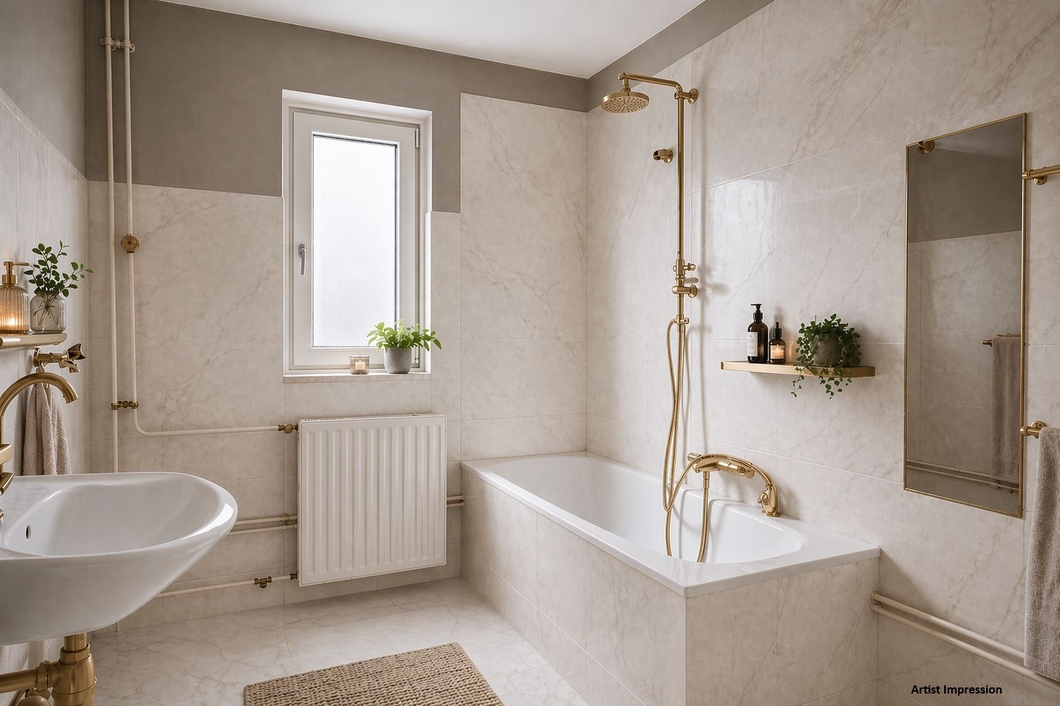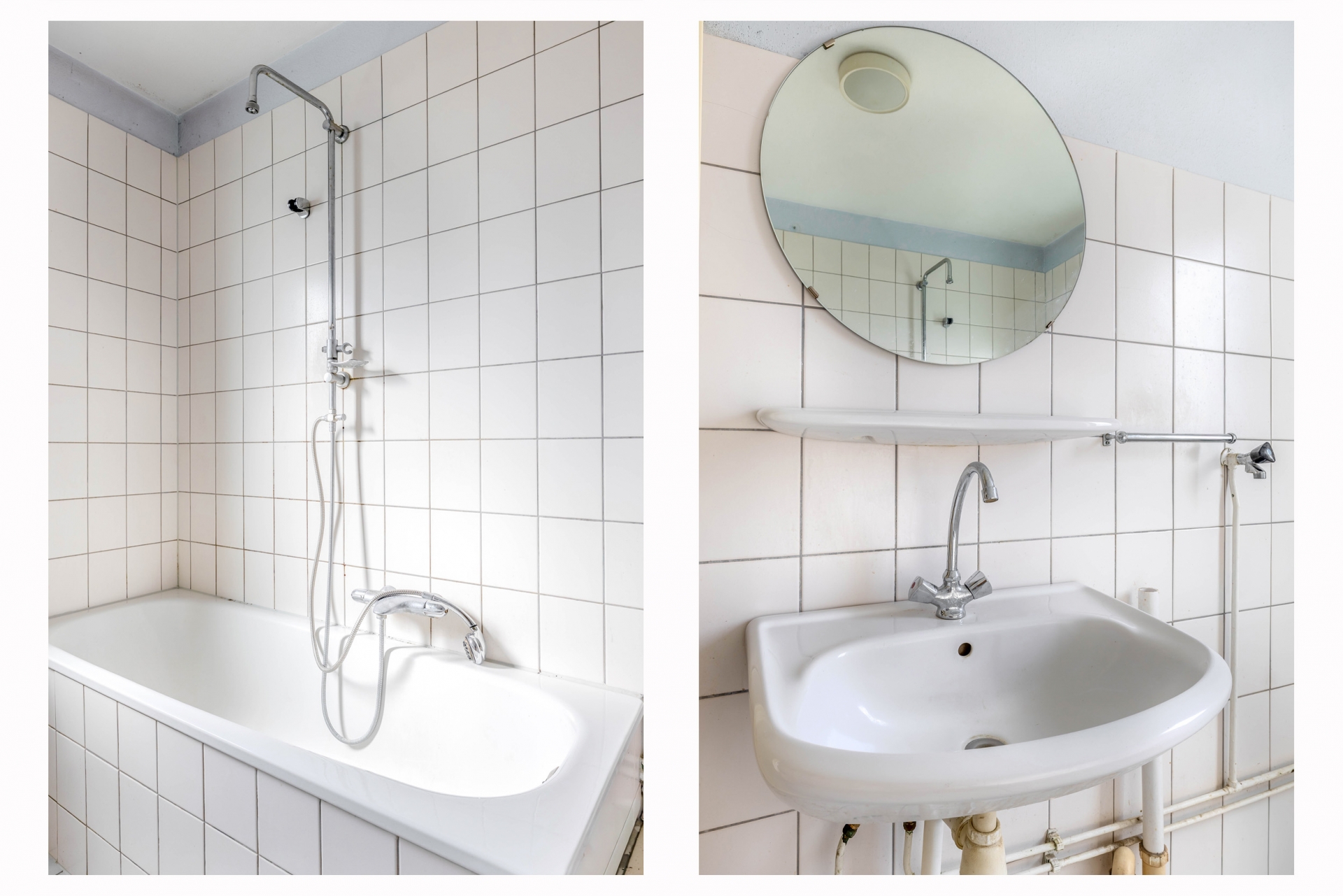 Op de eerste verdieping vind je twee slaapkamers, beide van goed formaat en prettig licht. De badkamer is voorzien van een ligbad en wastafel. Alles functioneert, maar is gedateerd en daarmee een mooie kans om het helemaal naar eigen smaak te vernieuwen.