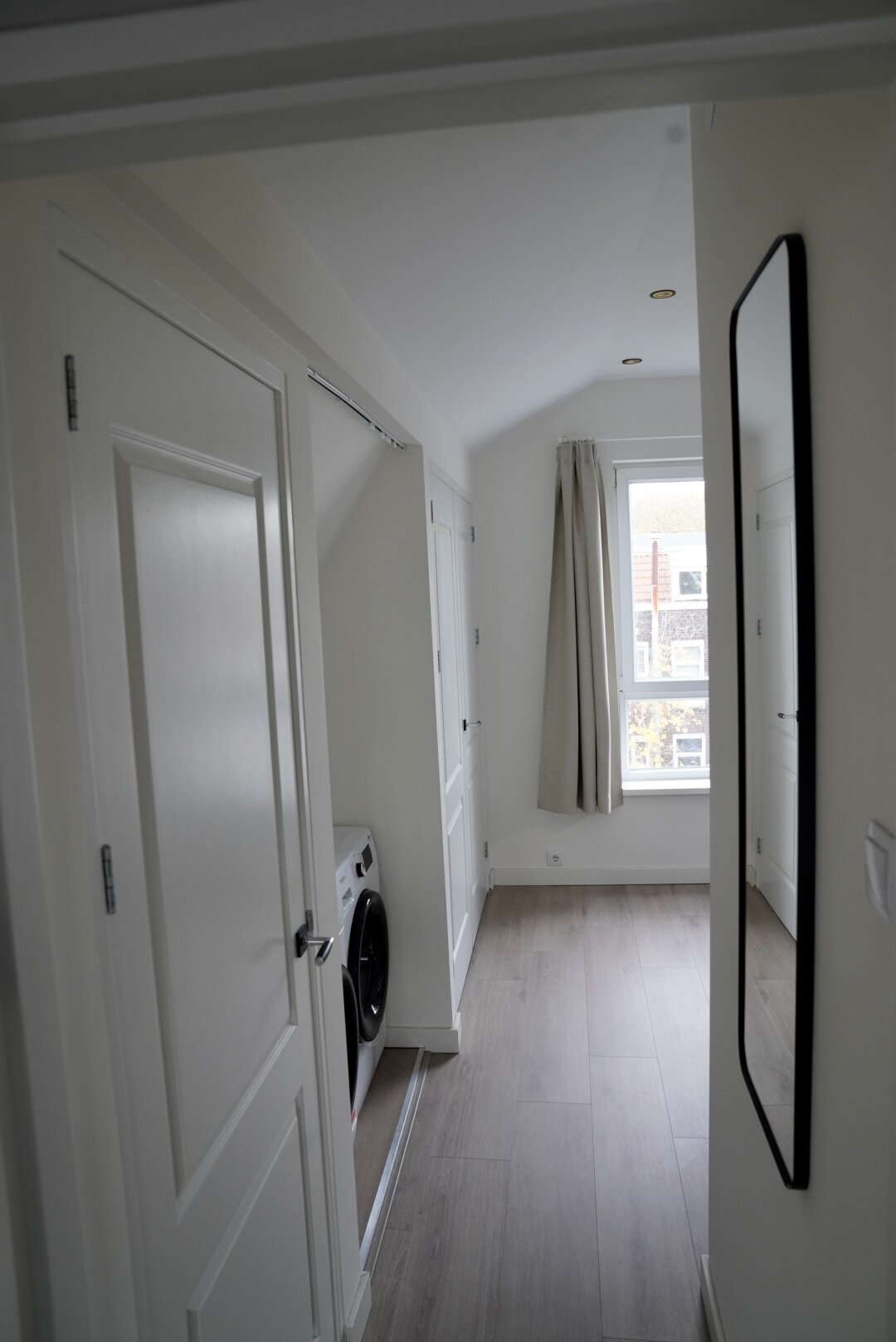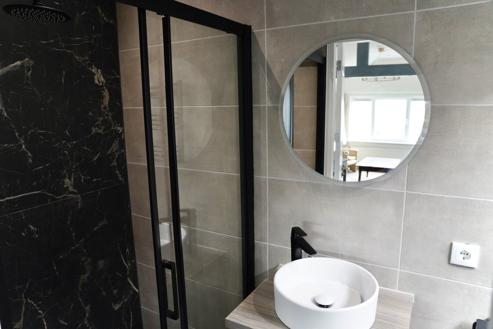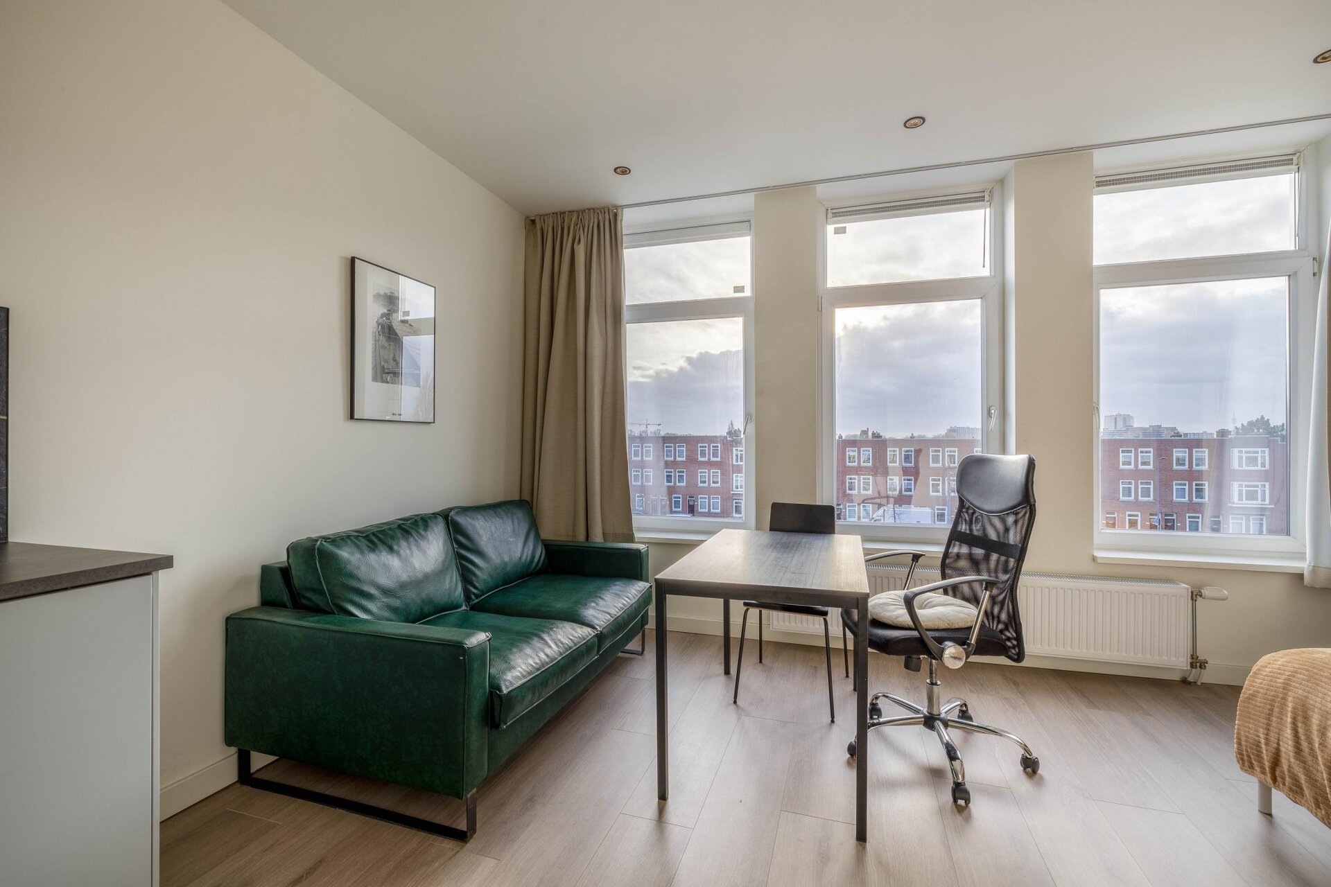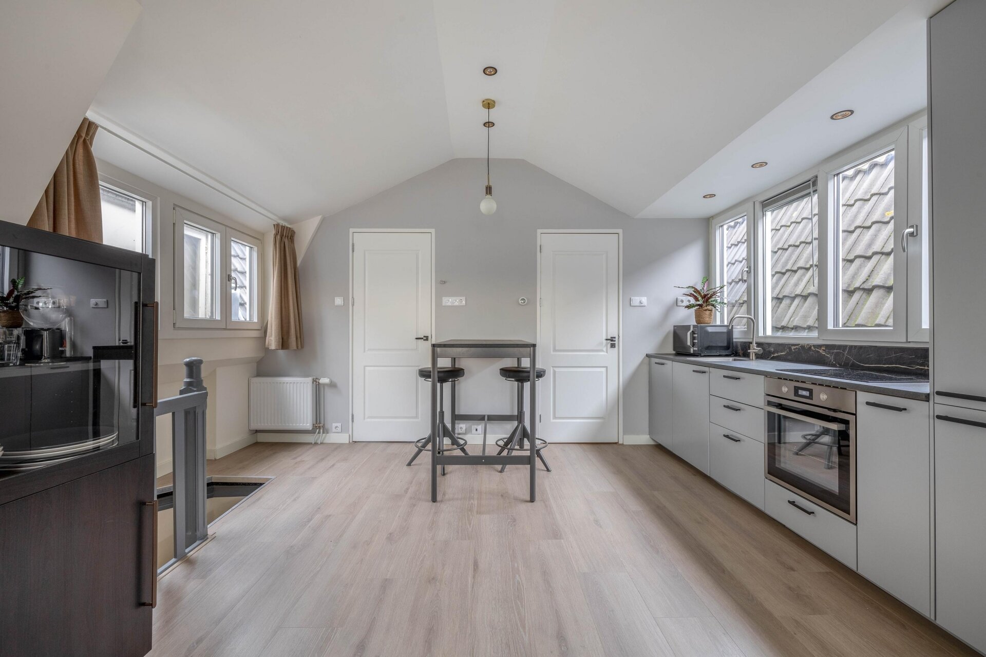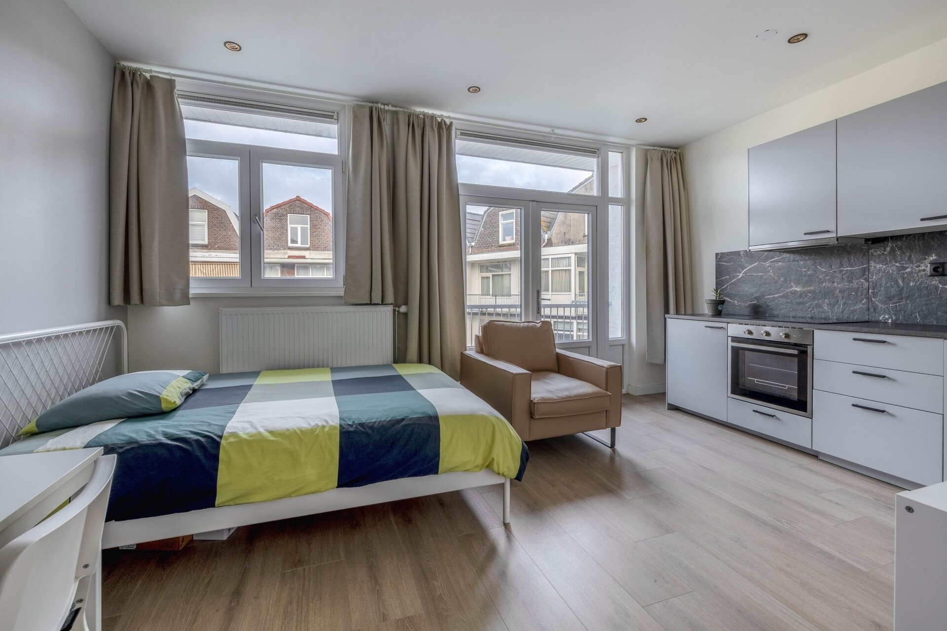 Studio 3 bevind zich op de 3e woonlaag en heeft een royale woonoppervlakte van ca. 54 m². Deze studio is voorzien van een compleet nieuw dak met isolatie en een dakkapel, geplaatst in 2020. De dakgoten zijn eveneens vernieuwd. Binnen biedt de studio een unieke indeling: een aparte slaapkamer en een open keuken op de overloop, die direct grenst aan de open woonkamer. De keuken, eveneens vernieuwd in 2020, beschikt over inbouwapparatuur en een inductiekookplaat. De badkamer is modern en voorzien van een inloopdouche, toilet, wastafel en meubel.