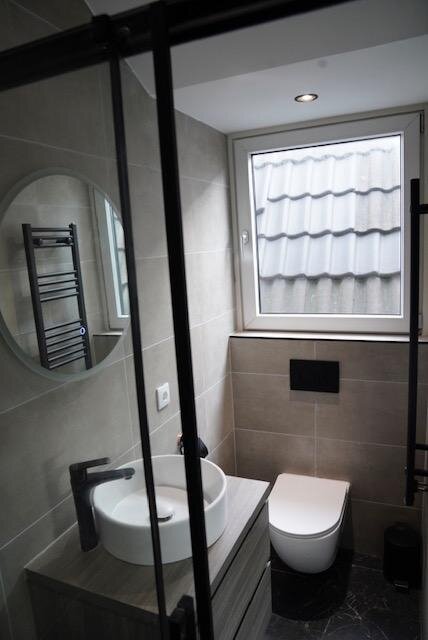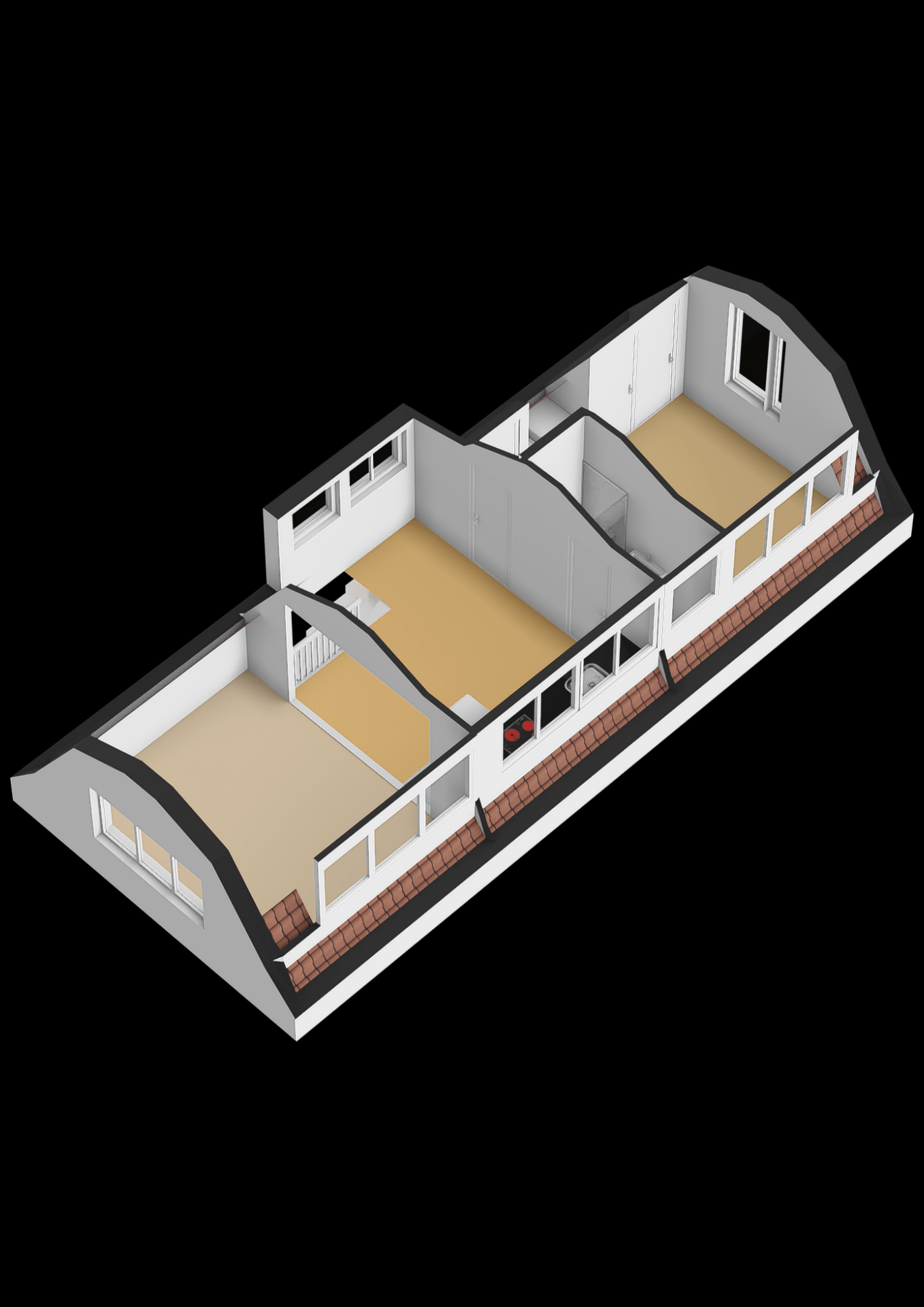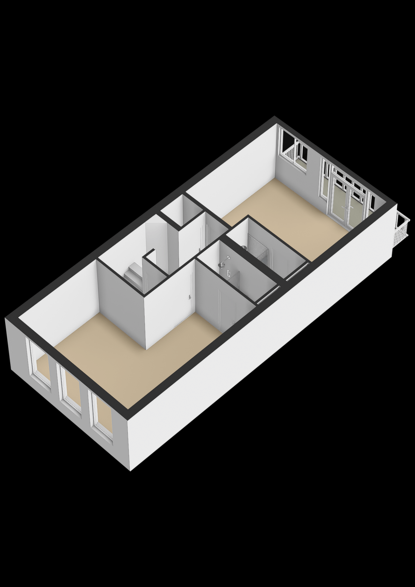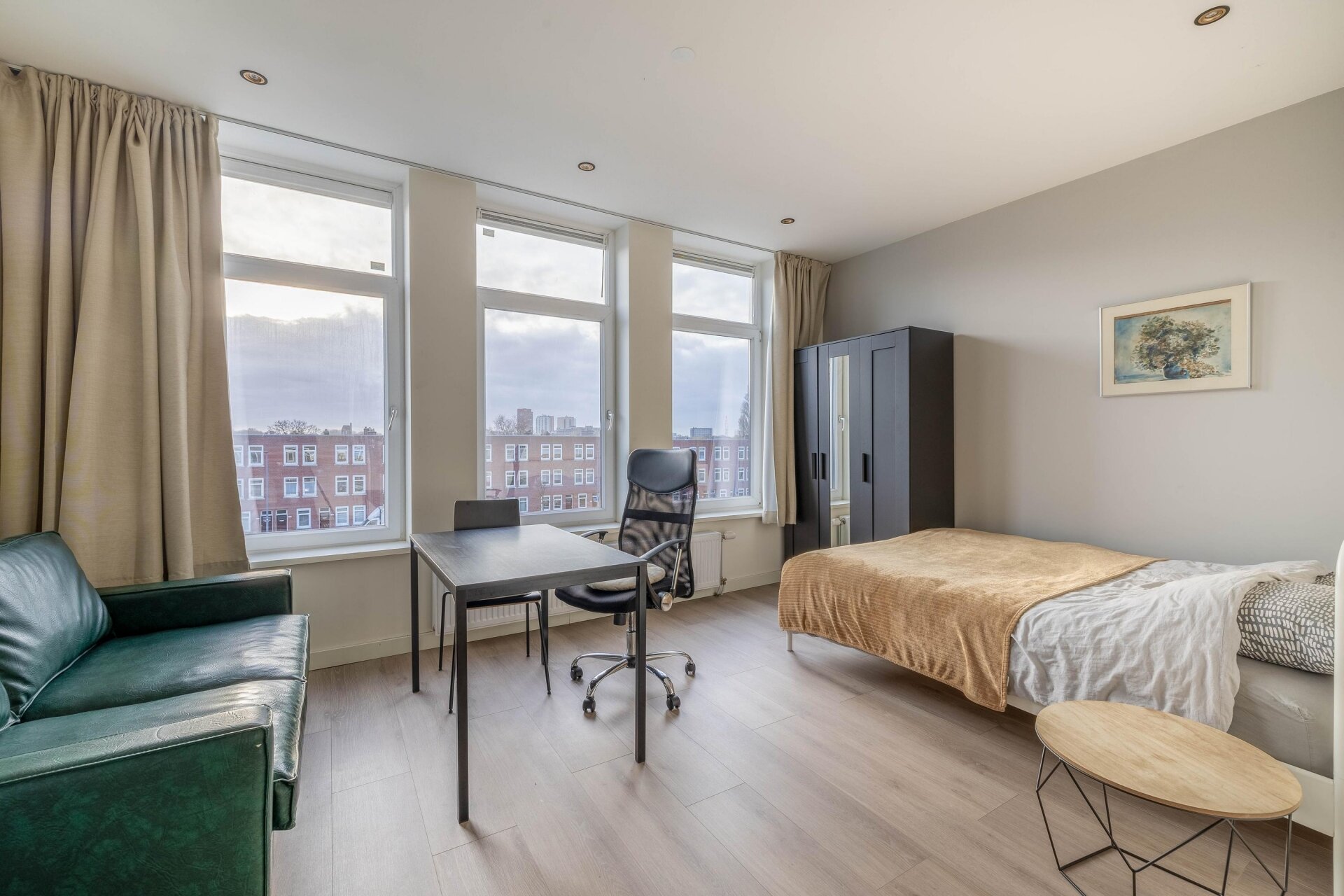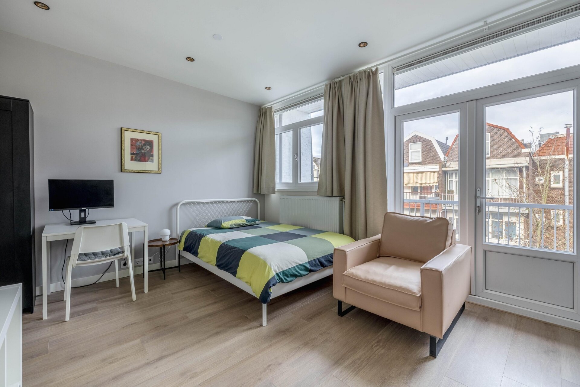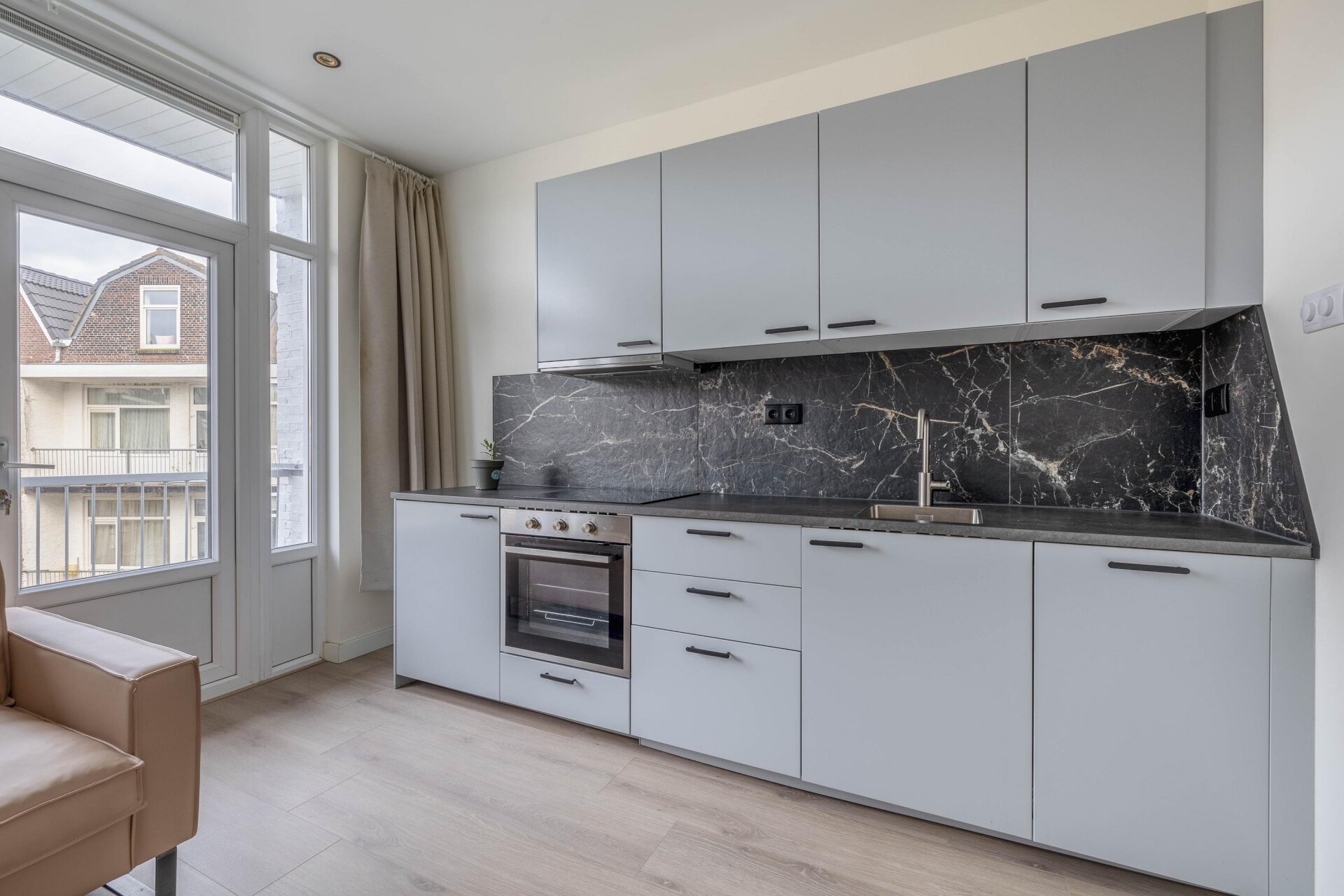 Studio 3 bevind zich op de 3e woonlaag en heeft een royale woonoppervlakte van ca. 54 m². Deze studio is voorzien van een compleet nieuw dak met isolatie en een dakkapel, geplaatst in 2020. De dakgoten zijn eveneens vernieuwd. Binnen biedt de studio een unieke indeling: een aparte slaapkamer en een open keuken op de overloop, die direct grenst aan de open woonkamer. De keuken, eveneens vernieuwd in 2020, beschikt over inbouwapparatuur en een inductiekookplaat. De badkamer is modern en voorzien van een inloopdouche, toilet, wastafel en meubel.