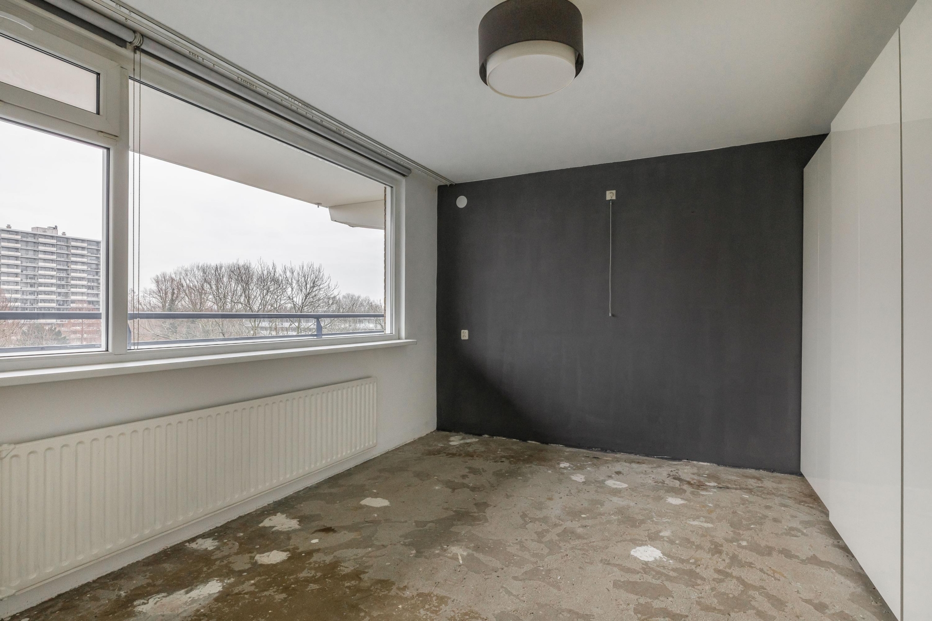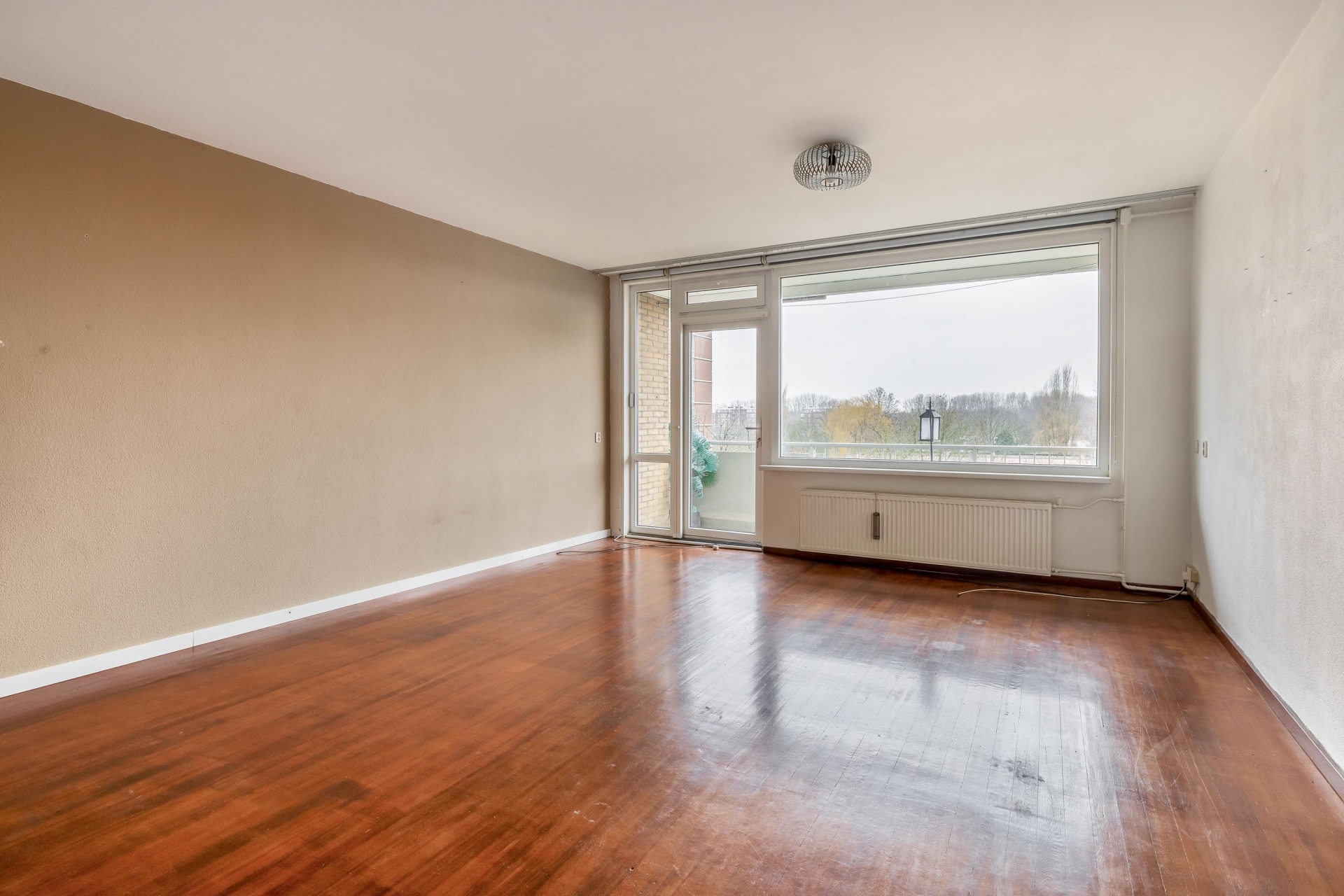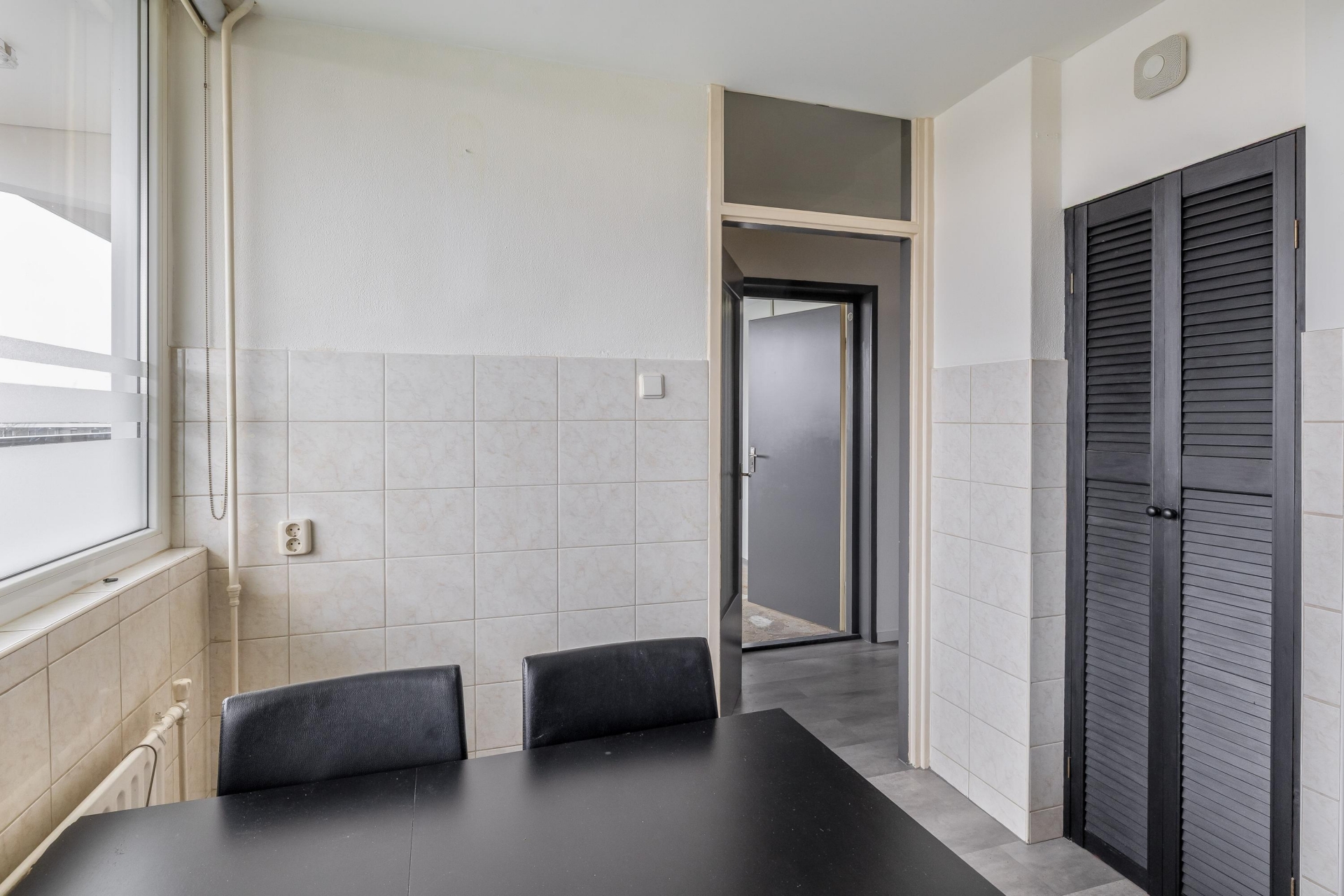 De ruime woonkamer ligt aan de achterzijde en is dankzij de grote raampartij op het zuidwesten heerlijk licht. Vanuit hier heb je een vrij uitzicht en stap je direct het balkon op: een fijne verlenging van de leefruimte.