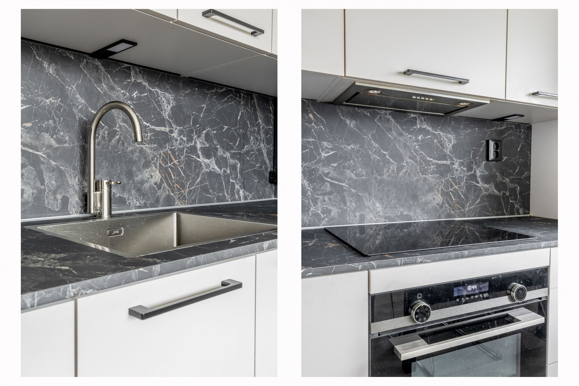 Aan de voorzijde bevindt zich de moderne keuken, uitgevoerd in een lichte kleurstelling en voorzien van diverse inbouwapparatuur. Door de royale opzet is er bovendien voldoende ruimte voor een eettafel, waardoor dit echt een prettige plek is om samen te koken en te eten.
