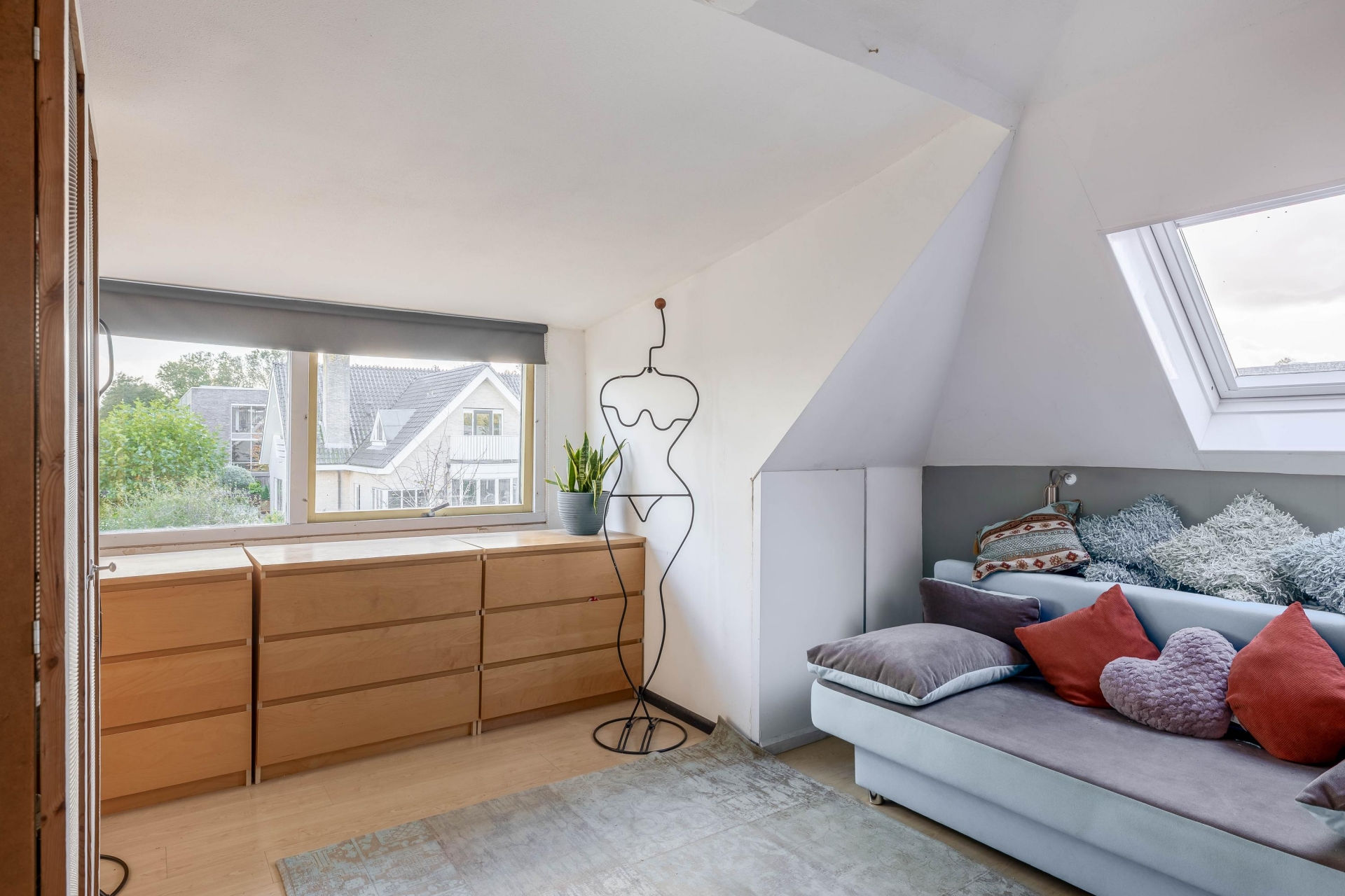 De slaapkamer aan de rechterzijde beschikt over twee vaste kasten en een opbergkast onder het schuine dak, ideaal voor extra opbergruimte. De slaapkamer aan de linkerzijde is voorzien van een ruime inloopkast (7 m2), wat zorgt voor een luxe uitstraling en optimaal gebruiksgemak. En een ruime opbergkast boven het trapgat.