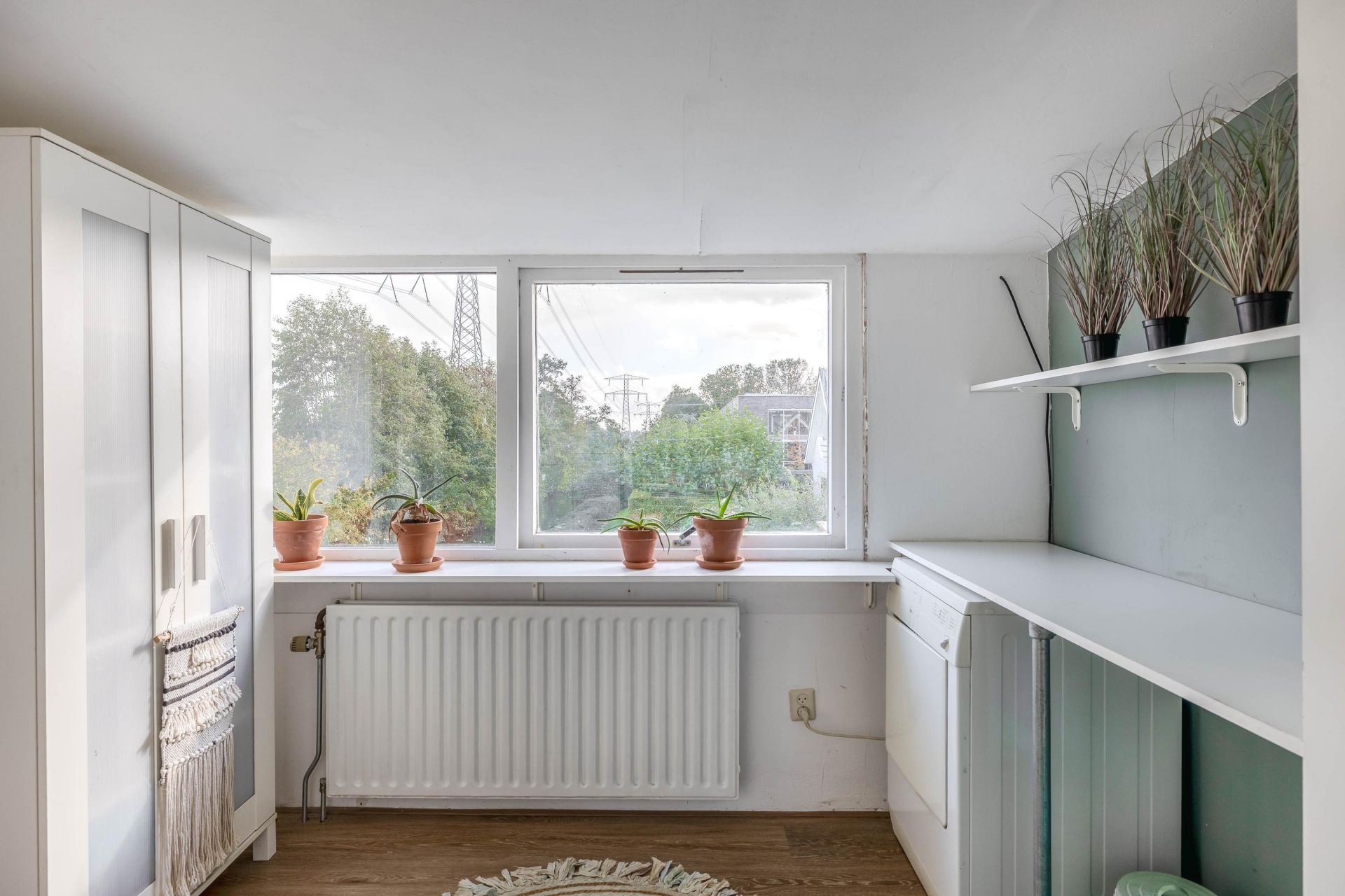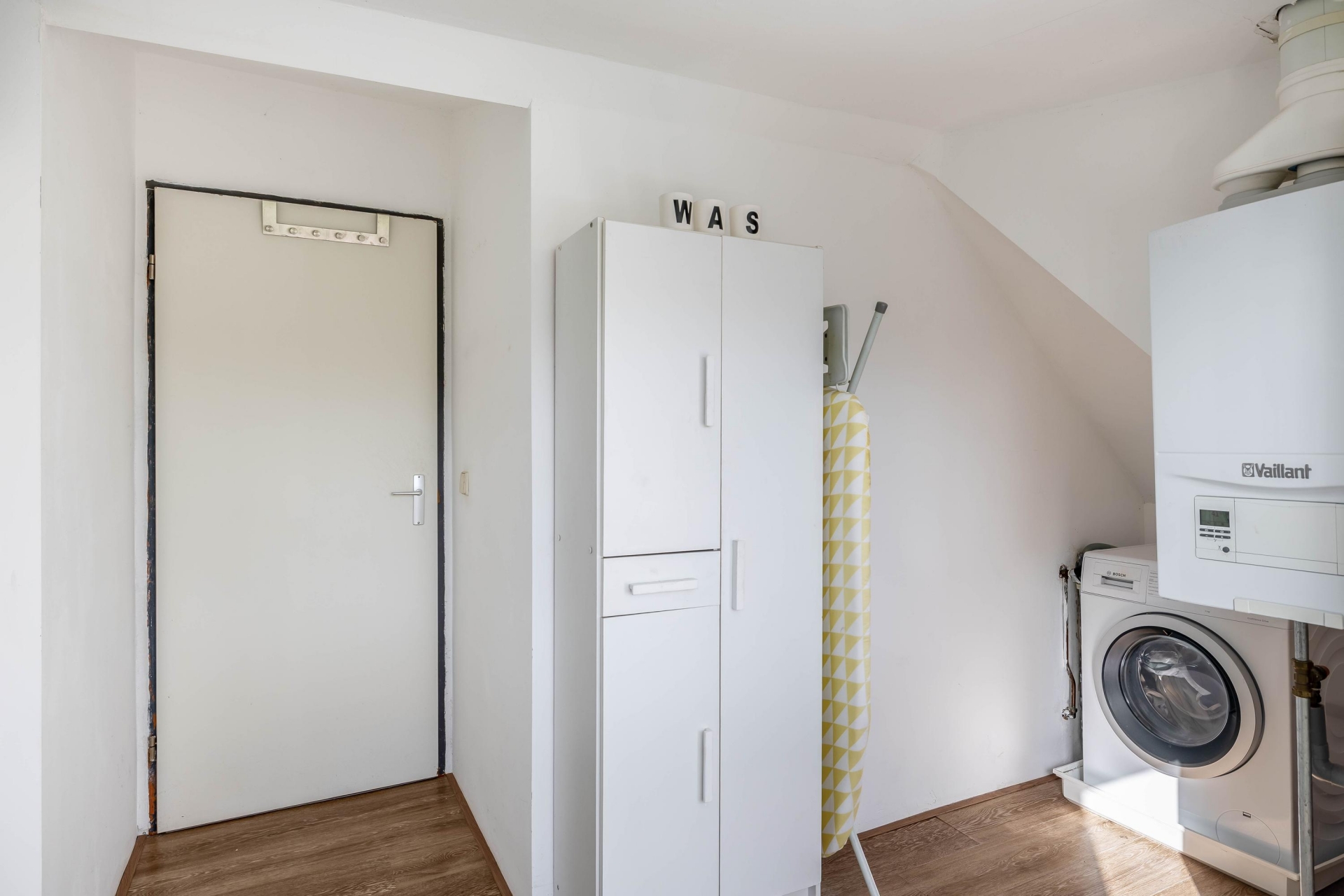 Aan het einde van de overloop bevinden zich de wasruimte en de badkamer. De wasruimte is royaal opgezet (ongeveer 8 m²) en biedt volop mogelijkheden. Met enkele eenvoudige aanpassingen kan deze ruimte desgewenst worden omgevormd tot een derde slaapkamer of hobbykamer.