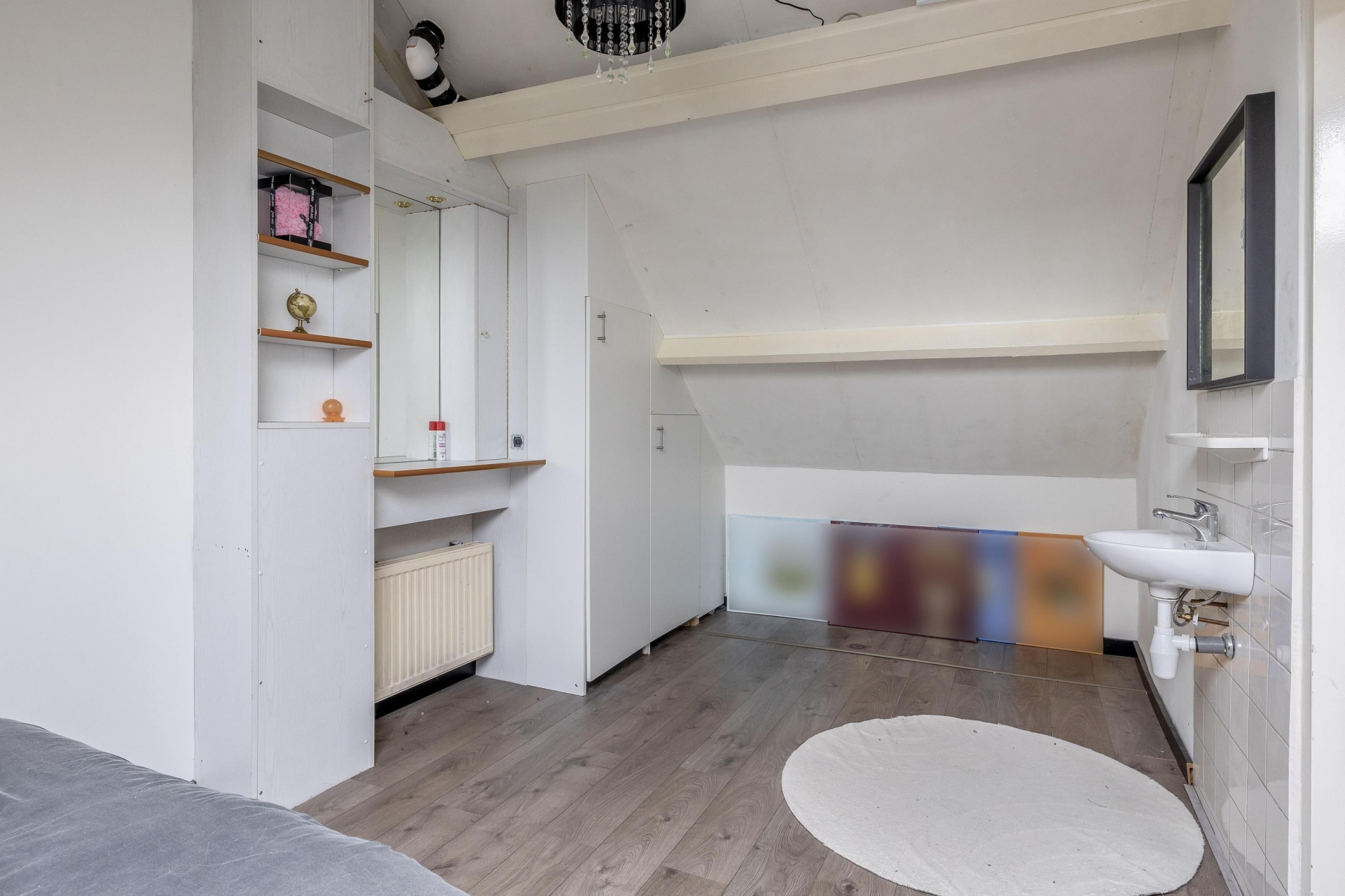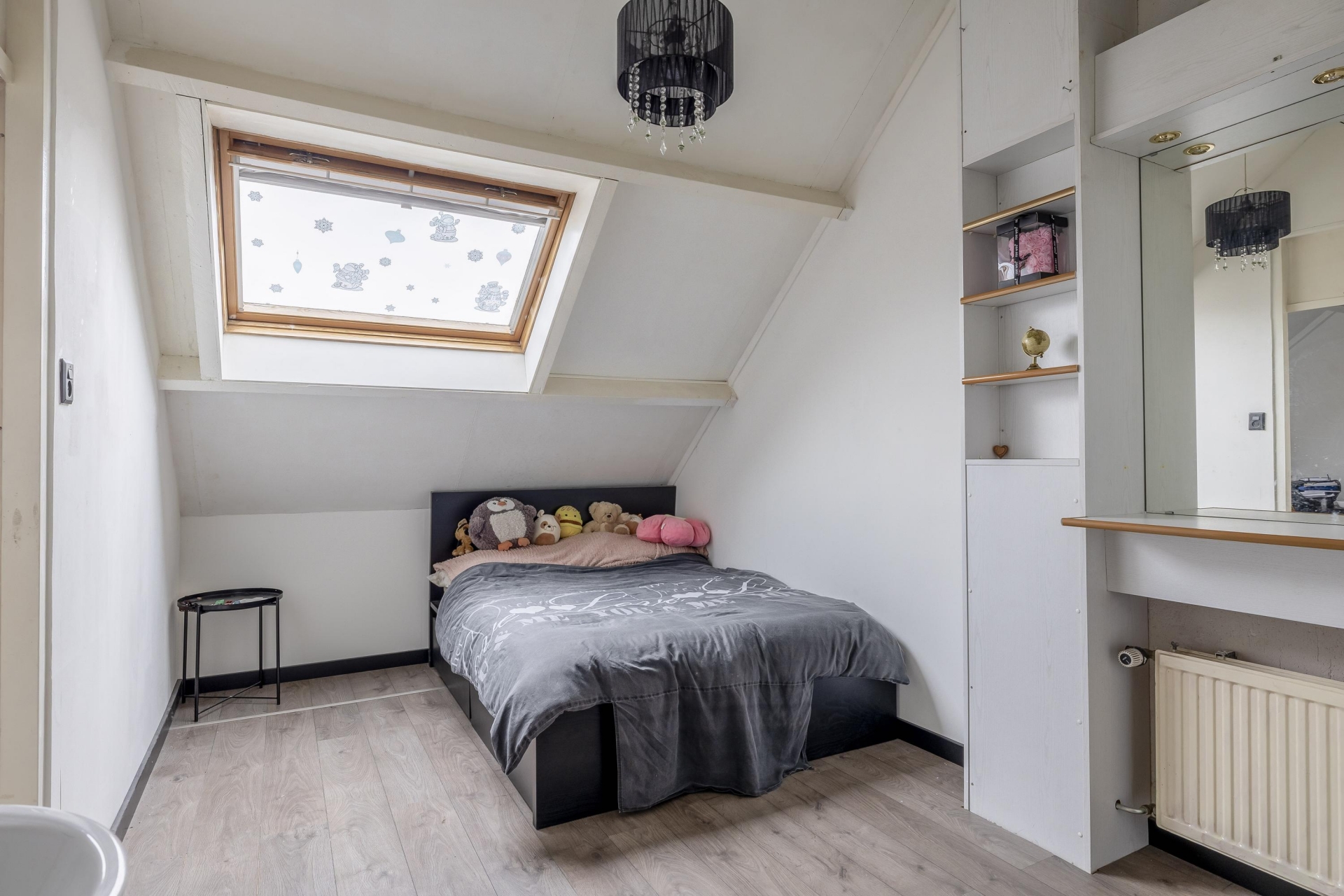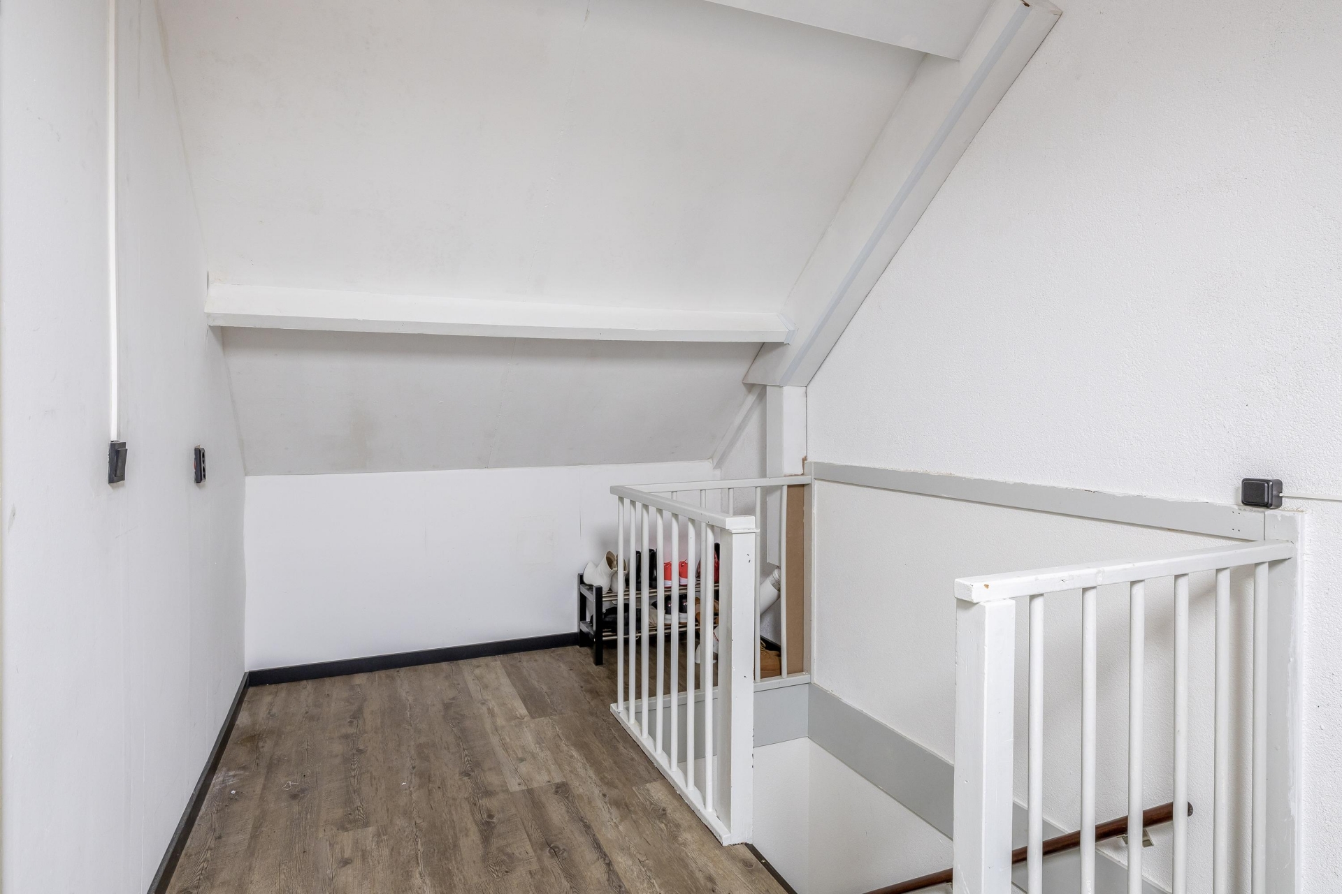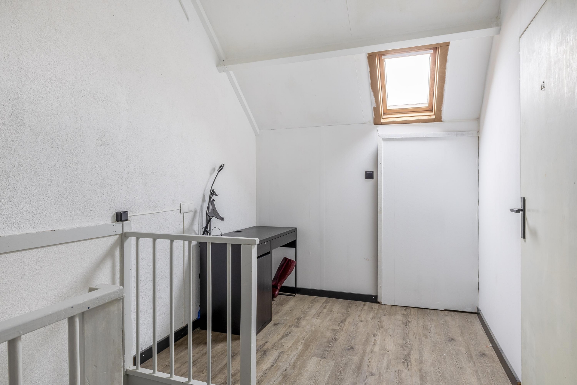 Op de eerste verdieping zijn 3 slaapkamers en een badkamer. De badkamer is volledig betegeld en voorzien van een douche, wastafel met meubel, toilet en de aansluiting voor de wasmachine. Door het aanwezige dakraam is er voldoende daglicht toetreding en genoeg natuurlijke en mechanische ventilatie. Middels een vaste trap is er toegang tot de 2e verdieping. Hier is een ruime 4e slaapkamer aanwezig. Aan bergruimte ook geen gebrek. Achter een schot is voldoende ruimte voor het opbergen van de seizoensgebonden spullen.
