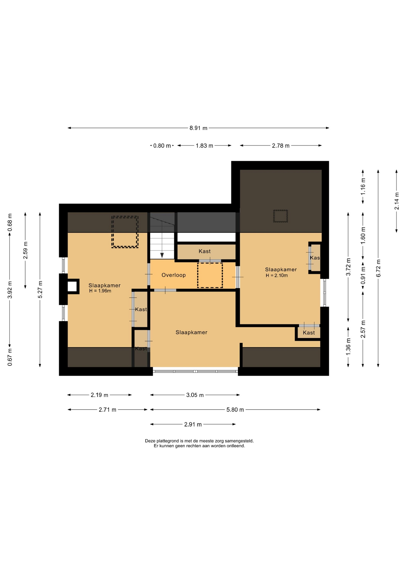 “Deze informatie is door ons met de nodige zorgvuldigheid samengesteld. Onzerzijds wordt echter geen enkele aansprakelijkheid aanvaard voor enige onvolledigheid, onjuistheid of anderszins, dan wel de gevolgen daarvan. Alle opgegeven maten en oppervlakten zijn indicatief.”