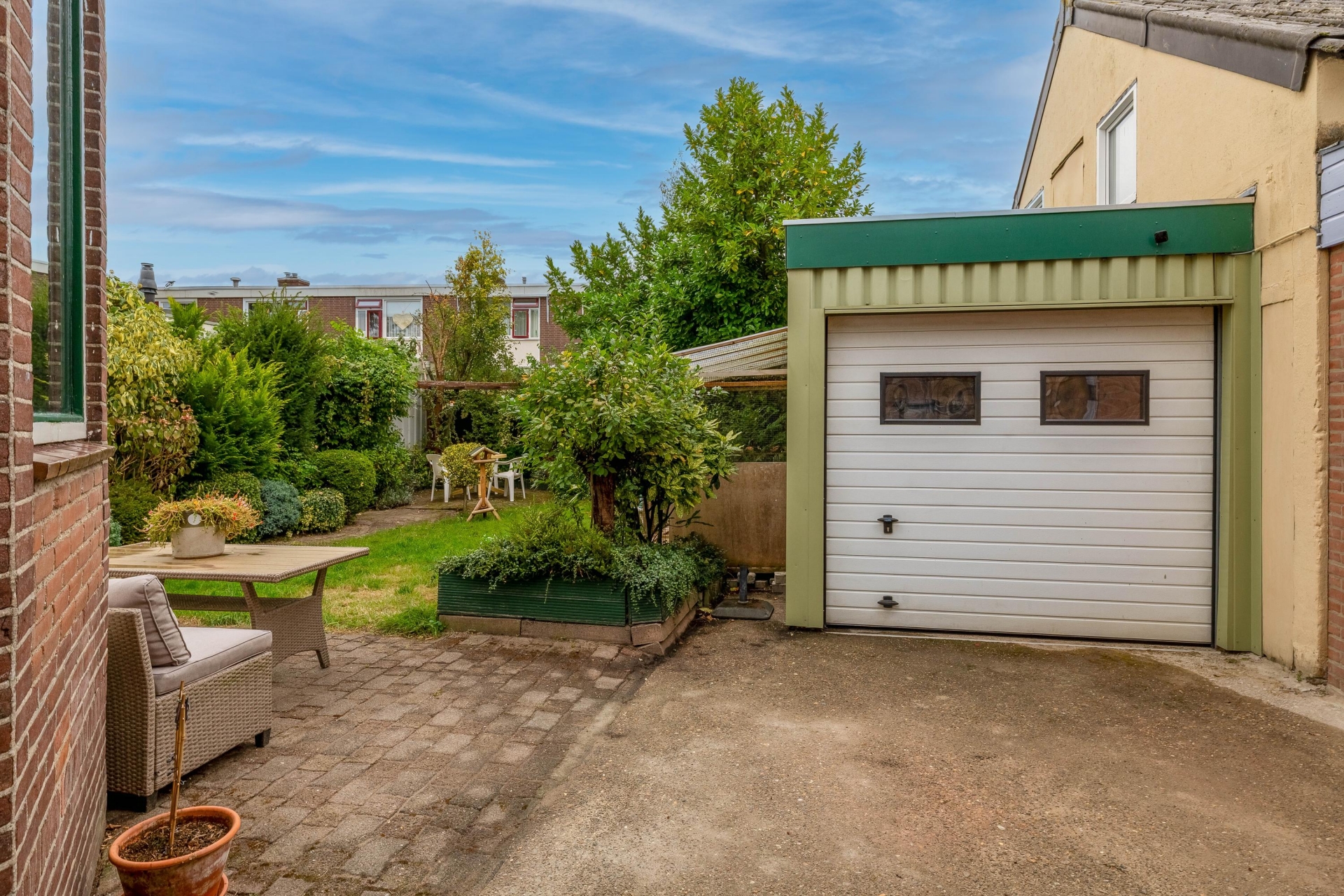 Achter in de tuin staat een vrijstaande garage waarin een auto past — ideaal voor wie graag binnen parkeert of extra bergruimte zoekt.