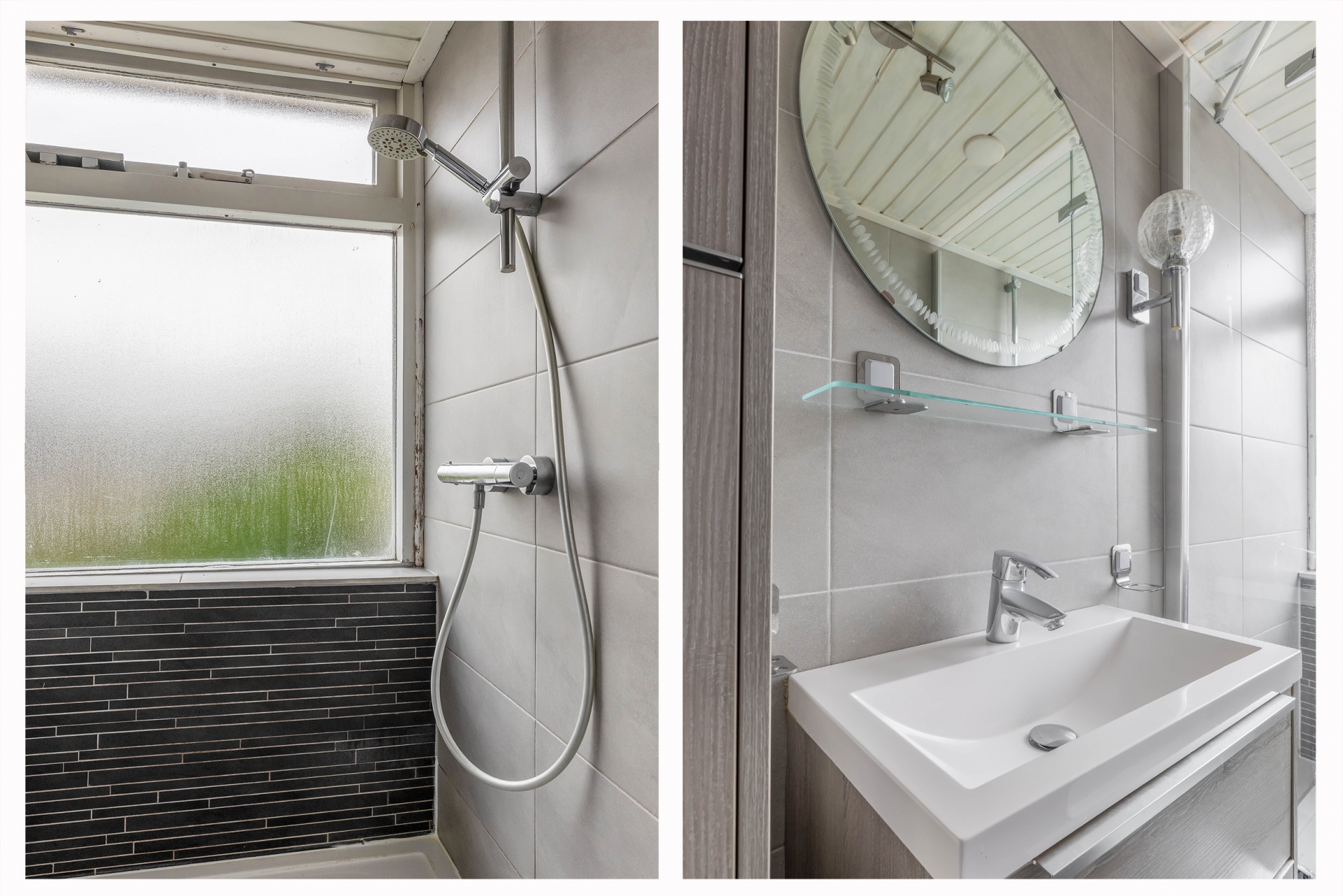De badkamer is functioneel ingedeeld met een douche, wastafel en daglichttoetreding. Daarnaast is er op deze verdieping een apart toilet geplaatst – een recente verbetering die extra comfort biedt.