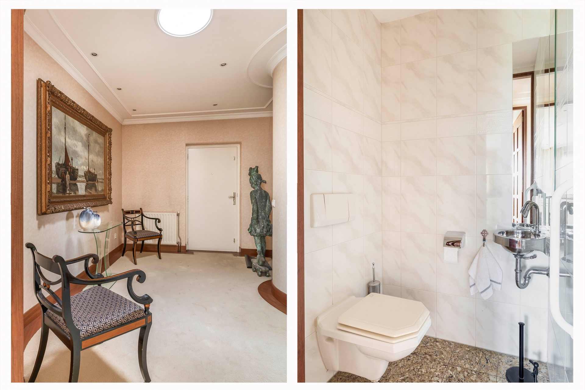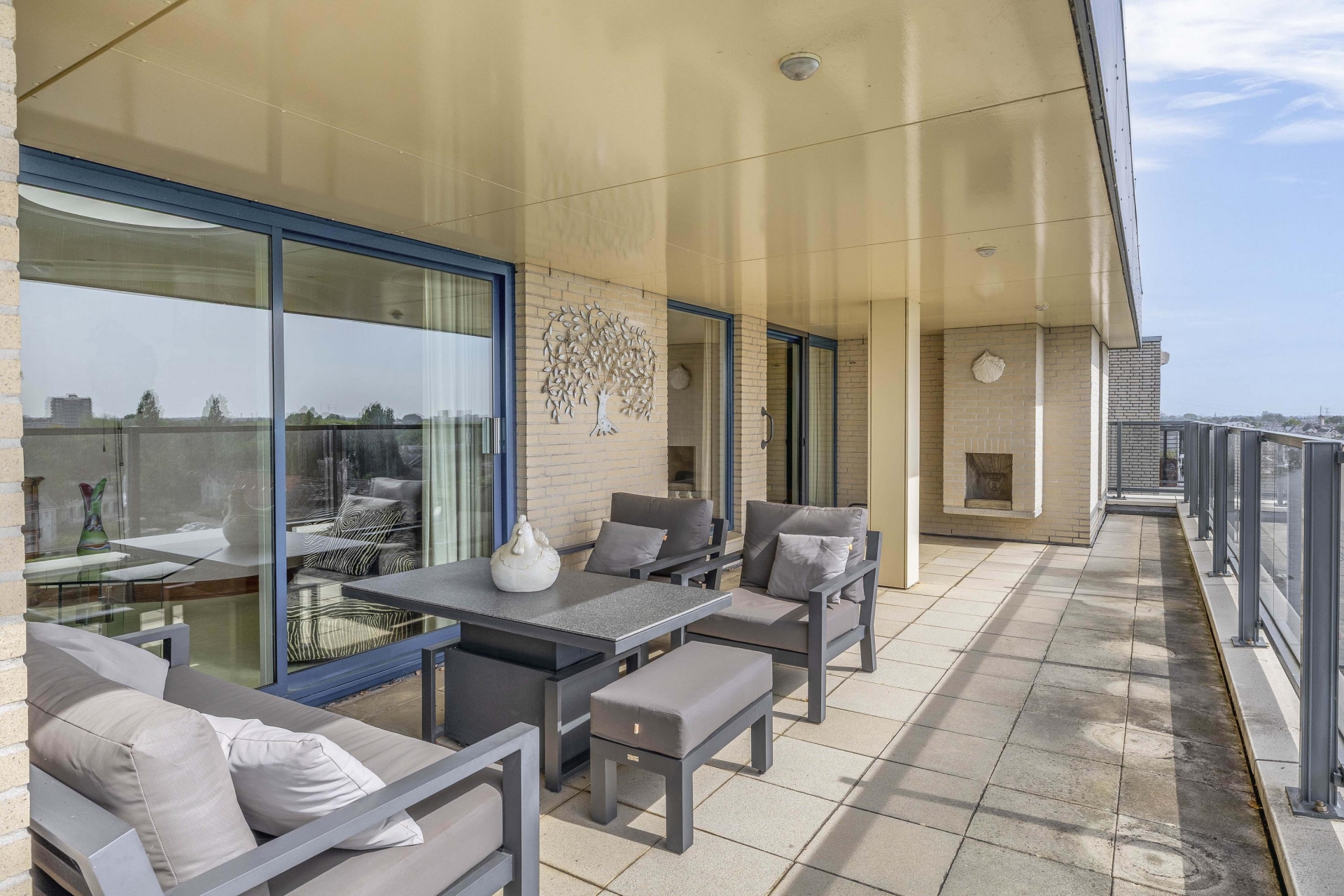 Wanneer u het penthouse betreedt, wordt u begroet door een ruime hal die toegang biedt tot een praktische vaste kast, een chic toilet, de royale woonkamer en de keuken. De keuken, uitgevoerd in een elegante U-opstelling, is uitgerust met hoogwaardige inbouwapparatuur en een praktische inpandige kast voor uw voorraad. De woonkamer vormt het kloppende hart van het appartement en is omringd door talloze raampartijen die zorgen voor een overvloed aan daglicht. Het gaat niet alleen om de ruimte, maar vooral om het sensationele uitzicht! Via verschillende schuifpuien heeft u toegang tot een prachtig dakterras, waar u optimaal kunt genieten van het buitenleven. De woonkamer biedt ook toegang tot twee sfeervolle slaapkamers, evenals een kantoorruimte die uiteraard ook als derde slaapkamer kan dienen. Beide slaapkamers zijn voorzien van een luxe badkamer ensuite, terwijl de master bedroom bovendien beschikt over een royale inloopkast en een aangrenzende wasruimte.