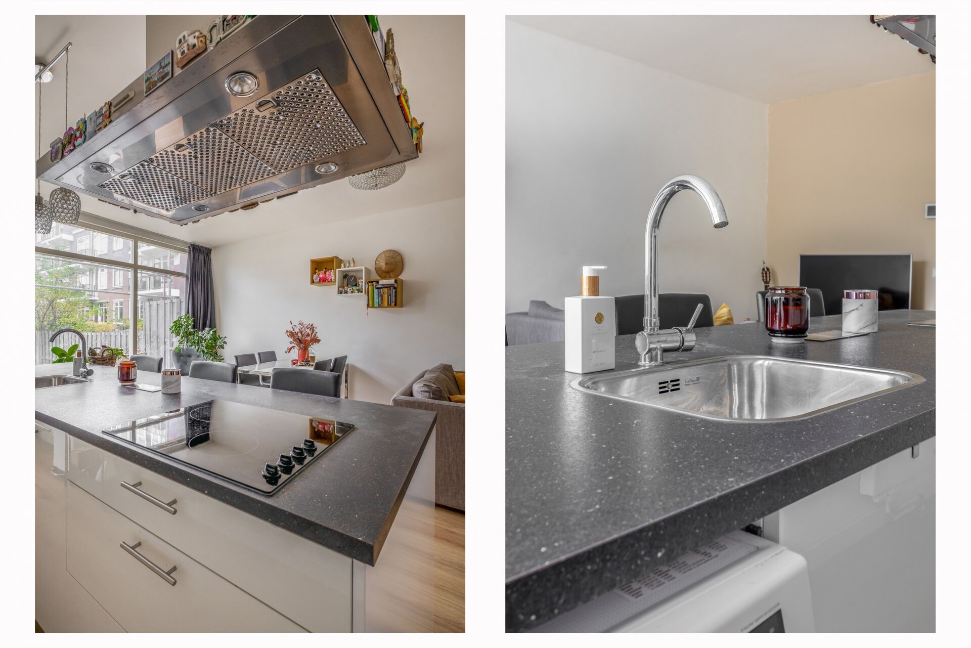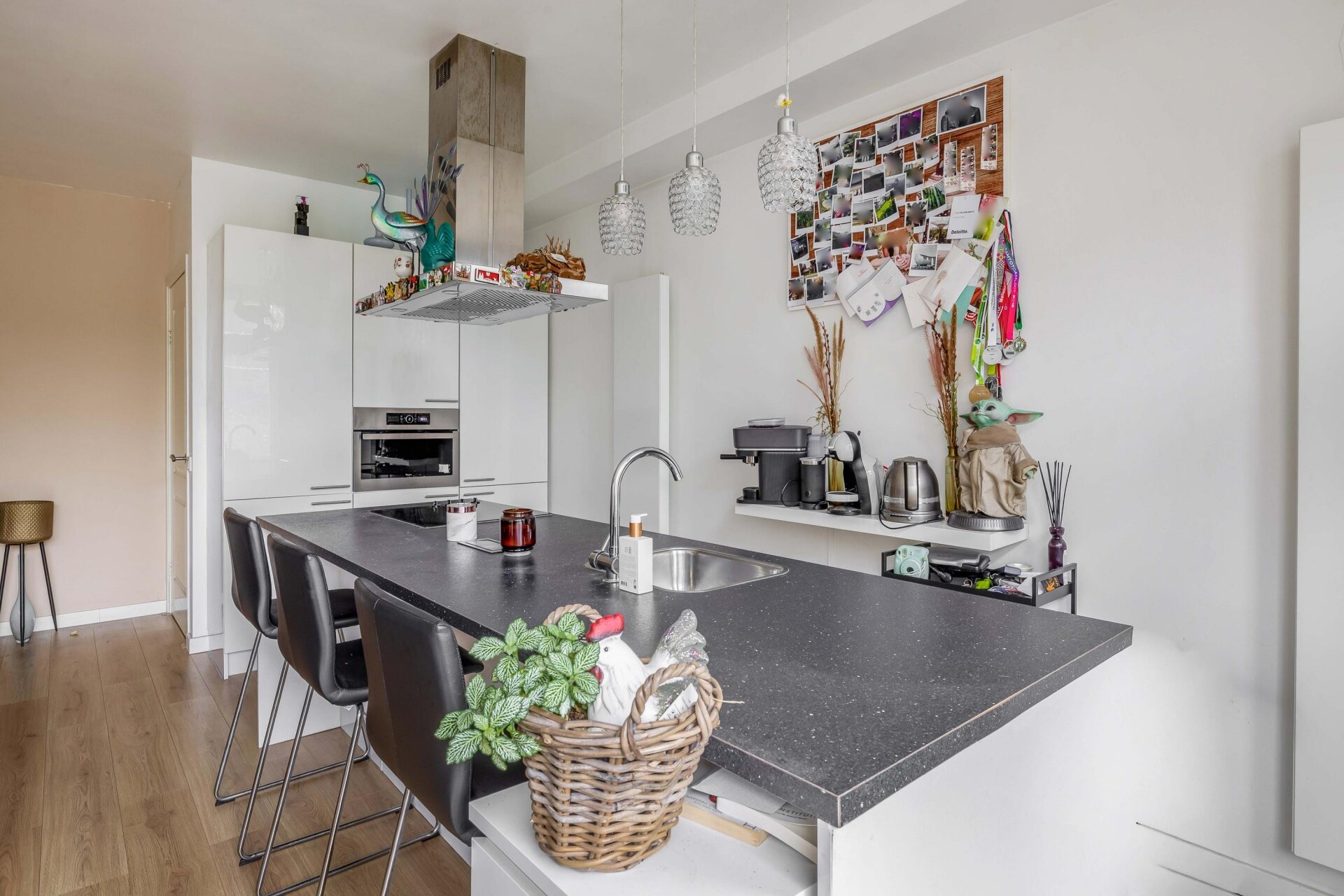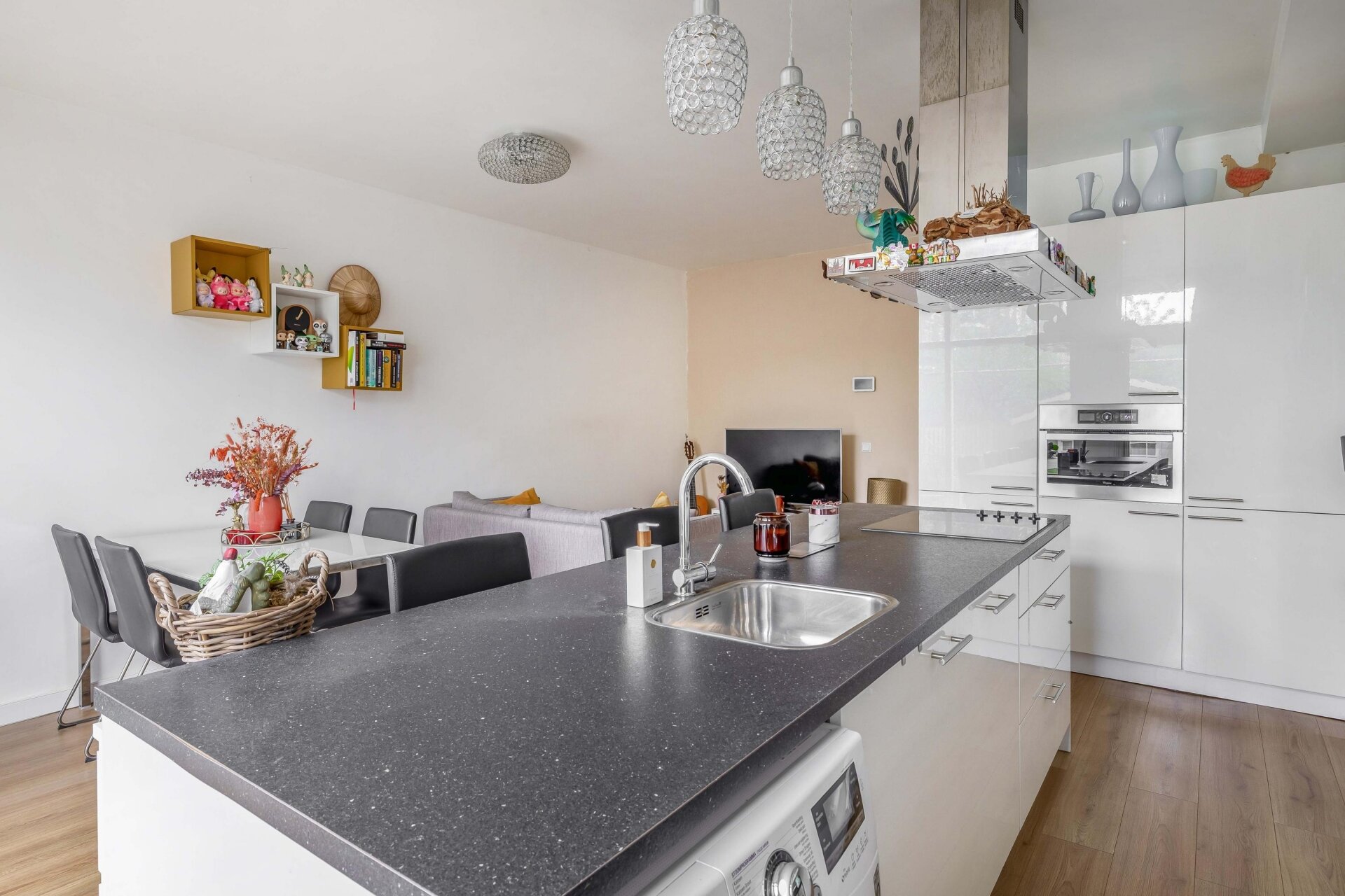 De lichte woonkamer is het hart van het huis. Dankzij de grote ramen komt er veel daglicht naar binnen en de strakke wanden en nette laminaatvloer maken het geheel helemaal af. De open keuken is een echte eyecatcher: uitgevoerd in hoogglans wit met een kook- en spoeleiland waar je ook gezellig aan kunt zitten. Uiteraard voorzien van alle inbouwapparatuur die je nodig hebt – van inductiekookplaat en afzuigkap tot vaatwasser, koelkast, vriezer en combimagnetron. Klaar voor elke kookliefhebber!
