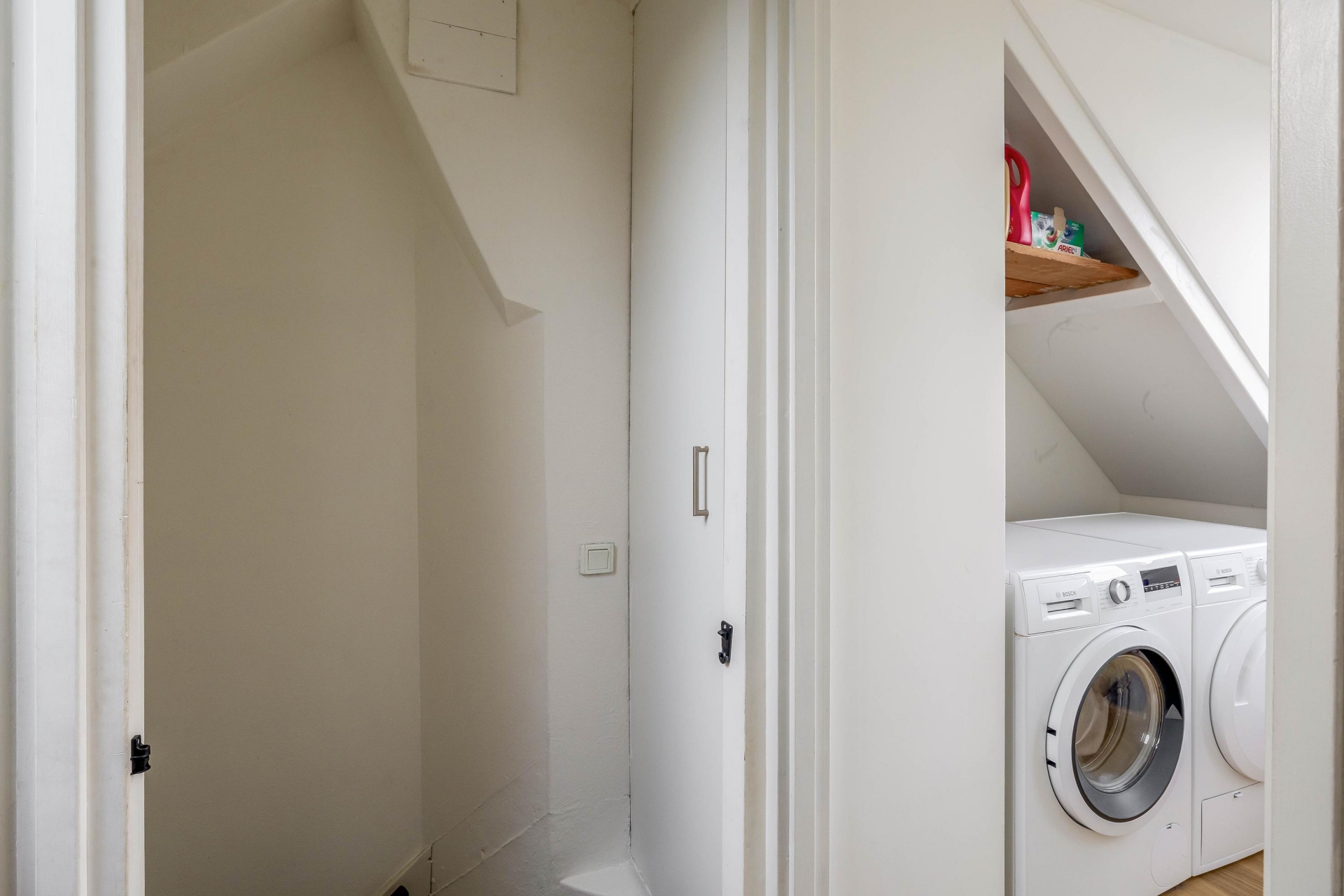 Voorzolder met opstelplaats voor de CV ketel (Remeha Calenta bouwjaar 2009). Aan de voorzijde bevindt zich een berging met dakraam en opstelplaats voor de omvormer van de zonnepanelen. De woning is voorzien van 6 zonnepanelen wat een aanzienlijke besparing in de energiekosten oplevert.