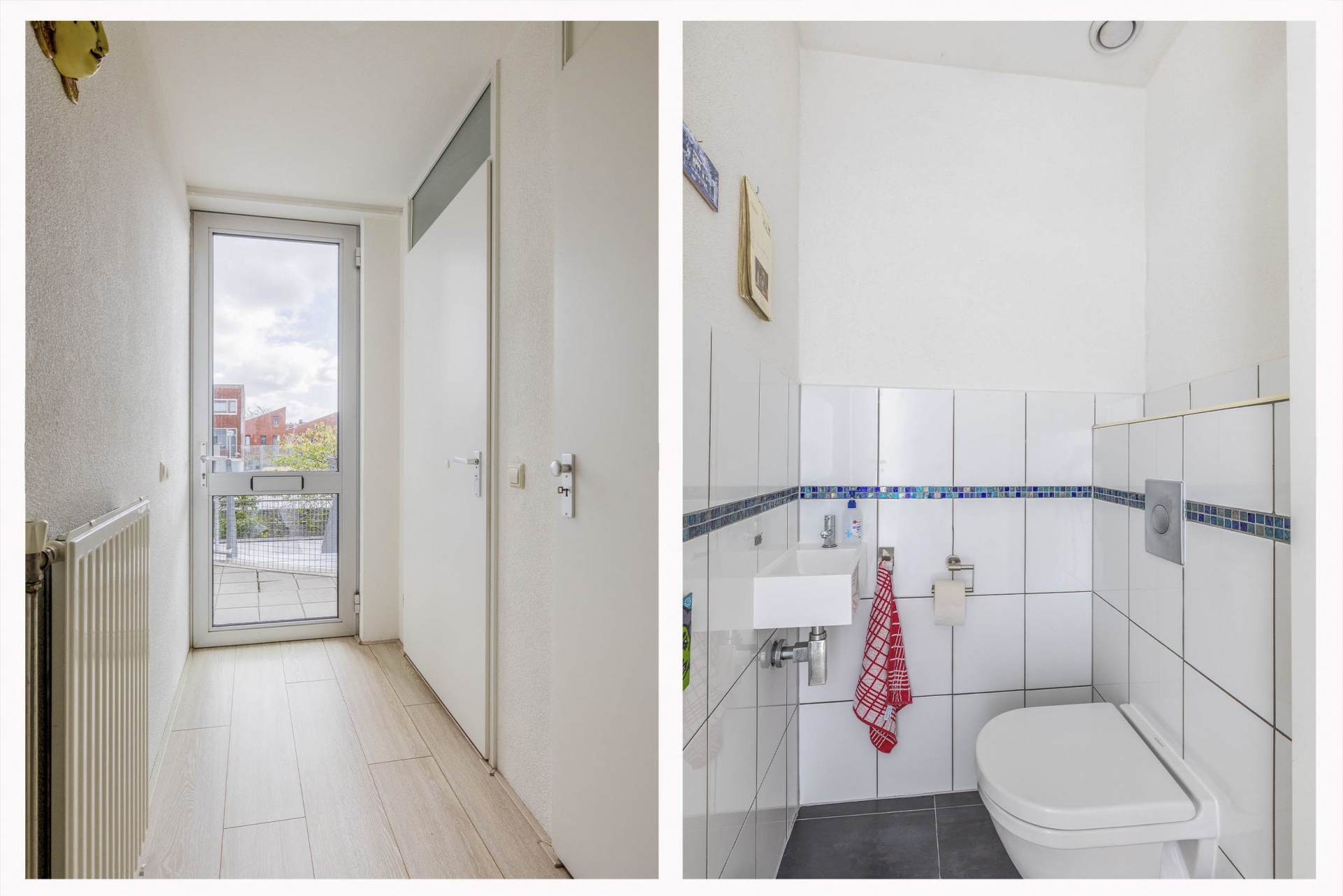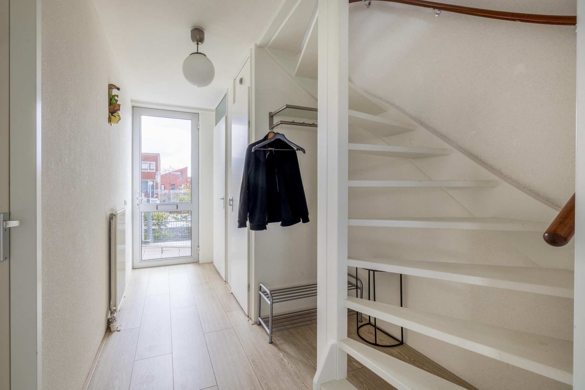 Via je eigen verhoogde terras kom je binnen. Het terras ligt aan de straatzijde en vangt het beste licht van de ochtend en begin van de middag, ideaal voor je eerste koffie in het weekend of het laatste glas wijn bij zonsondergang. Je stapt binnen in een nette hal met toilet en loopt zo door naar de woonkeuken.