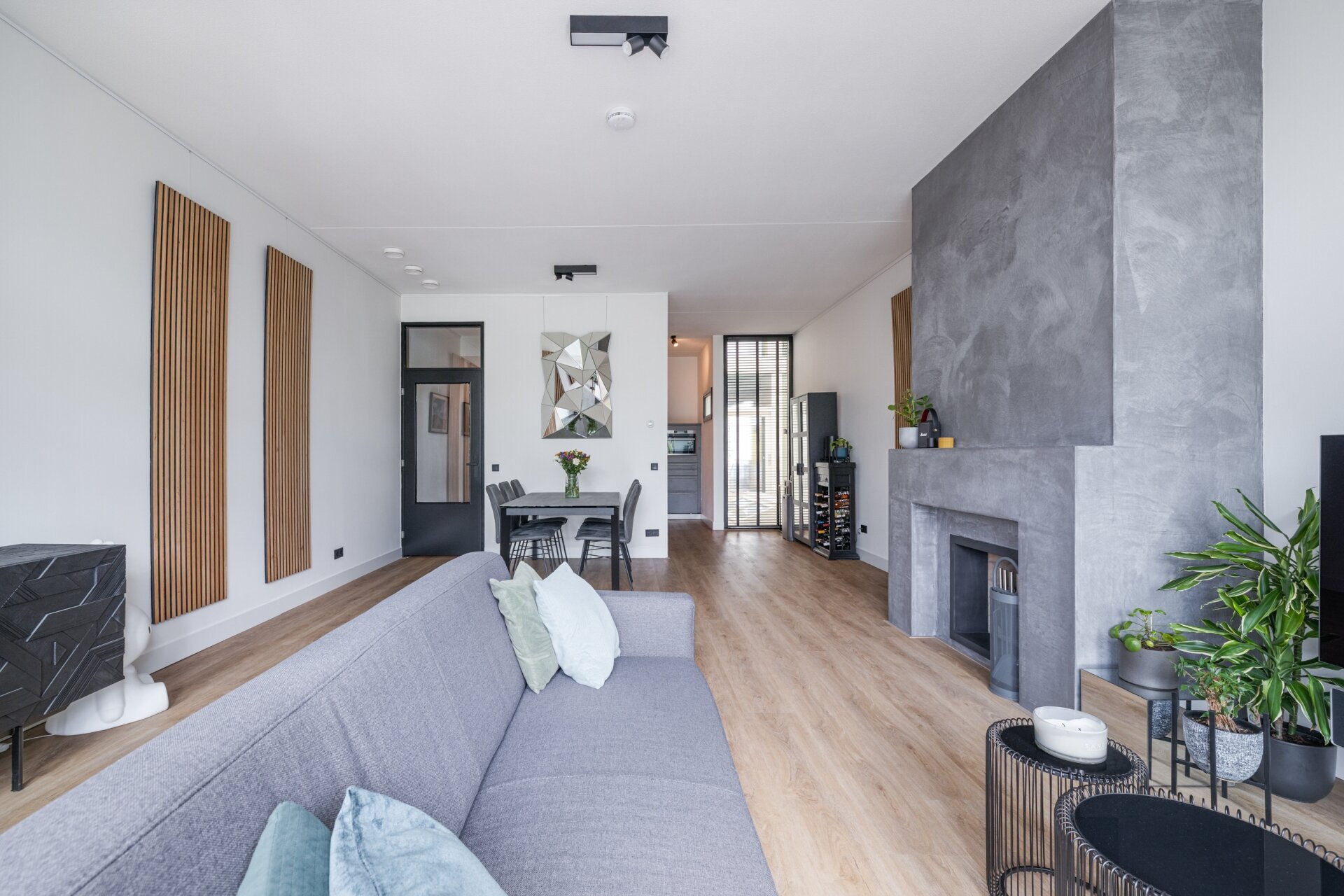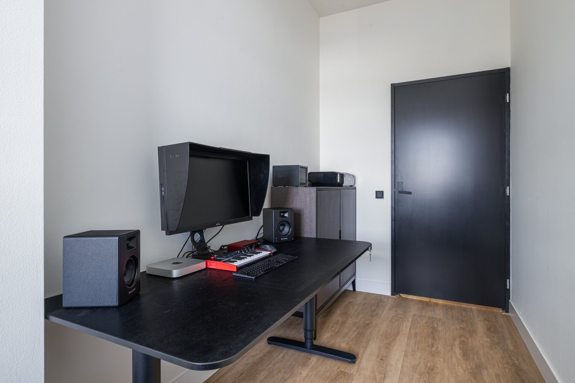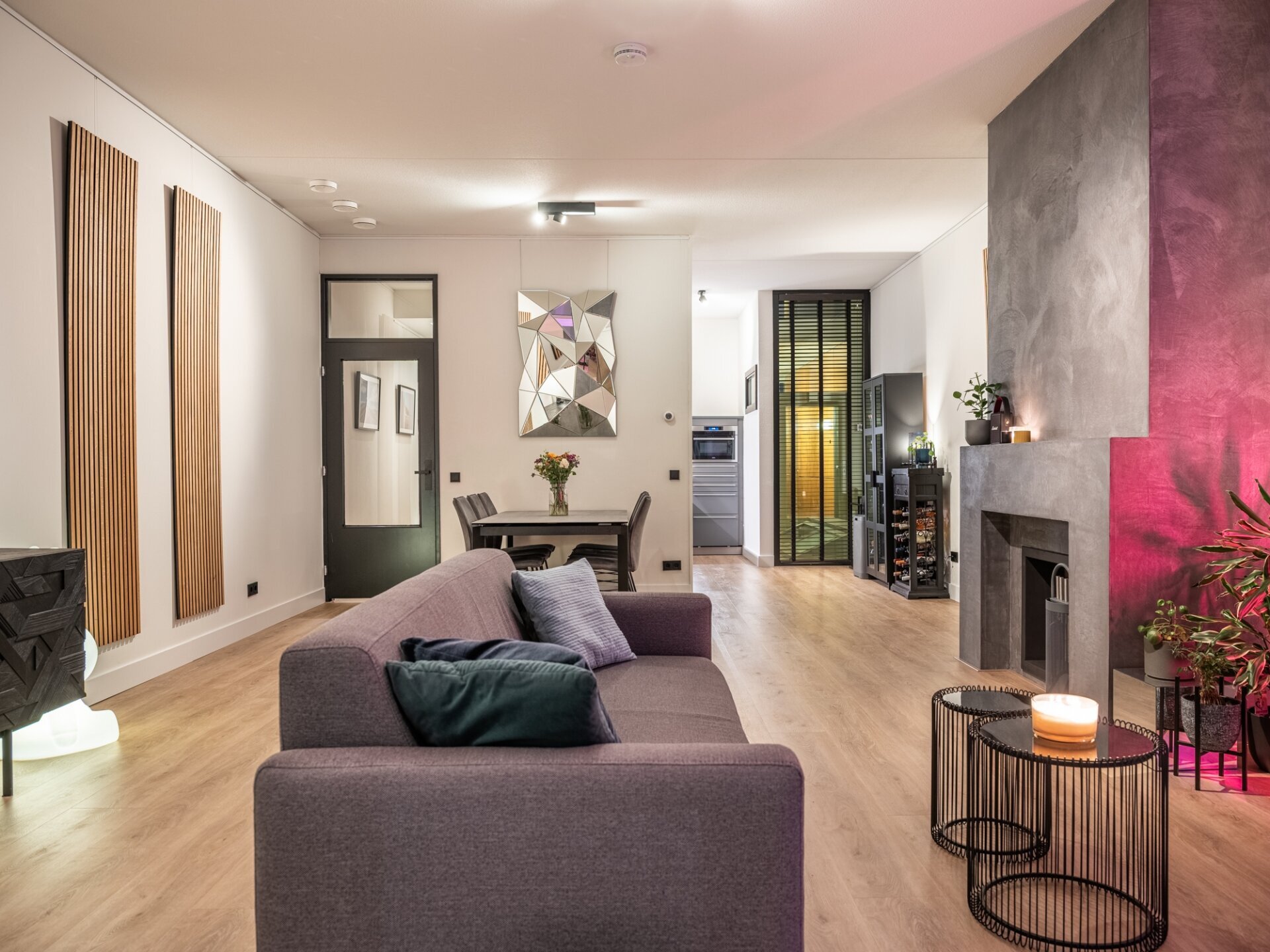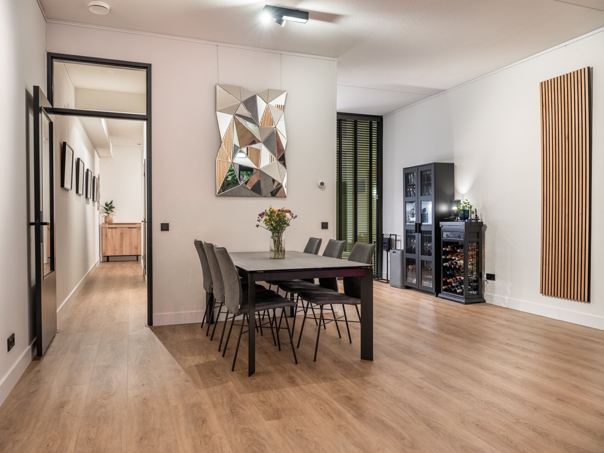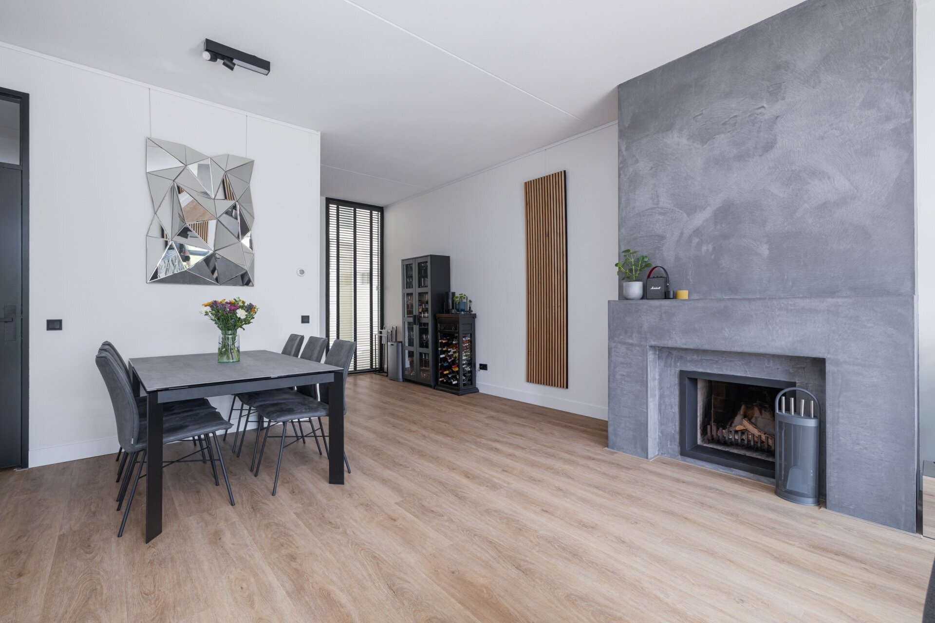Zodra je de woonkamer betreedt, word je overvallen door een gevoel van ruimte en rust. De 3 meter hoge plafonds geven niet alleen letterlijk lucht, maar zorgen ook voor een indrukwekkend gevoel van grandeur. Het daglicht stroomt royaal binnen via de grote raampartijen, waardoor elke hoek van de kamer baadt in een zachte, natuurlijke gloed. De moderne afwerking met bijvoorbeeld een PVC vloer (gelegd in 2021 met vloerverwarming) maakt dit een interieur waar je niet snel op uitgekeken raakt. En wanneer de dagen korter worden? Dan zorgt de open haard, houtgestookt en sfeervol, voor knusse avonden met een goed glas wijn en het knisperen van vuur op de achtergrond. Het comfort wordt gecompleteerd door vloerverwarming in het hele appartement (behoudens de badkamer): aangenaam warm zonder radiatoren die het zicht verstoren.