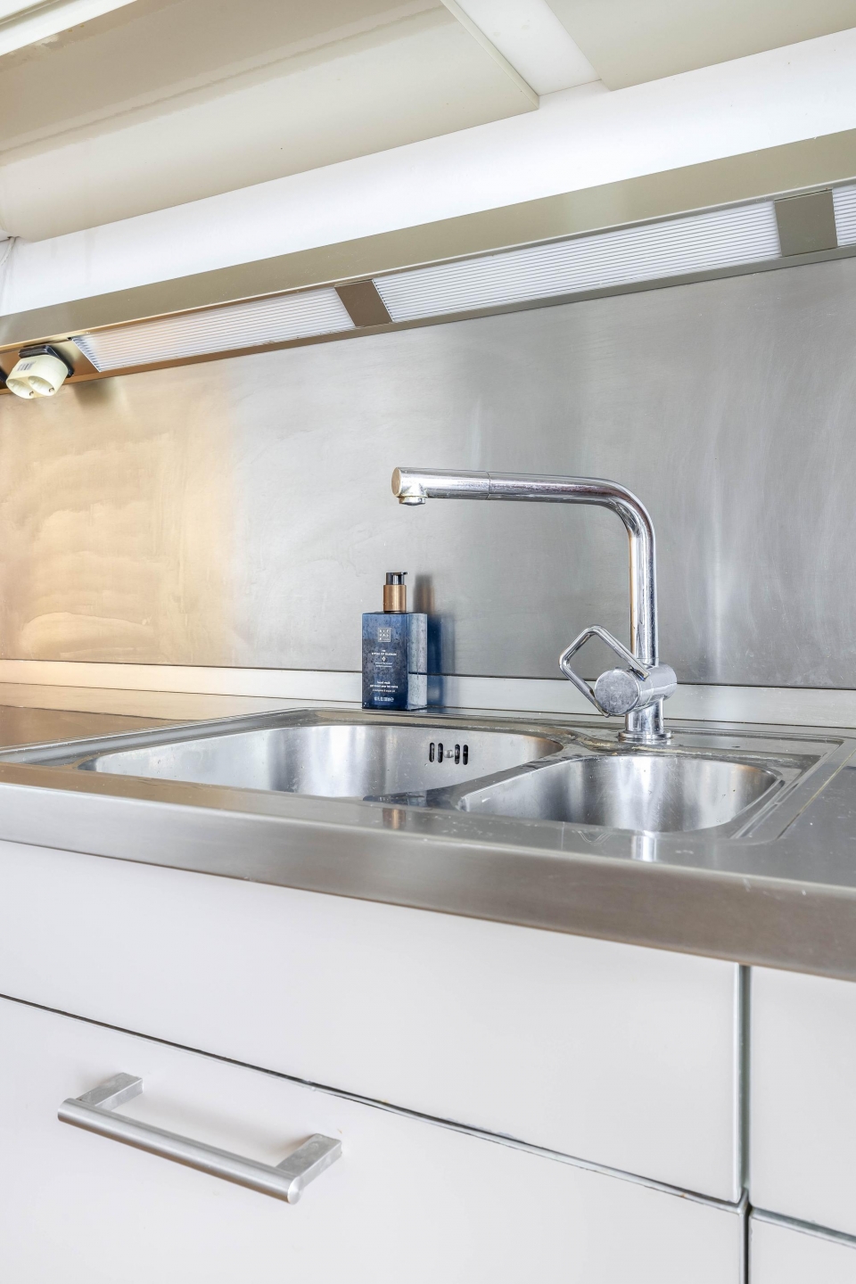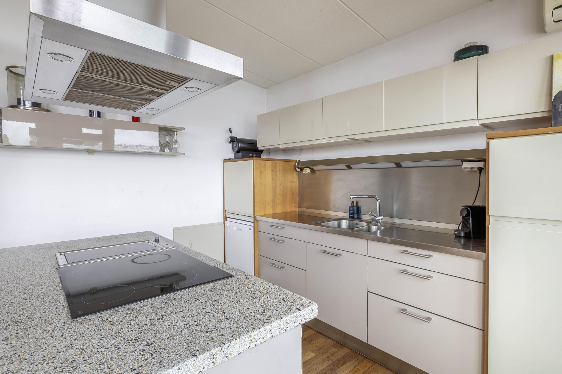 De living is royaal, licht en uitnodigend. Dankzij de grote ramen en de schuifpui loopt binnen vrijwel naadloos over in buiten. Een plek voor je eerste kop koffie in de zon, lange avonden met vrienden of een moment van stilte met front-row zicht op de Maas.