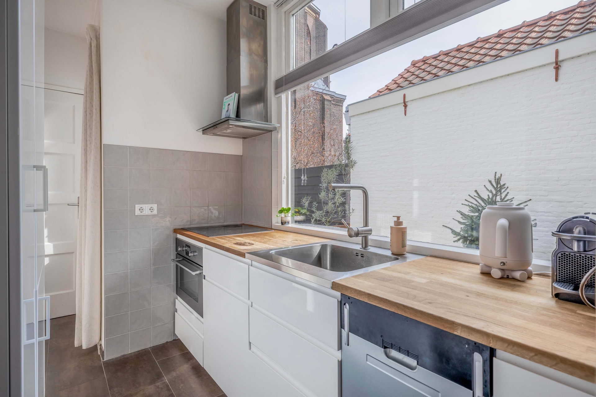 Welkom in deze charmante en karaktervolle woning, gelegen in een mooie straat in de binnenstad van Gouda. Op een verscholen plekje midden in de binnenstad kom je hier helemaal tot rust. De woning combineert klassieke details met hedendaags wooncomfort en heeft een warme, uitnodigende uitstraling. De sfeervolle woonkamer heeft een hoog plafond en veel lichtinval wat direct een gevoel van thuiskomen geeft. De indeling biedt mogelijkheden voor een gezellige zithoek, een fijne eetruimte én zelfs nog een werkplek. De keuken is stijlvol uitgevoerd met een houten werkblad, wat zorgt voor een natuurlijke uitstraling. Daarnaast beschikt de keuken over alle benodigde inbouwapparatuur, waardoor koken hier een waar plezier is. Het grote raam zorgt voor veel lichtinval en een prettige connectie met buiten.
