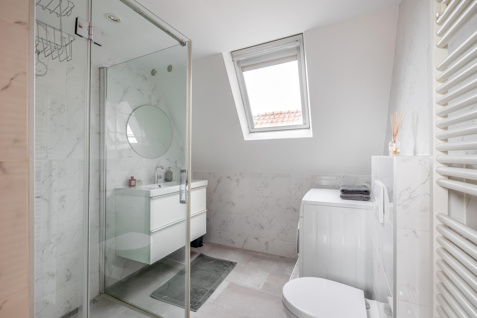 De badkamer is vernieuwd in 2019 en modern uitgevoerd. Deze is voorzien van een tweede toilet, een douche, een stijlvol wastafelmeubel en een praktische wasmachineaansluiting. Een complete en verzorgde ruimte die van alle gemakken is voorzien. De woning beschikt over twee comfortabele slaapkamers. Ideaal als hoofdslaapkamer en bijvoorbeeld een tweede kamer die kan dienen als logeerkamer, werkkamer of kinderkamer.