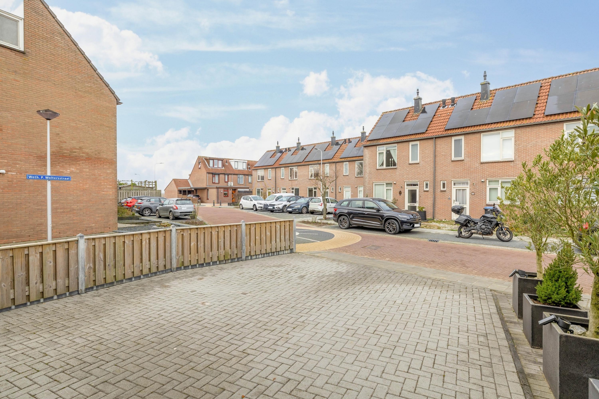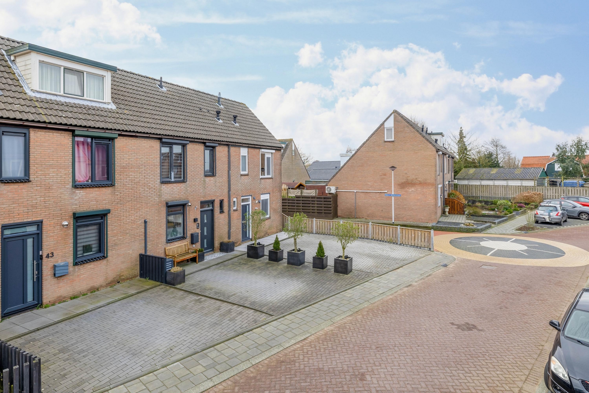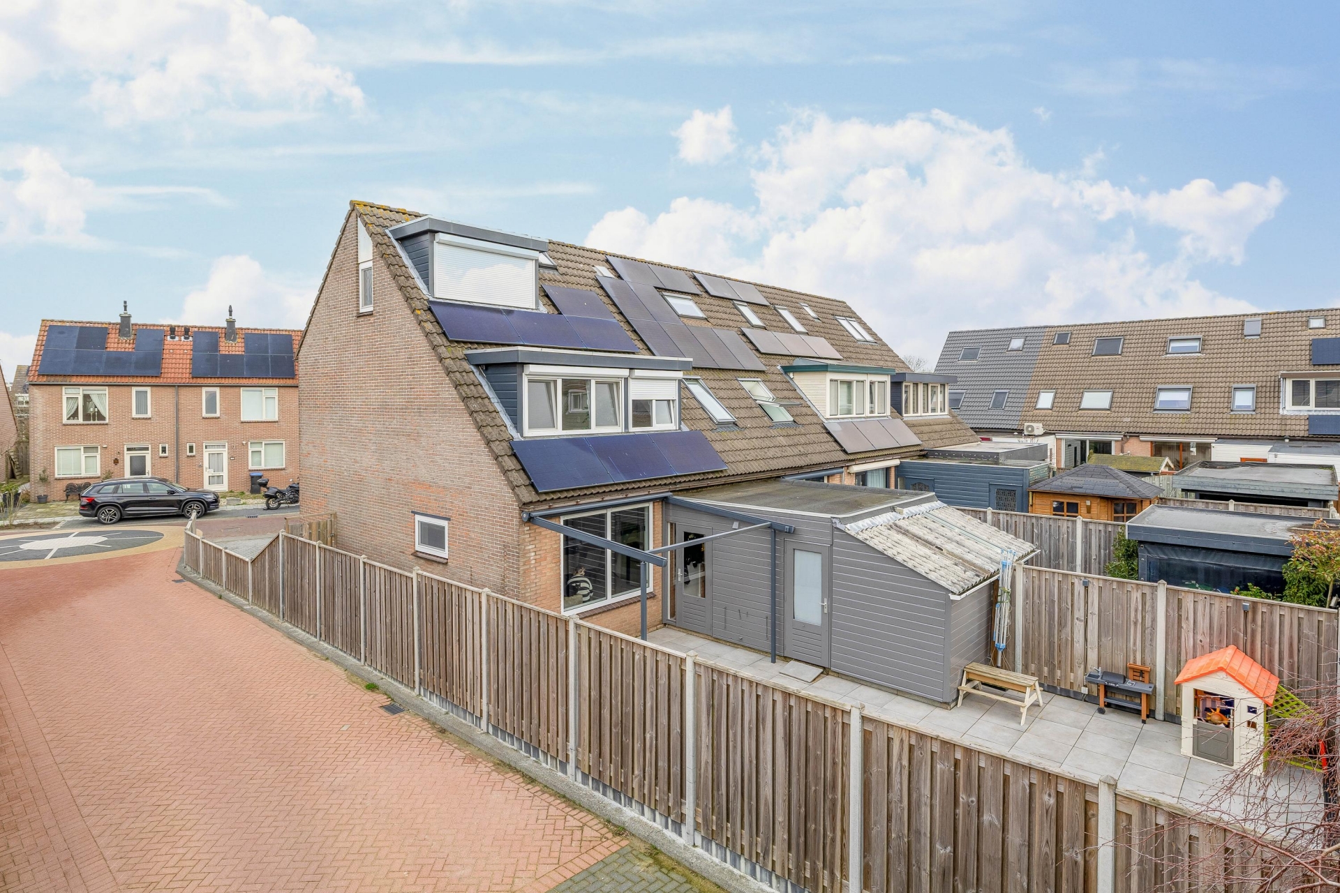 Aan de voorzijde van het huis bevindt zich een ruime oprit met parkeerplaats voor twee auto’s op eigen terrein. Dat is in deze wijk een groot voordeel en zorgt ervoor dat je altijd dichtbij huis kunt parkeren.