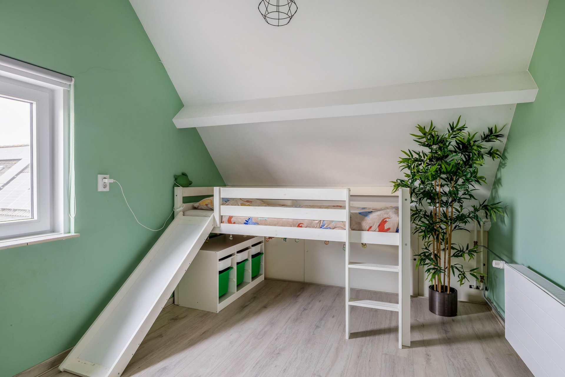 De badkamer is in 2019 vernieuwd en heeft een moderne uitstraling. Hier vind je een inloopdouche en een wastafelmeubel. Daarnaast is er op deze verdieping een separaat toilet, wat extra praktisch is voor een gezin.