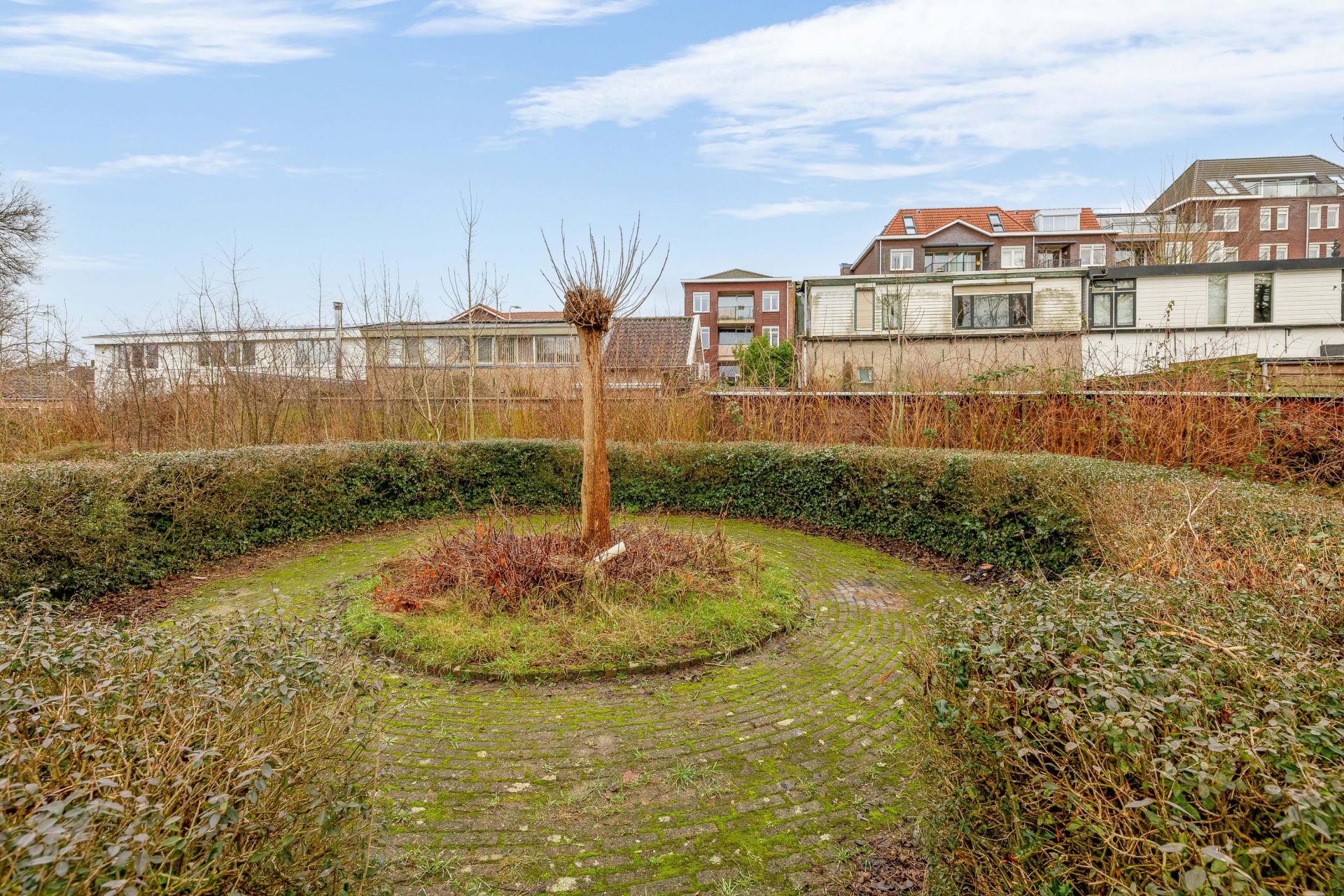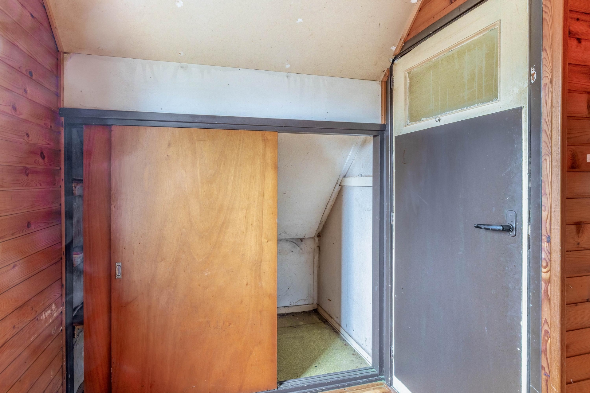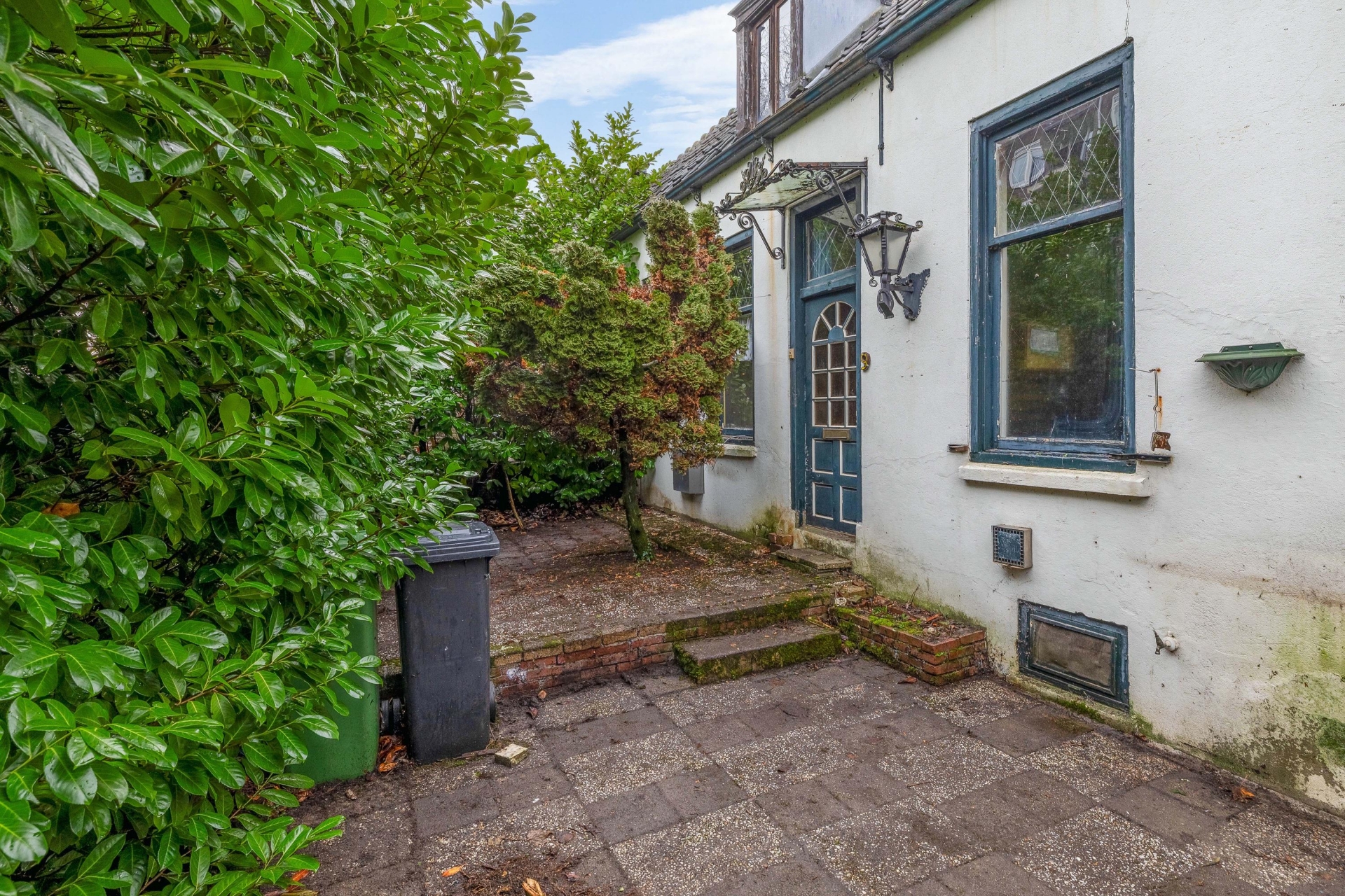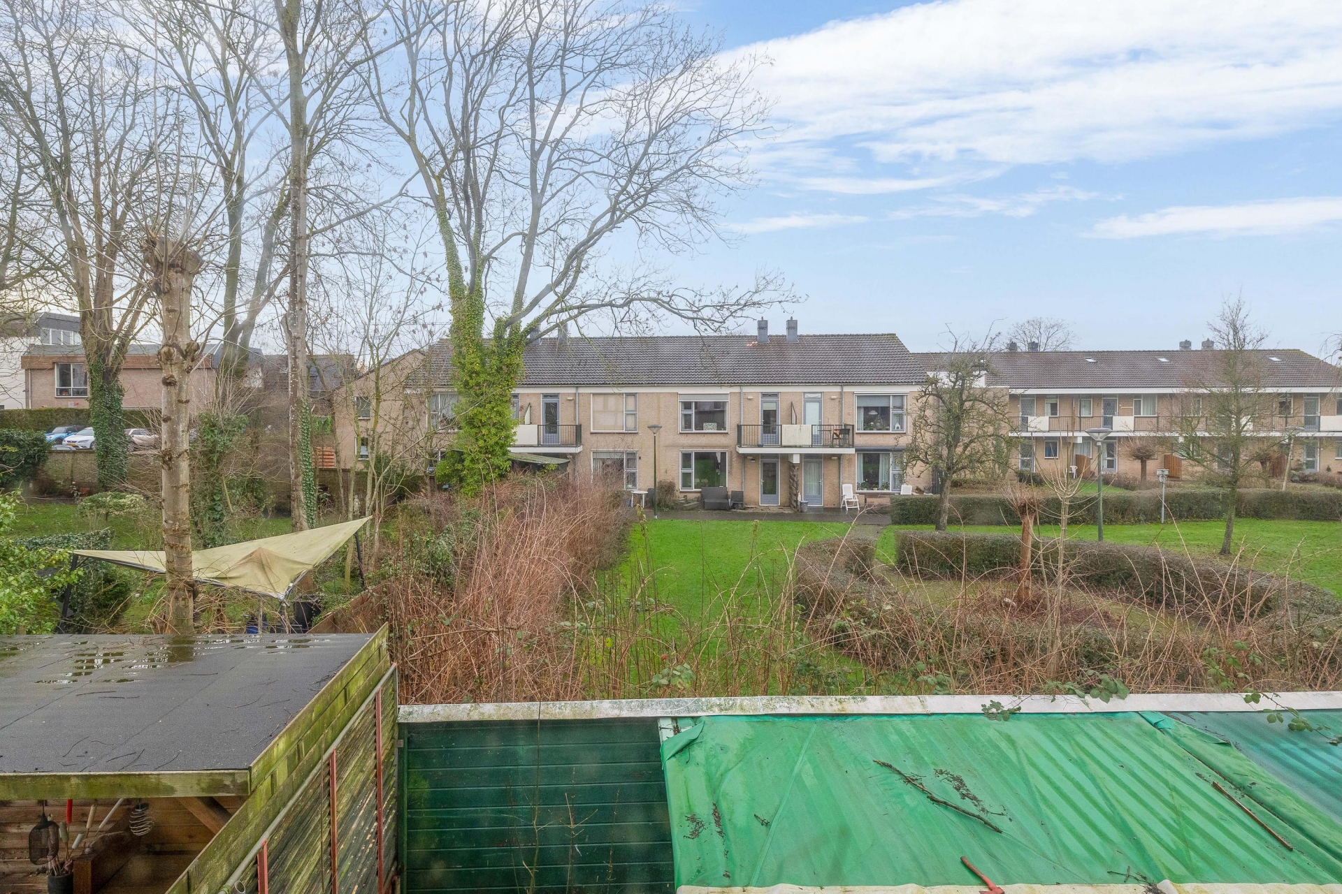Wat direct opvalt, is de besloten ligging. De voortuin is omzoomd met groen waardoor de voordeur een beetje verscholen ligt – dat geeft meteen een knusse, bijna cottage-achtige sfeer. Aan de achterzijde ligt de tuin op het westen, met volop middag- en avondzon. Ideaal voor een drankje na het werk of een zomerse barbecue (na wat opknapwerk, natuurlijk). De tuin biedt mogelijkheden om bijvoorbeeld een veranda te bouwen, een schuurtje te plaatsen of gewoon lekker te tuinieren. Je kijkt bovendien vrij weg, dus privacy is zeker een pluspunt hier.