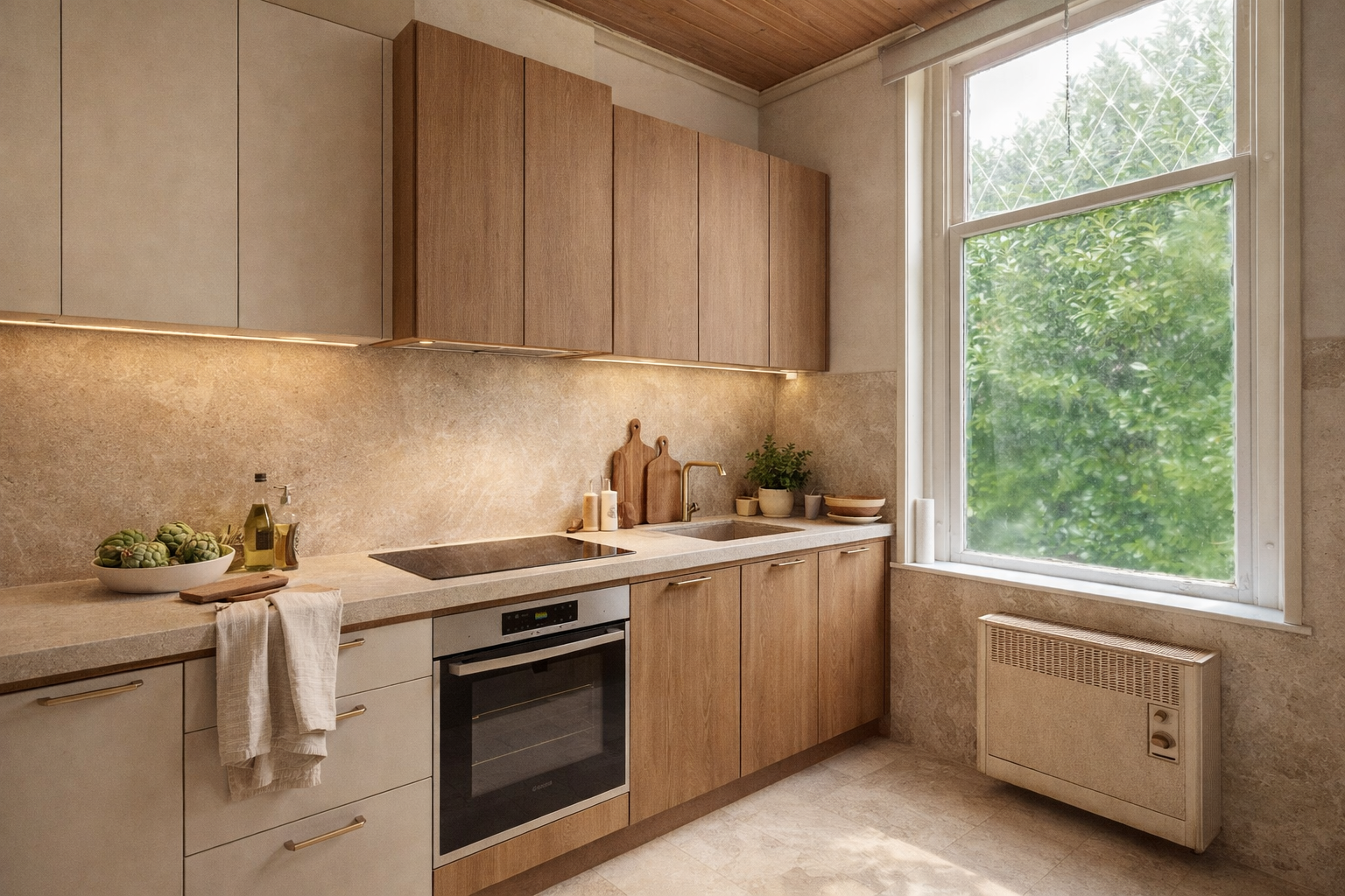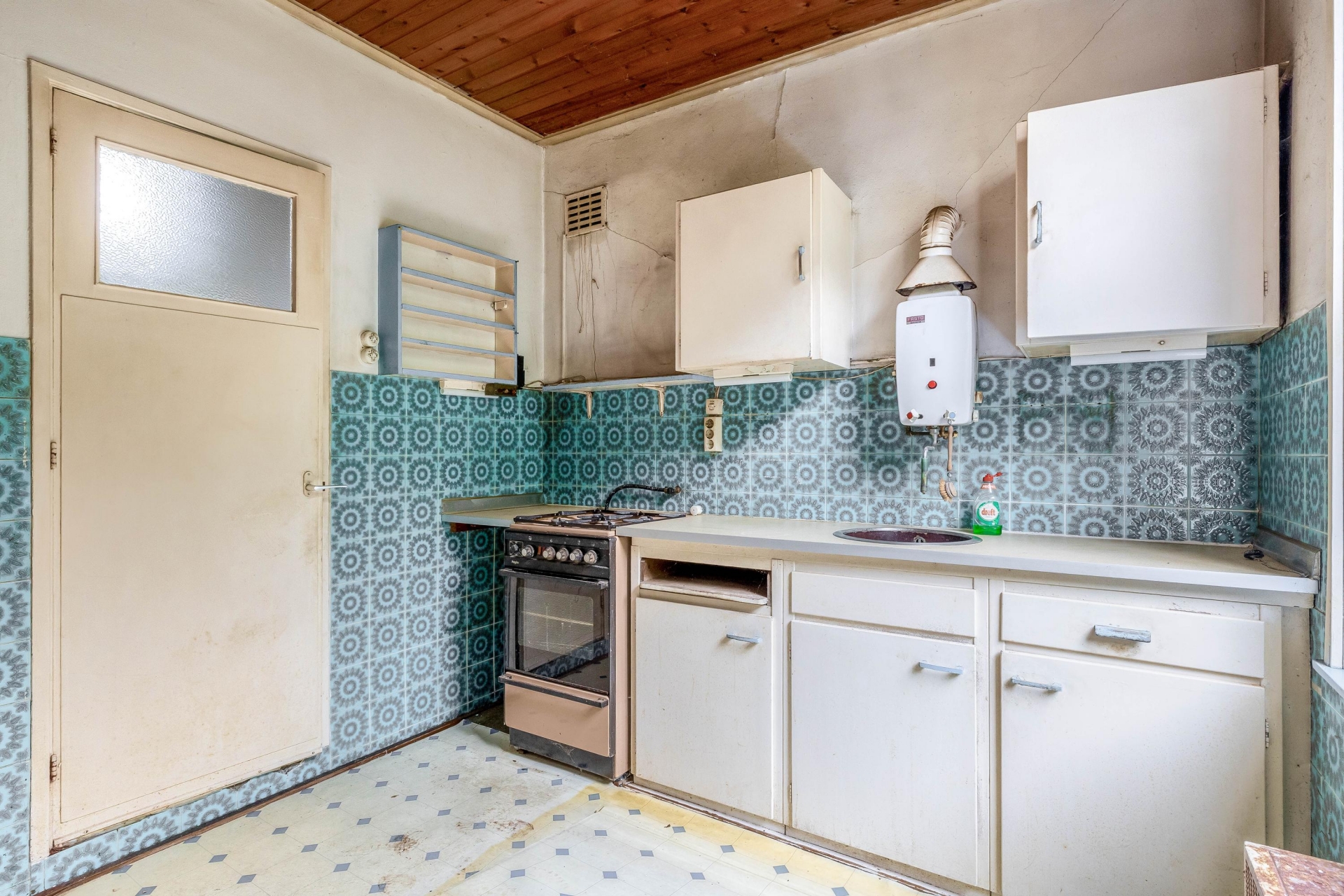 Vloeren, wanden, elektra, keuken, sanitair... het is allemaal aan vervanging toe. Maar daardoor heb je wél de kans om het helemaal naar eigen hand te zetten.