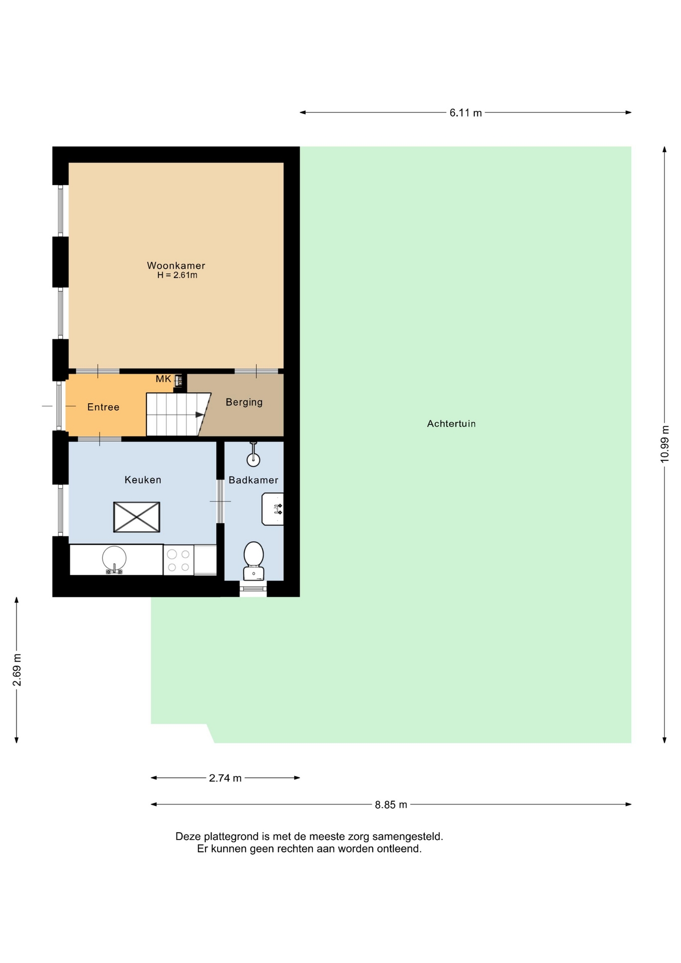 “Deze informatie is door ons met de nodige zorgvuldigheid samengesteld. Onzerzijds wordt echter geen enkele aansprakelijkheid aanvaard voor enige onvolledigheid, onjuistheid of anderszins, dan wel de gevolgen daarvan. Alle opgegeven maten en oppervlakten zijn indicatief.”