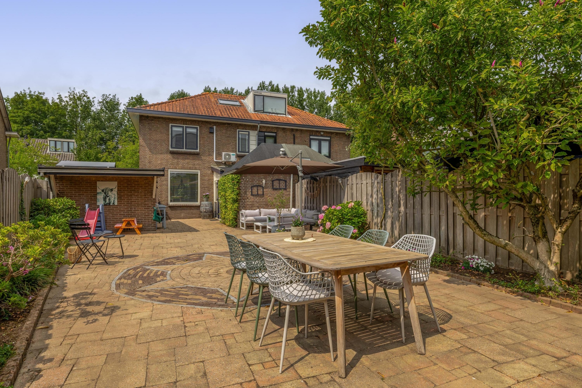 De ruimte in en om het huis maakt het dagelijks leven comfortabel en ontspannen.