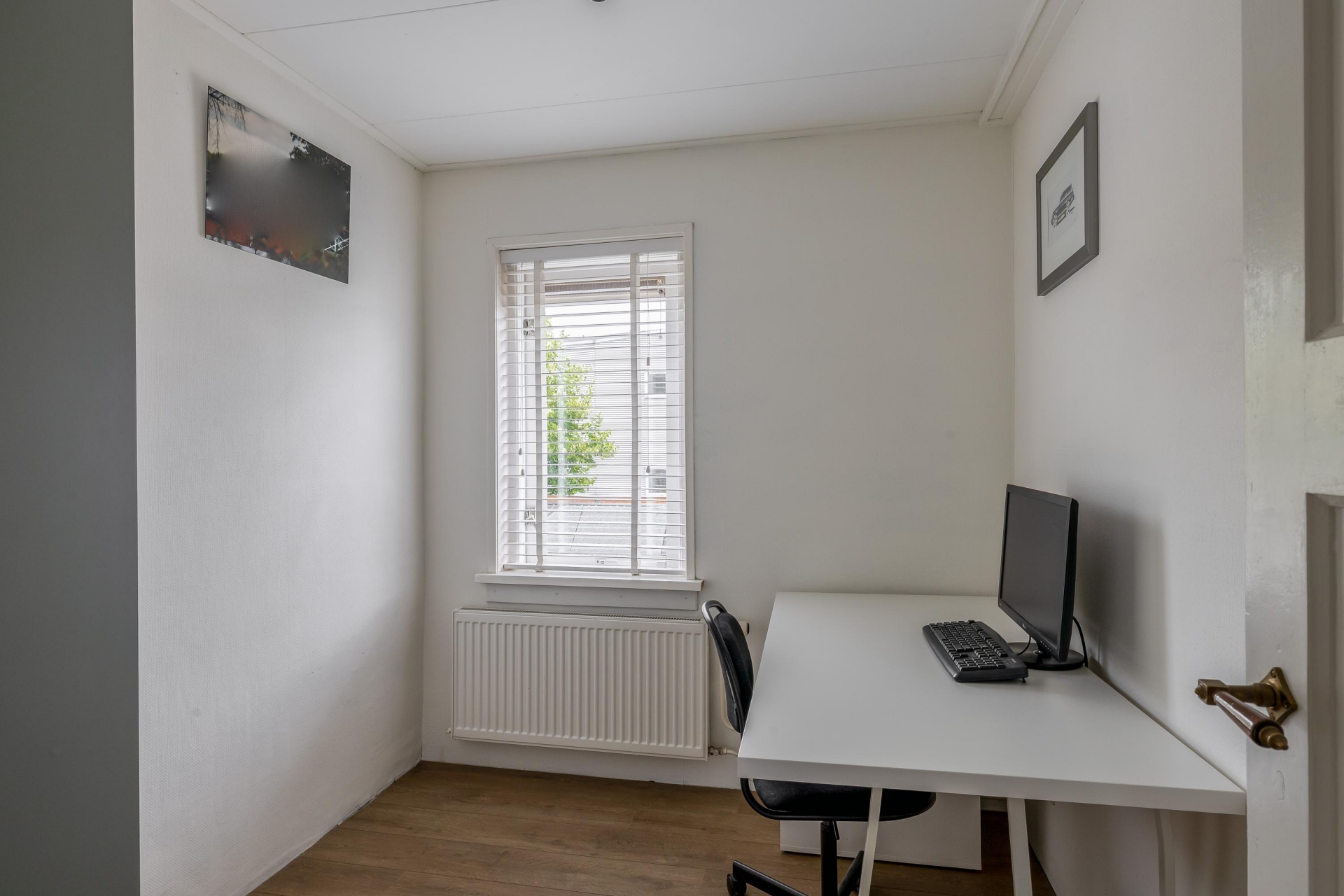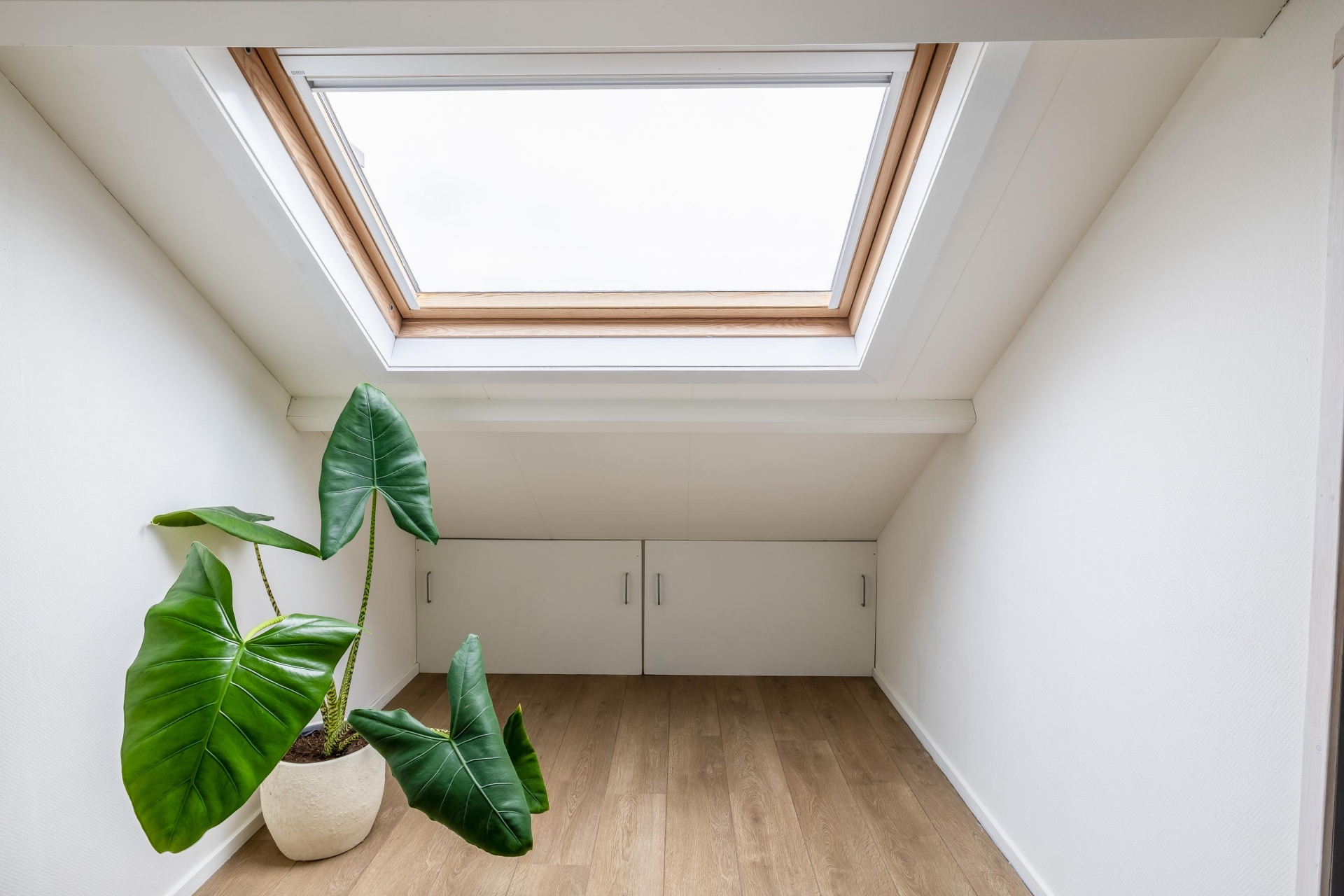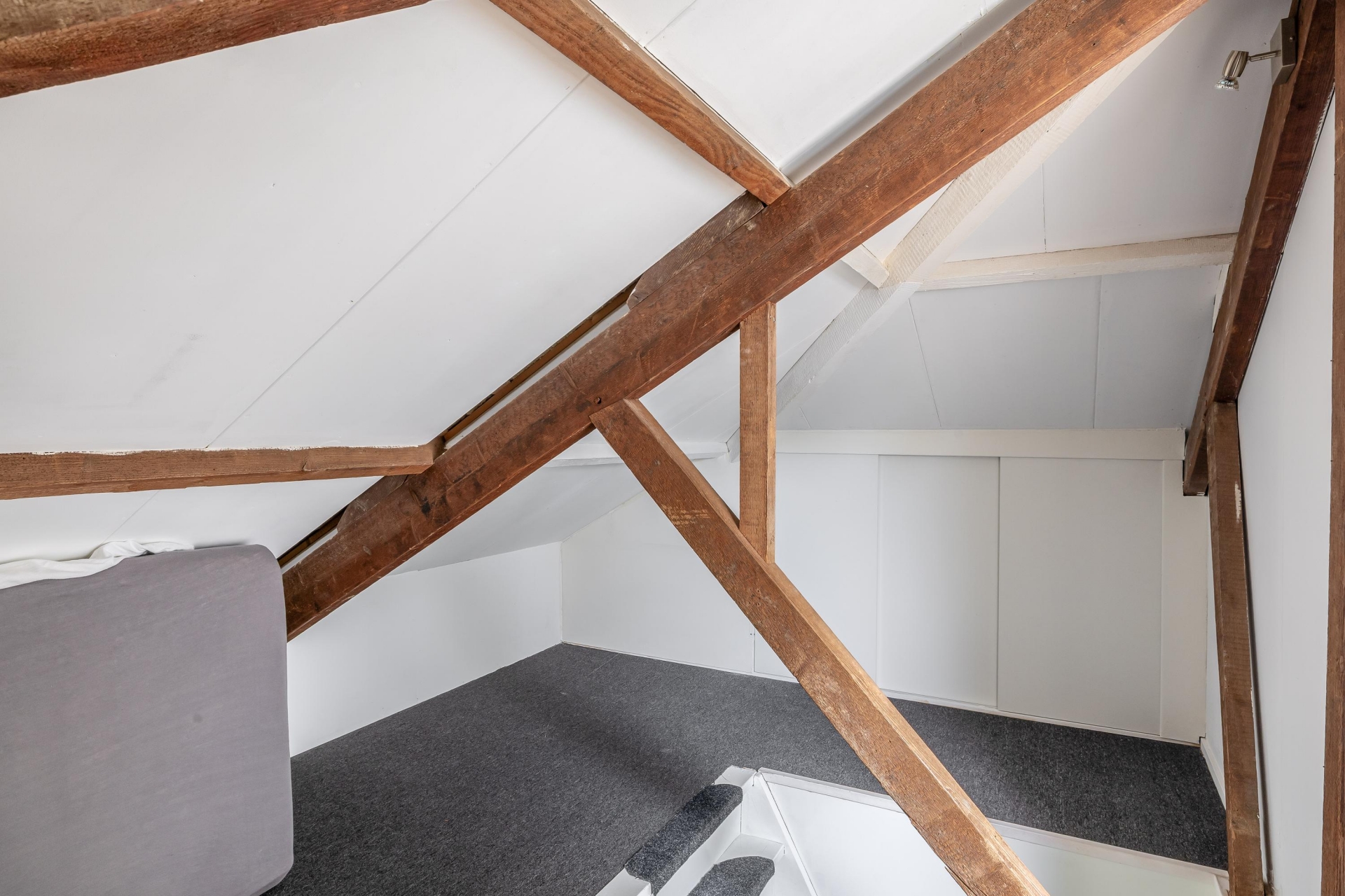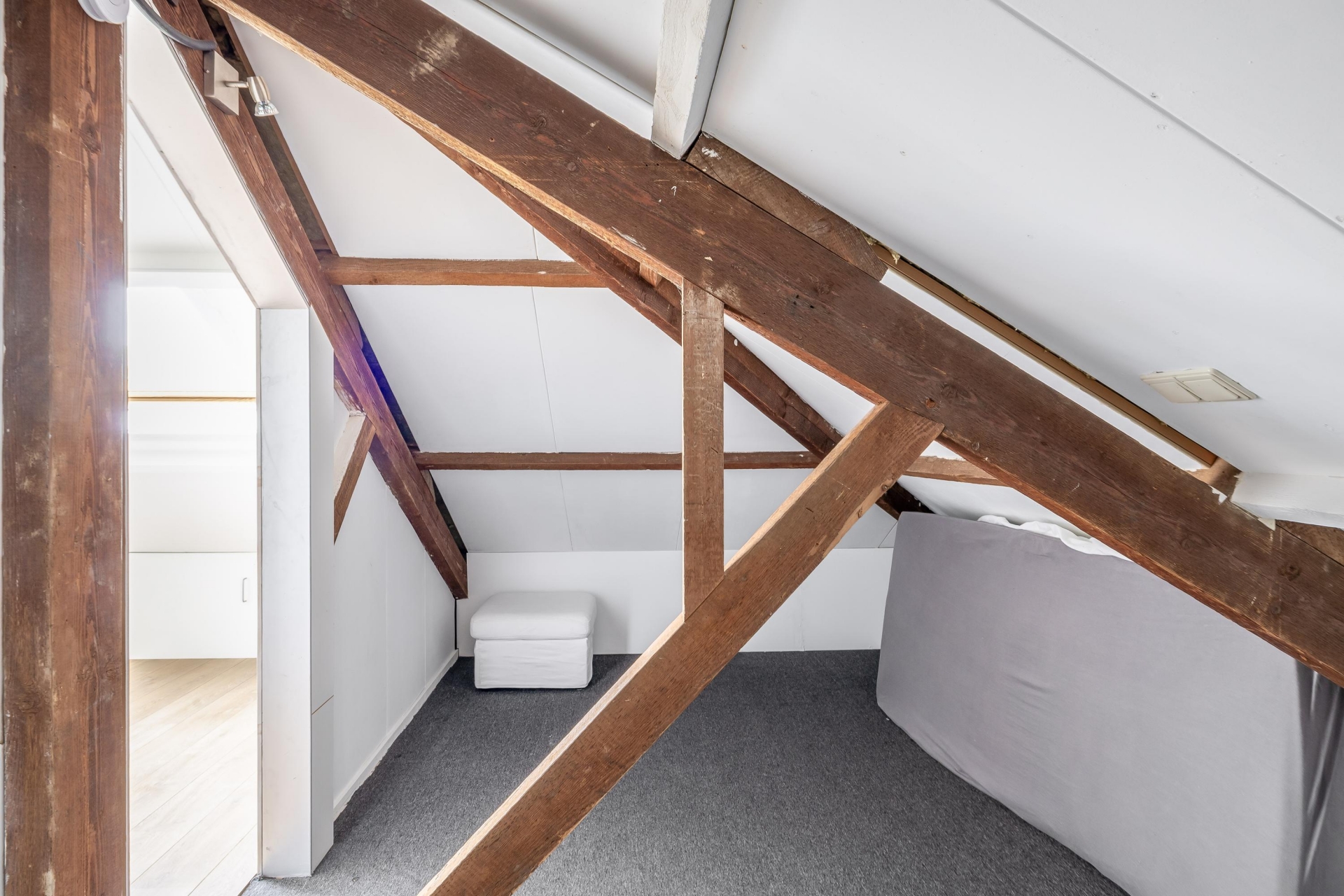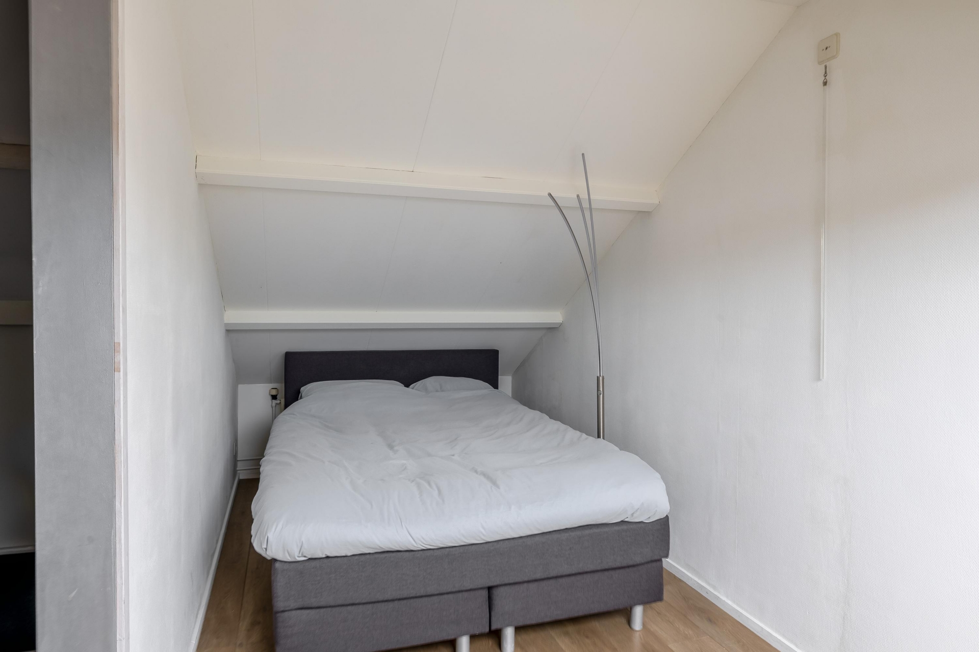 Via een vaste trap bereik je de ruime voorzolder, die praktische opbergruimte biedt. Aansluitend bevindt zich de vierde slaapkamer, voorzien van een Velux-dakraam en een nette laminaatvloer.