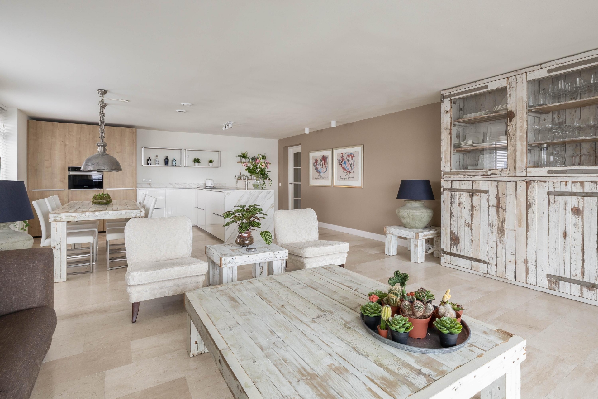 De woonkamer is ruim opgezet en biedt alle vrijheid voor een comfortabele zithoek en een royale eettafel. Dankzij de open indeling blijft het contact met de keuken altijd behouden. De afwerking is verzorgd en tijdloos, waardoor je hier zonder grote aanpassingen kunt intrekken. Dit appartement voelt direct als een fijne woonplek: overzichtelijk, licht en comfortabel.