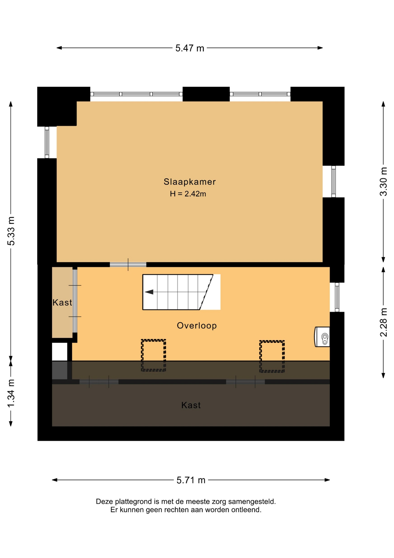 “Deze informatie is door ons met de nodige zorgvuldigheid samengesteld. Onzerzijds wordt echter geen enkele aansprakelijkheid aanvaard voor enige onvolledigheid, onjuistheid of anderszins, dan wel de gevolgen daarvan. Alle opgegeven maten en oppervlakten zijn indicatief.”