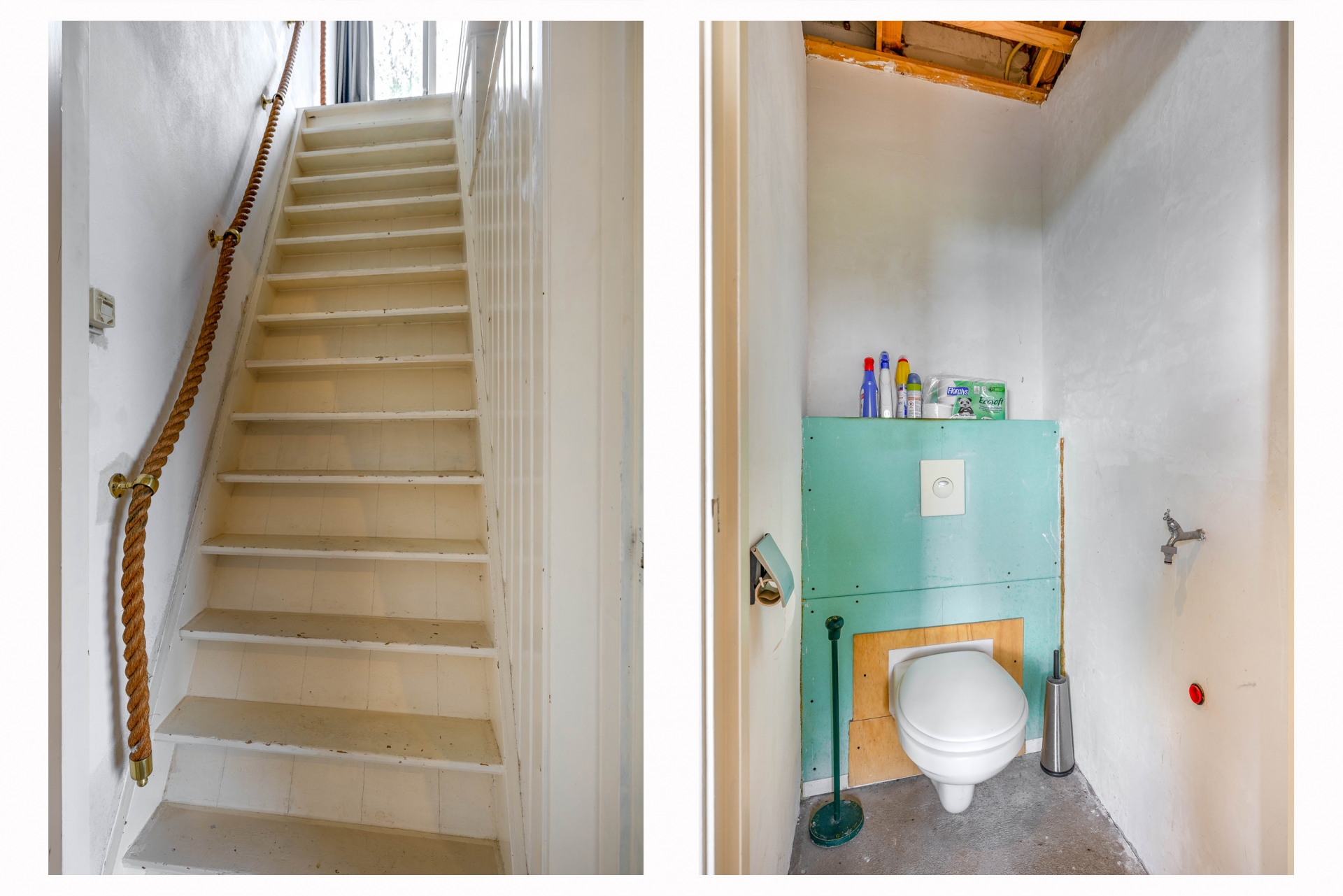 Dit is thans opgedeeld in een dichte keuken met zij entree, badkamer, toilet, woonkamer met aangrenzende voorkamer, ruime overloop, 2 slaapkamers en een vlizo zolder.