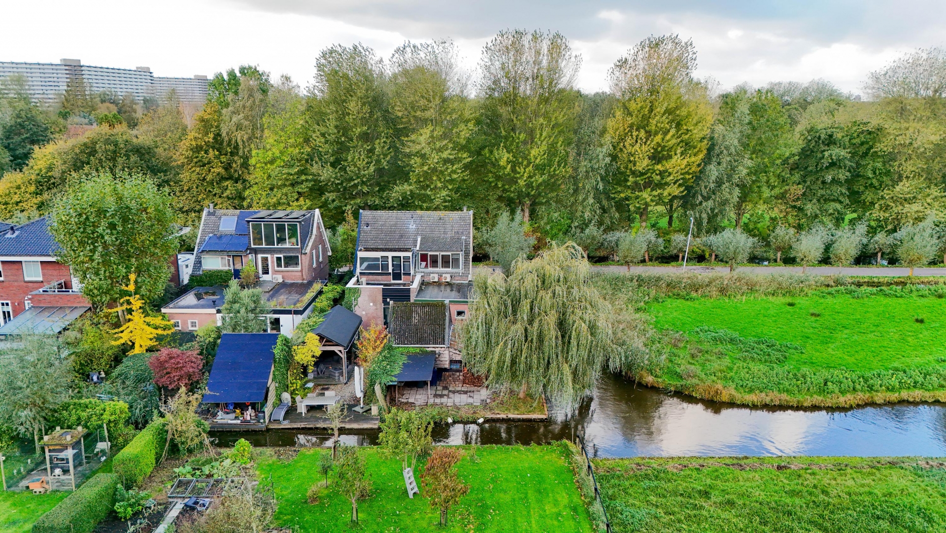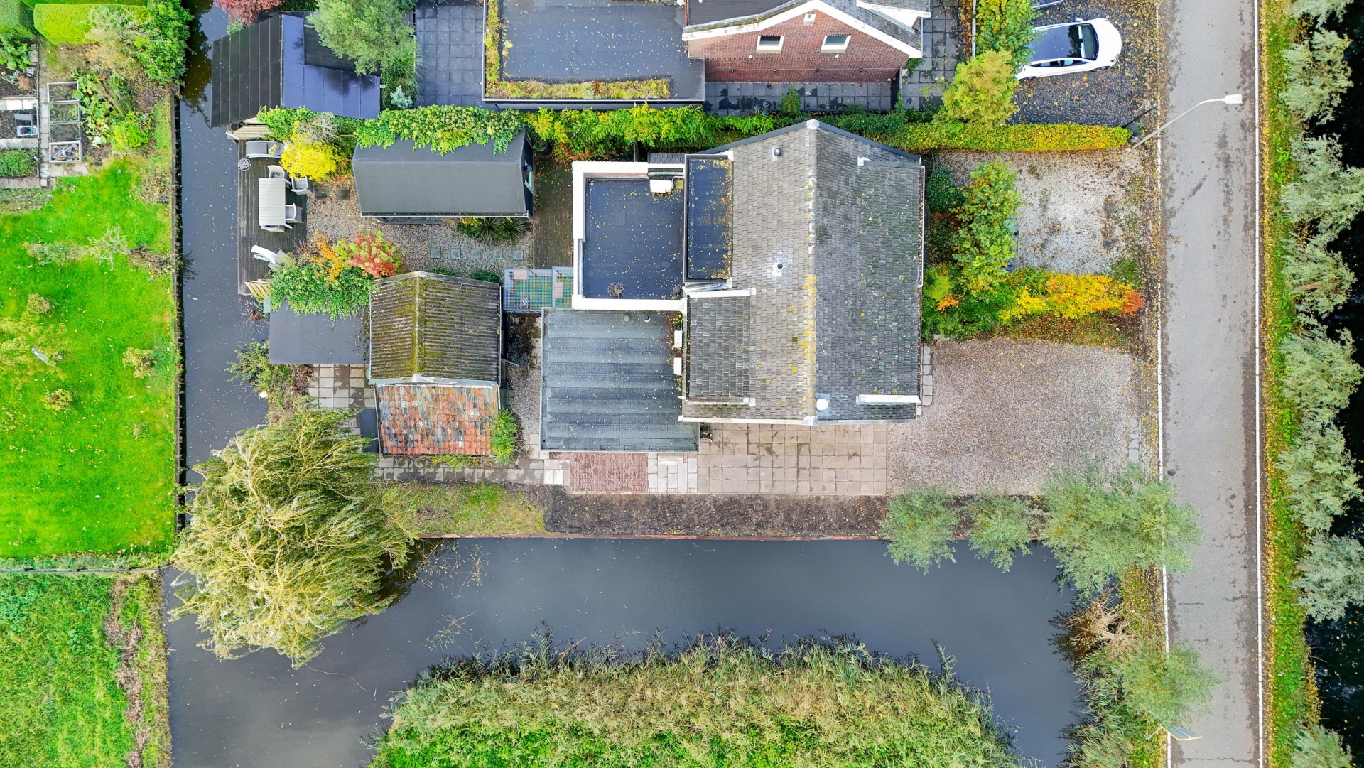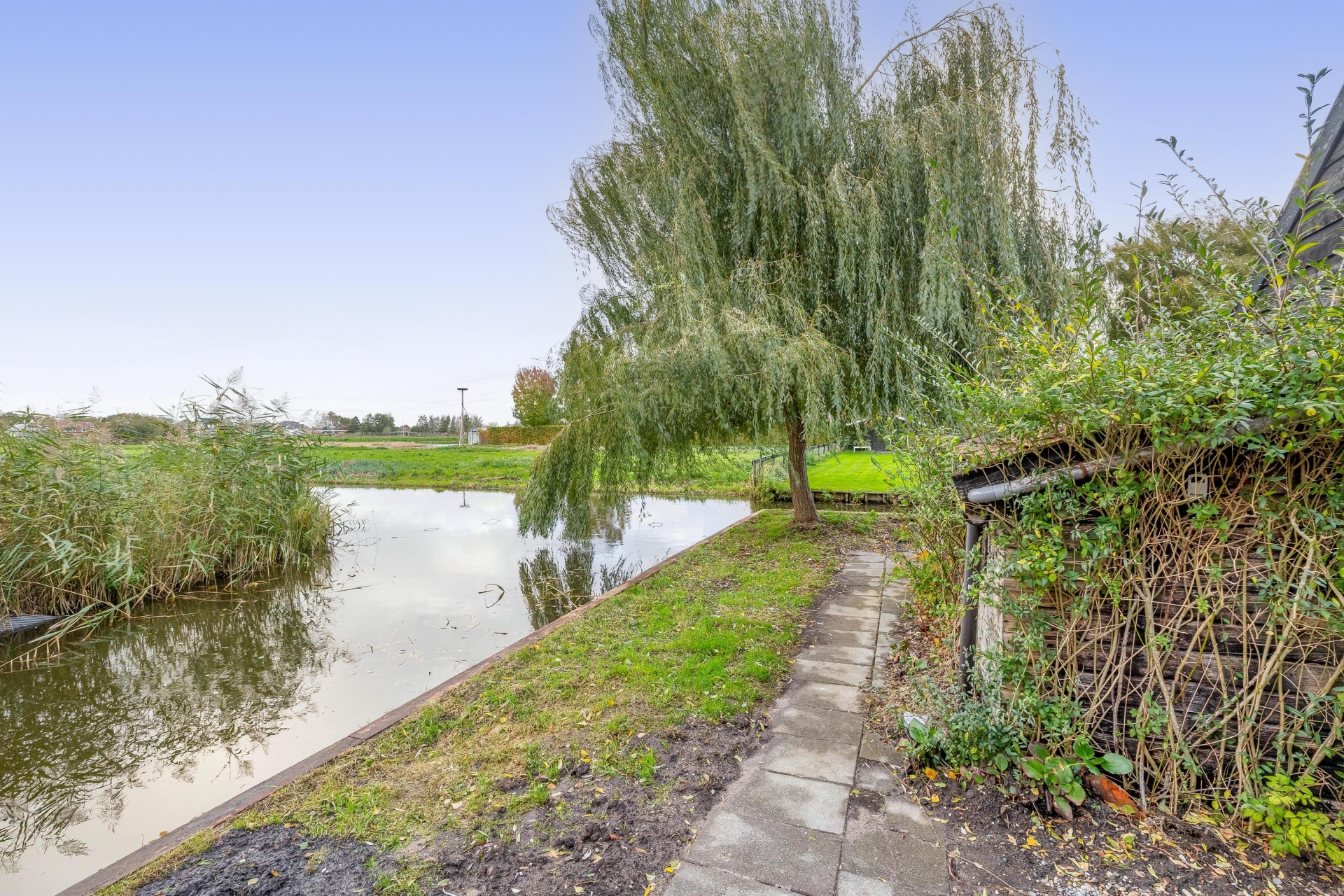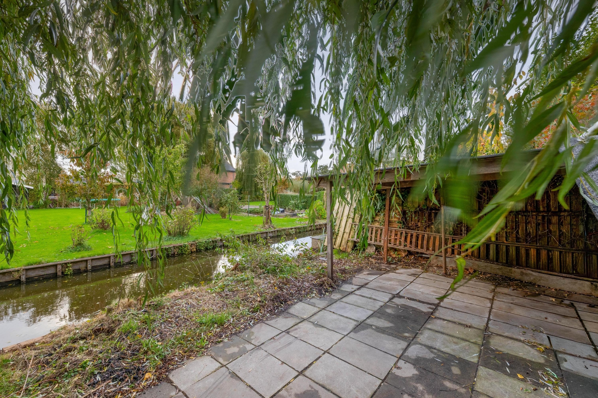 Zowel aan de achterzijde, als aan de zij kant grenst het perceel van 425m² aan het water.