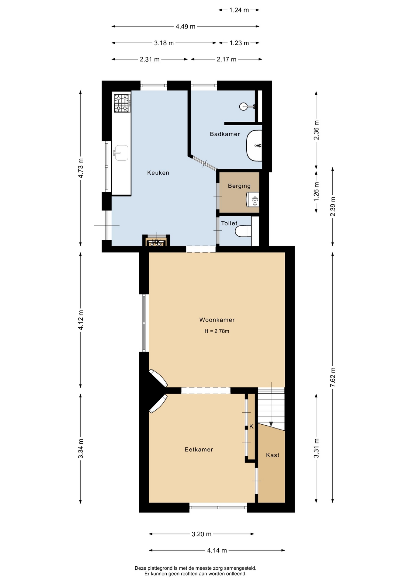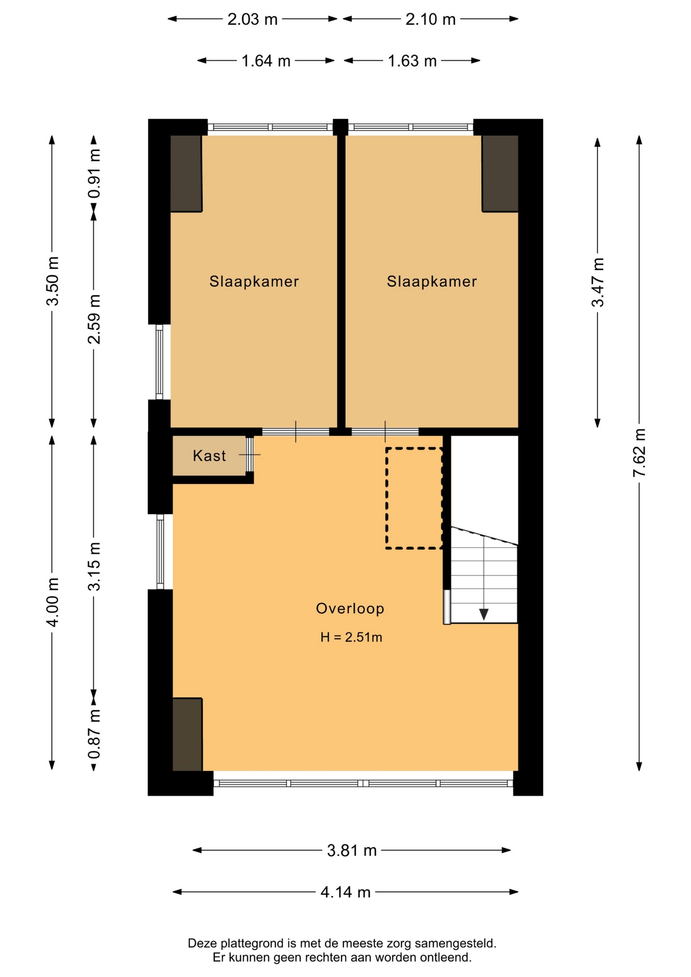 “Deze informatie is door ons met de nodige zorgvuldigheid samengesteld. Onzerzijds wordt echter geen enkele aansprakelijkheid aanvaard voor enige onvolledigheid, onjuistheid of anderszins, dan wel de gevolgen daarvan. Alle opgegeven maten en oppervlakten zijn indicatief.”