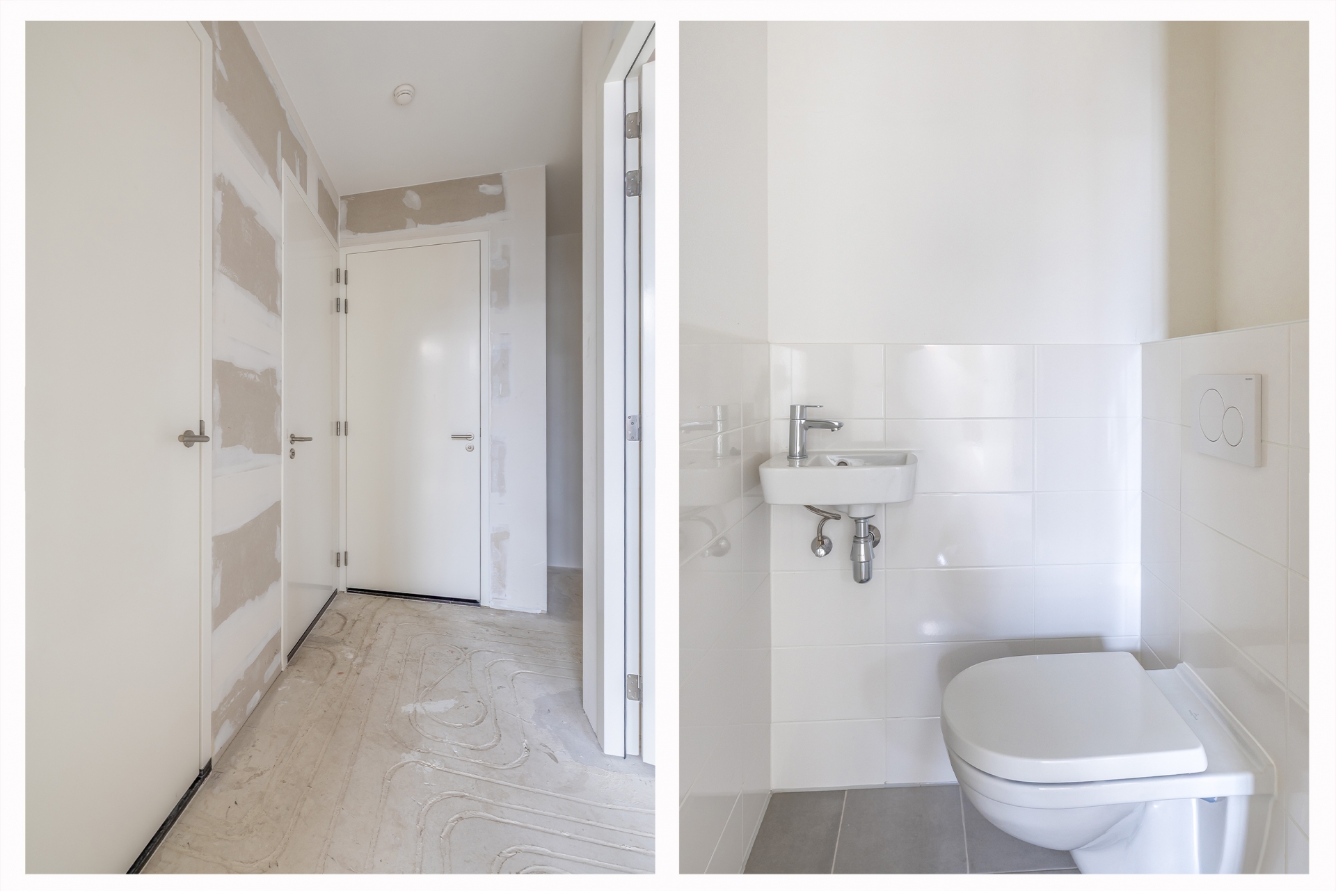 De keuken is nog niet geplaatst, maar alle aansluitingen zijn al aanwezig. Zo richt je deze ruimte volledig in naar je eigen wensen. De woonkamer is ruim opgezet, met plek voor een zithoek en eettafel. De badkamer is modern en voorzien van douche, wastafel en designradiator.