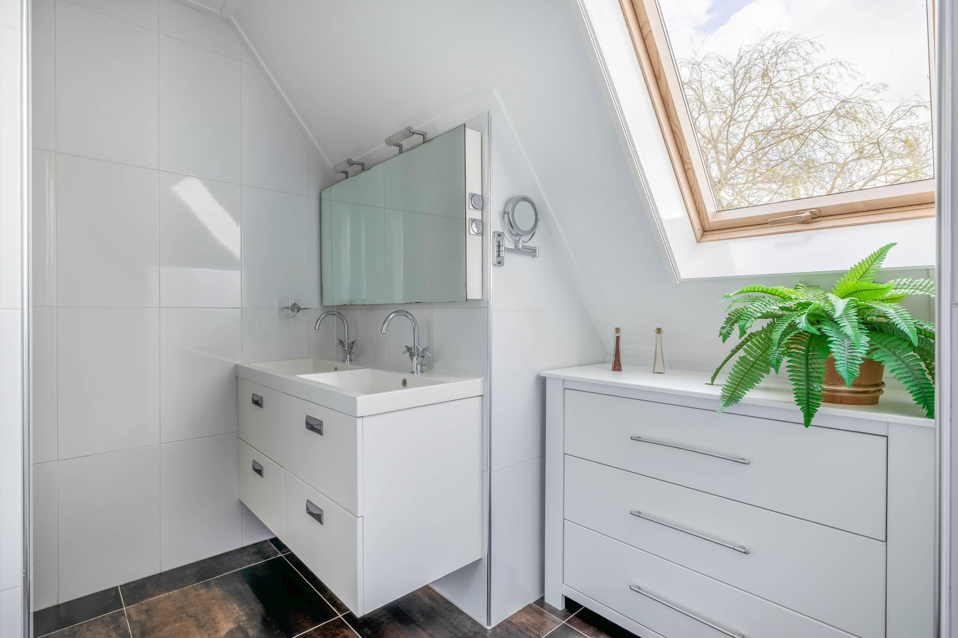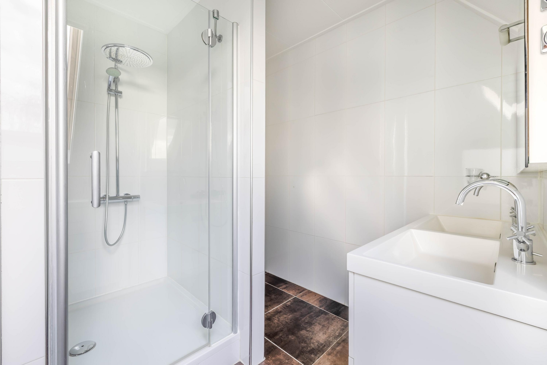 Op de eerste verdieping vind je drie ruime slaapkamers, waarbij de grootste kamer zich uitstekend leent als master bedroom. De badkamer is compleet uitgevoerd en voorzien van een dubbele wastafel met meubel, douche, toilet en bidet. Daarnaast is er een praktische inloopkast aanwezig.