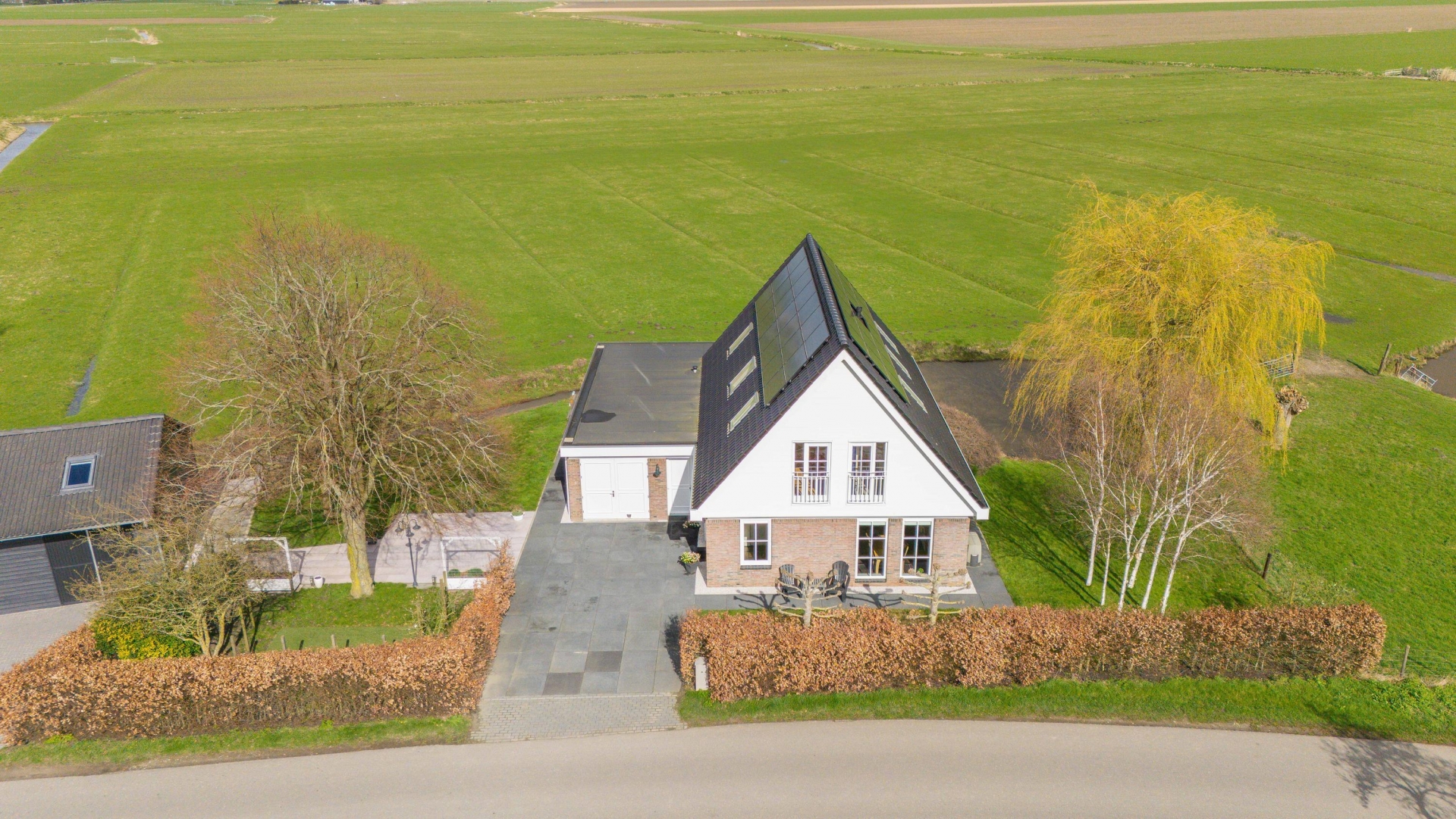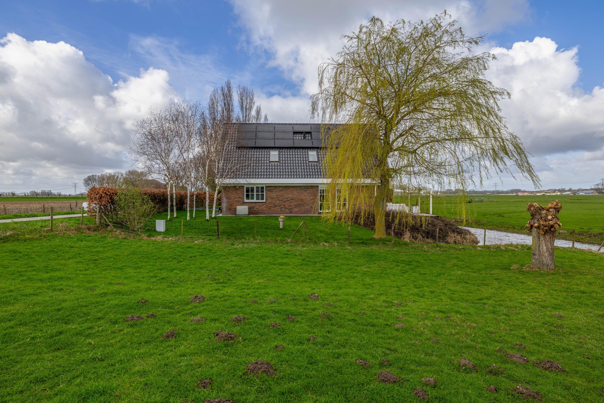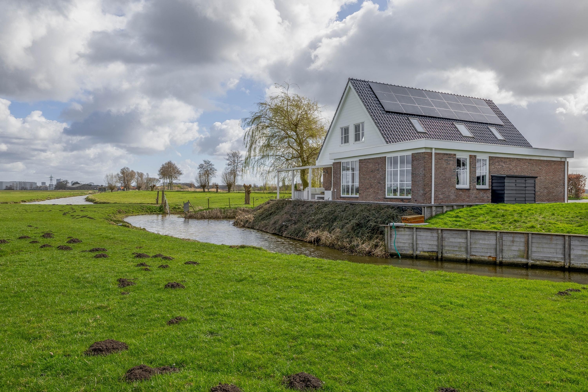 Soms kom je een plek tegen waar alles klopt. Rust, ruimte, vrijheid en comfort komen hier samen op een manier die je zelden ziet. Dit vrijstaande huis ligt op een unieke locatie aan het water, midden tussen de weilanden en het groen. Hier woon je volledig vrij, met alle privacy die je zoekt, terwijl de voorzieningen en uitvalswegen verrassend dichtbij zijn.