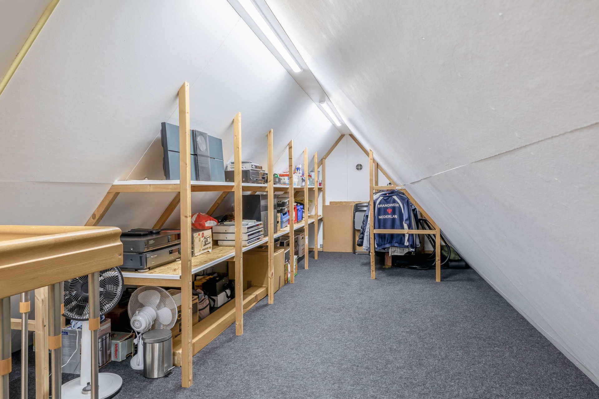 De zolder biedt bijzonder veel bergruimte op stahoogte en mogelijkheden voor verdere invulling.