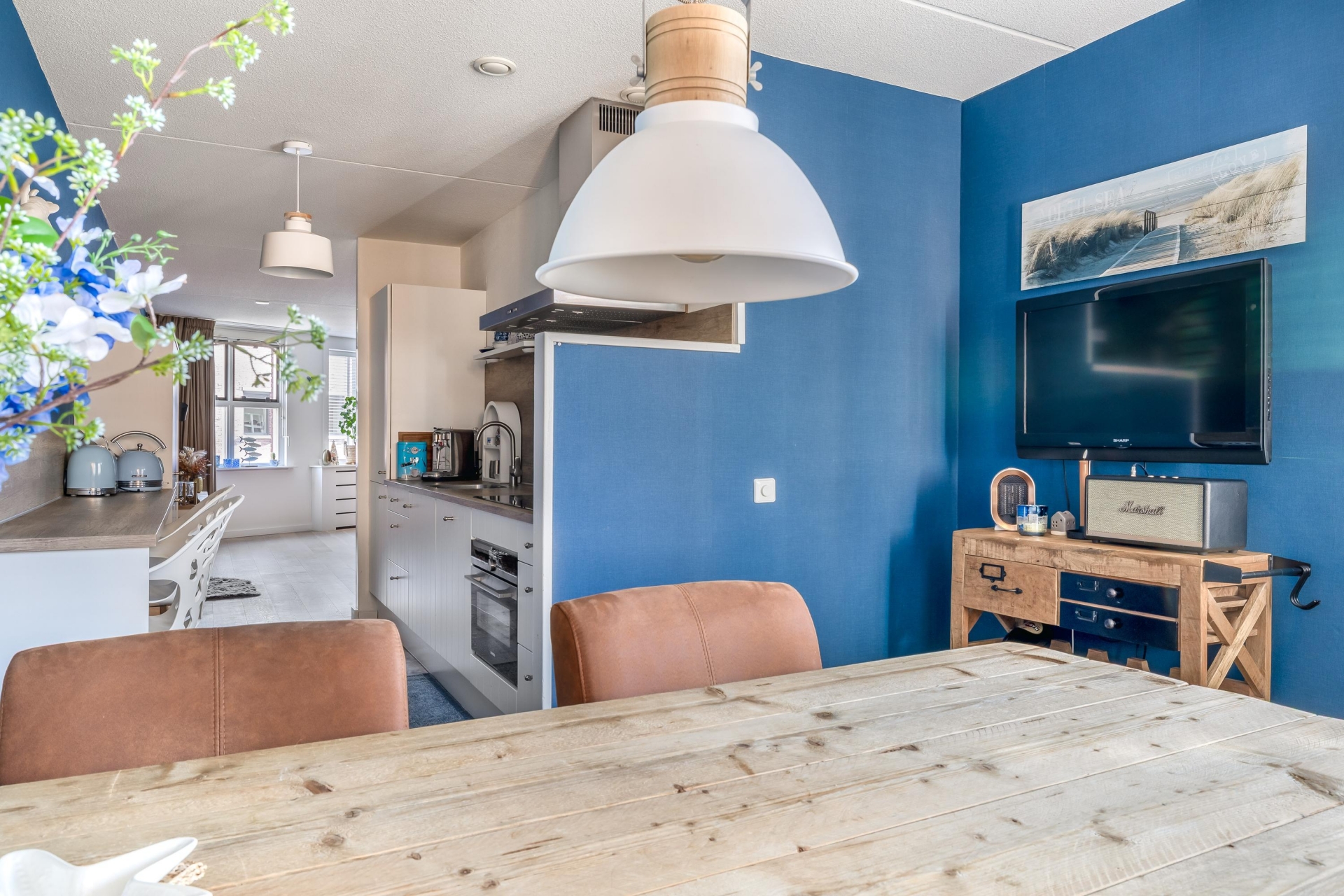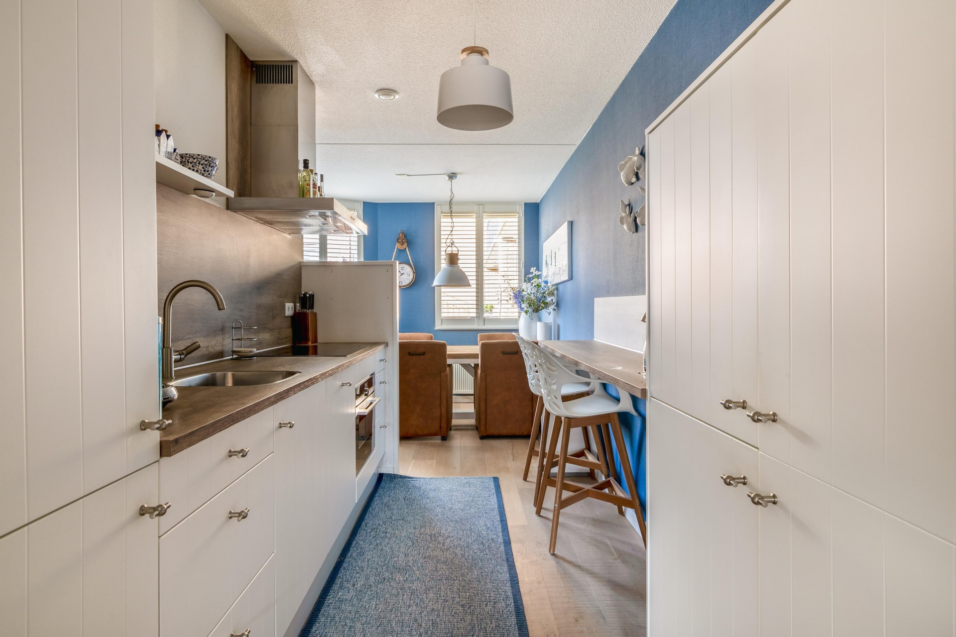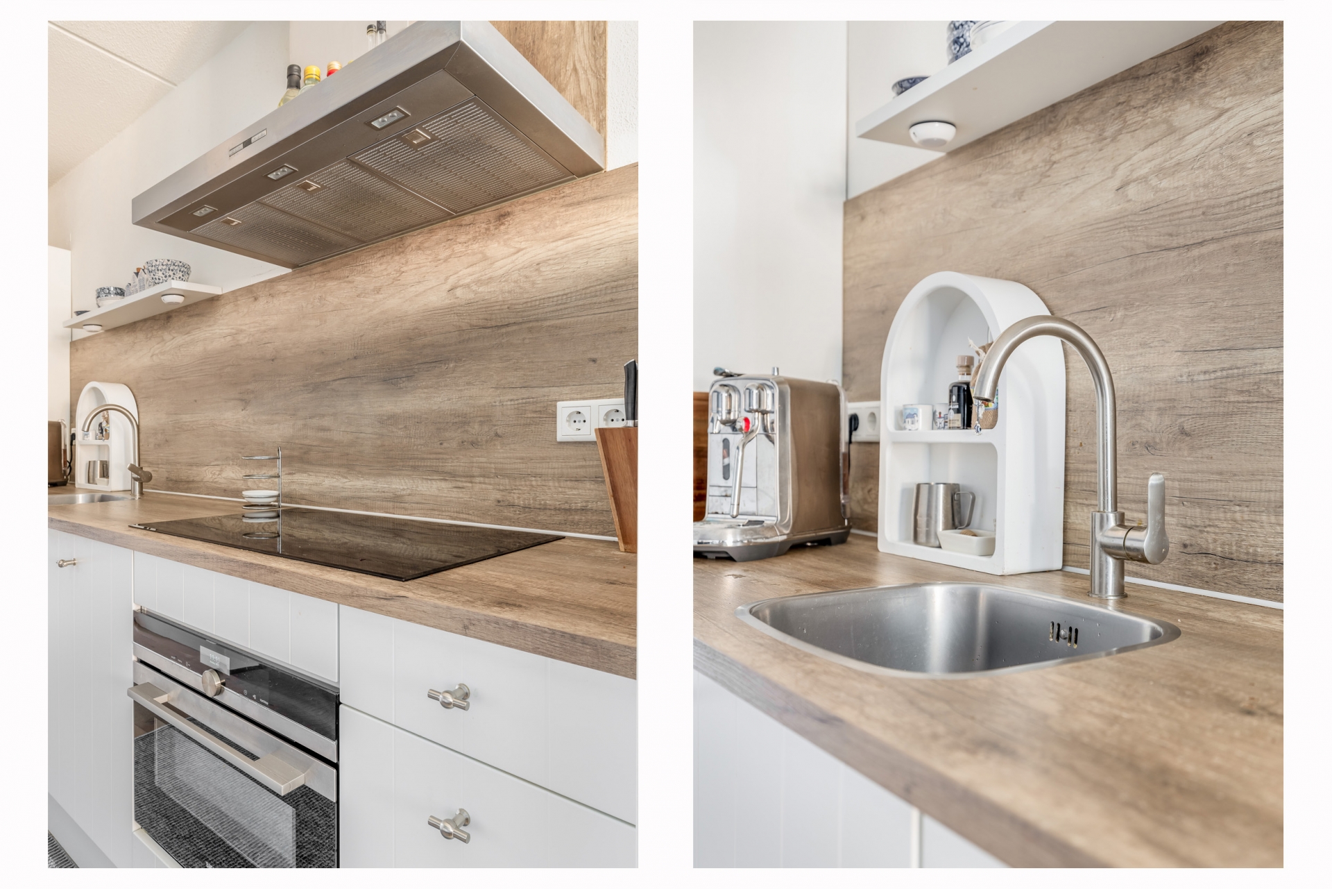 Vanuit de hal loopt u door naar de lichte woonkamer, een fijne leefruimte met grote raampartijen die zorgen voor veel natuurlijk daglicht. De open keuken sluit naadloos aan op de woonkamer en is voorzien van een apart eetgedeelte aan de voorzijde van de woning – perfect voor gezellige diners of een borrel met vrienden.