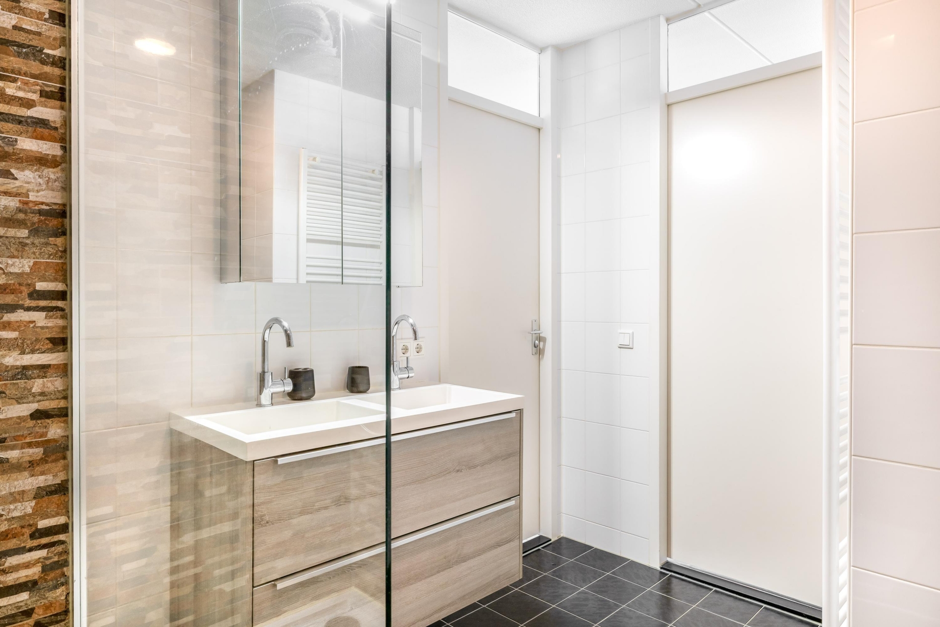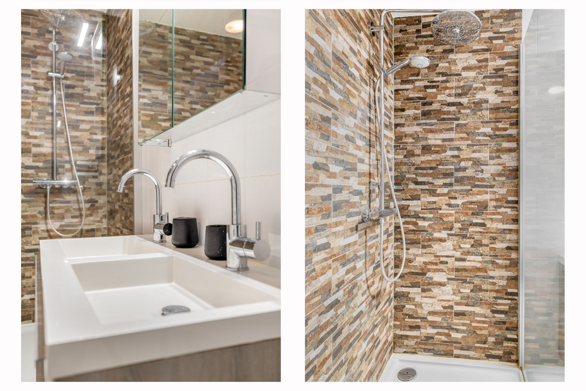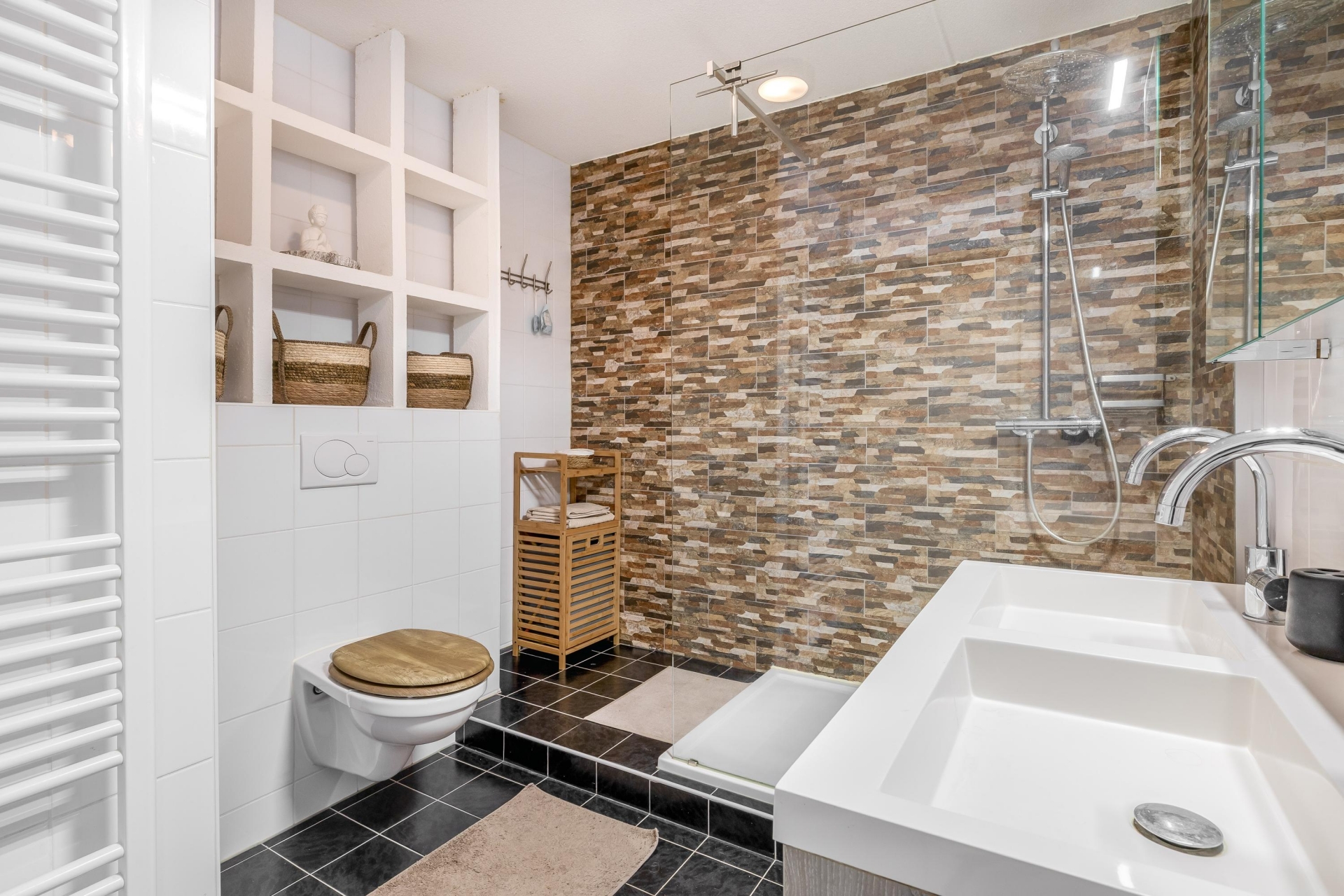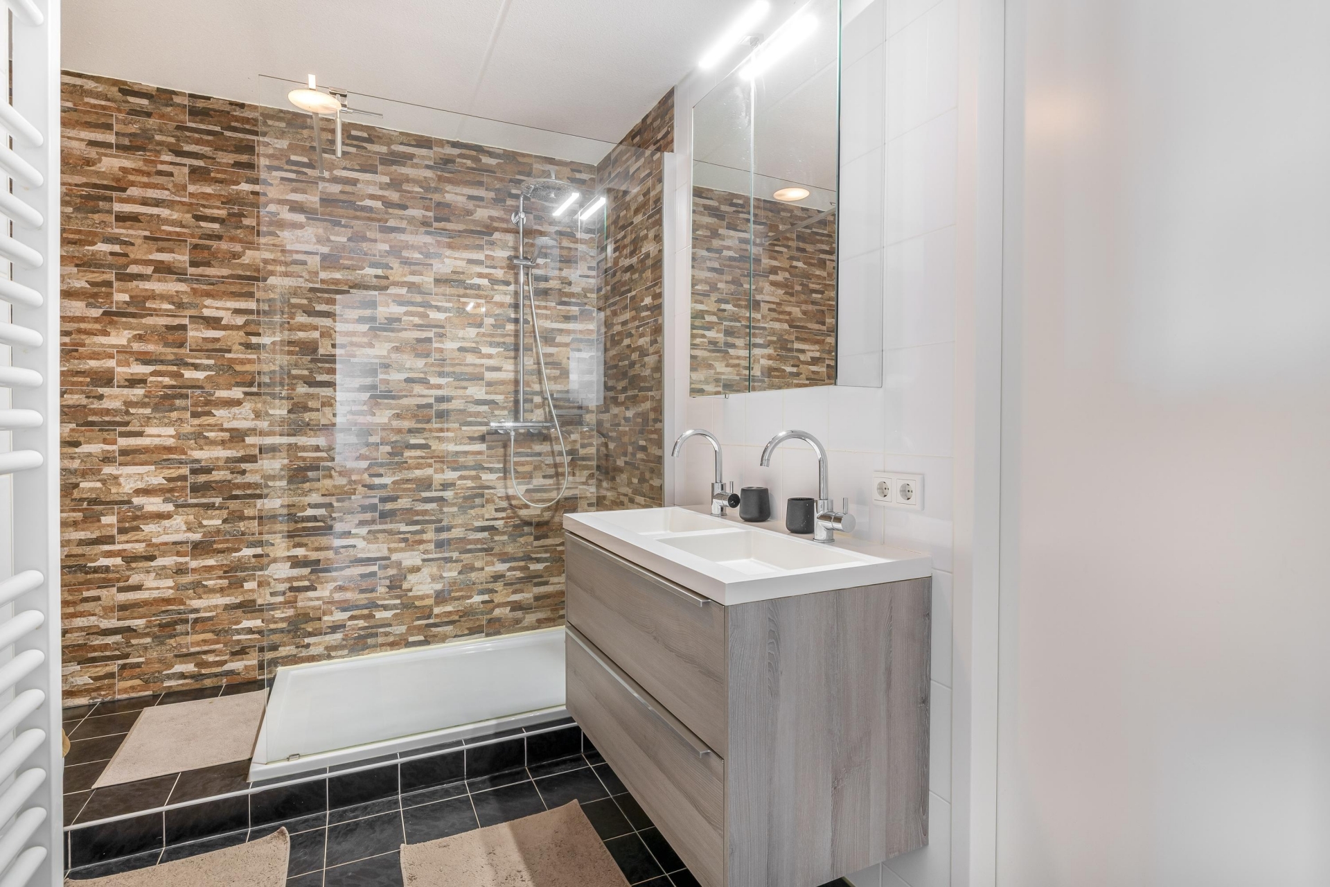 De badkamer is stijlvol afgewerkt en voorzien van een ruime inloopdouche, een tweede toilet, een dubbele wastafel met meubel en een handdoekenradiator. Vanuit zowel de hal als de badkamer bereikt u de zeer royale hoofdslaapkamer, een heerlijke plek om tot rust te komen.