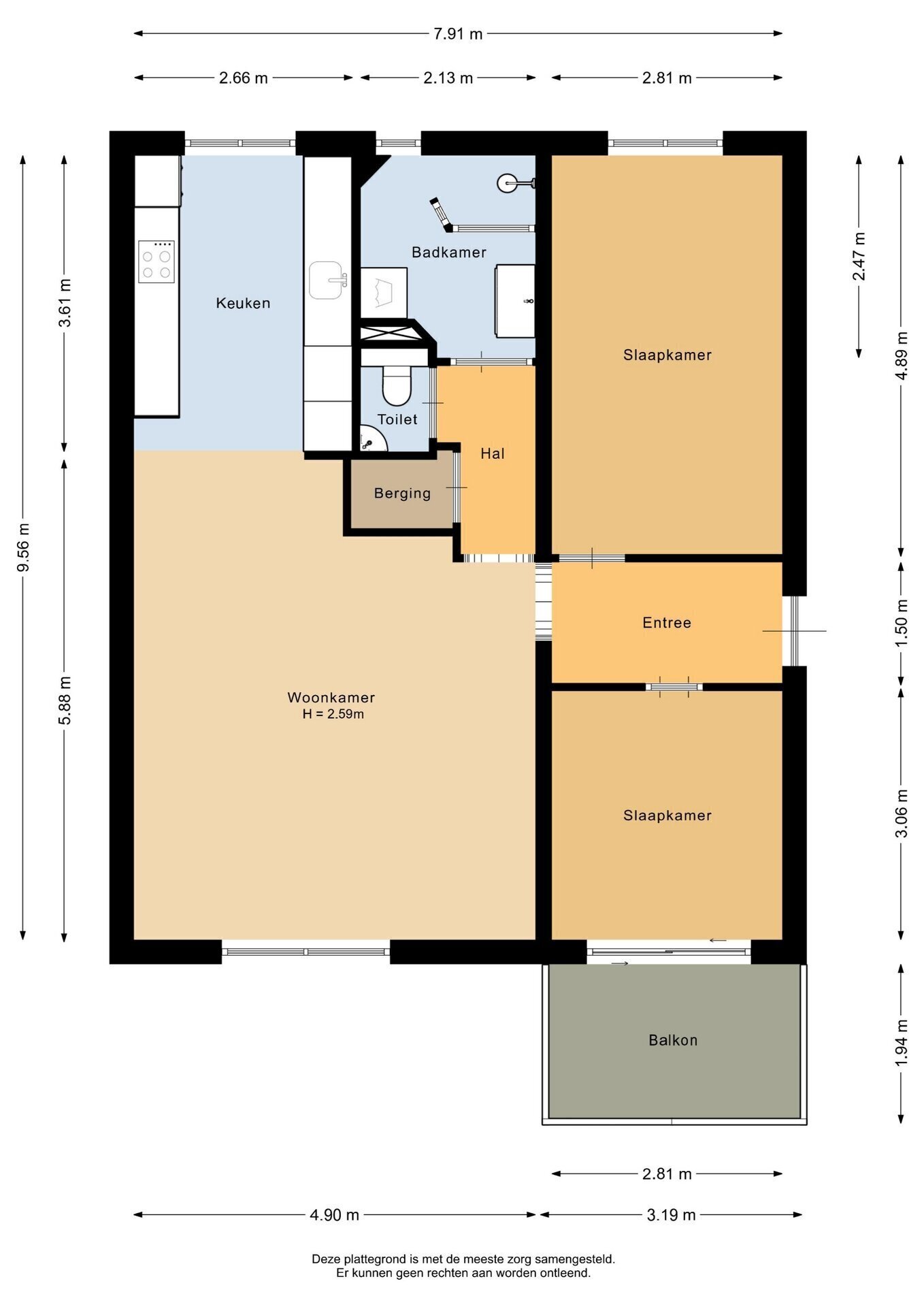 “Deze informatie is door ons met de nodige zorgvuldigheid samengesteld. Onzerzijds wordt echter geen enkele aansprakelijkheid aanvaard voor enige onvolledigheid, onjuistheid of anderszins, dan wel de gevolgen daarvan. Alle opgegeven maten en oppervlakten zijn indicatief.”
