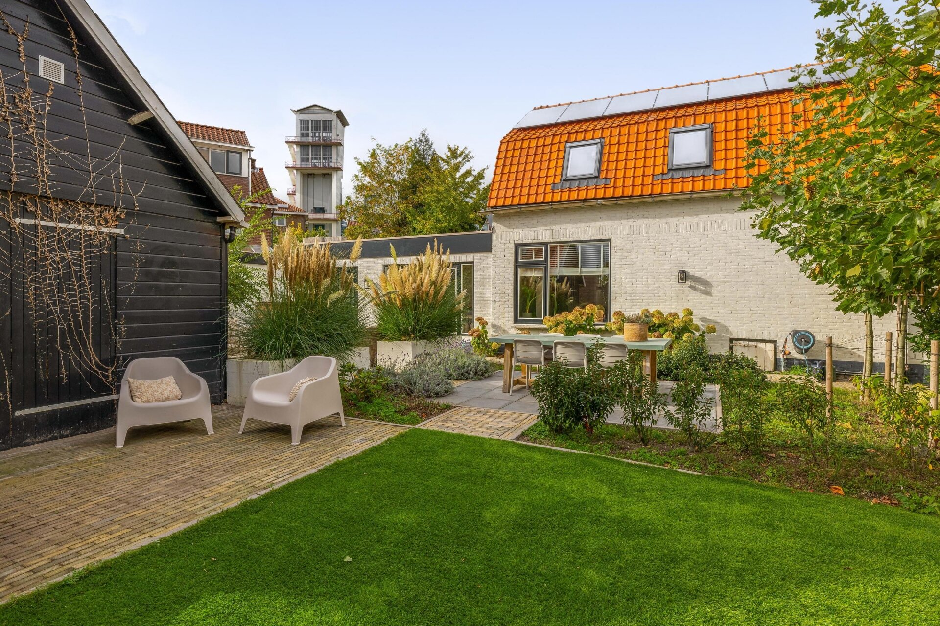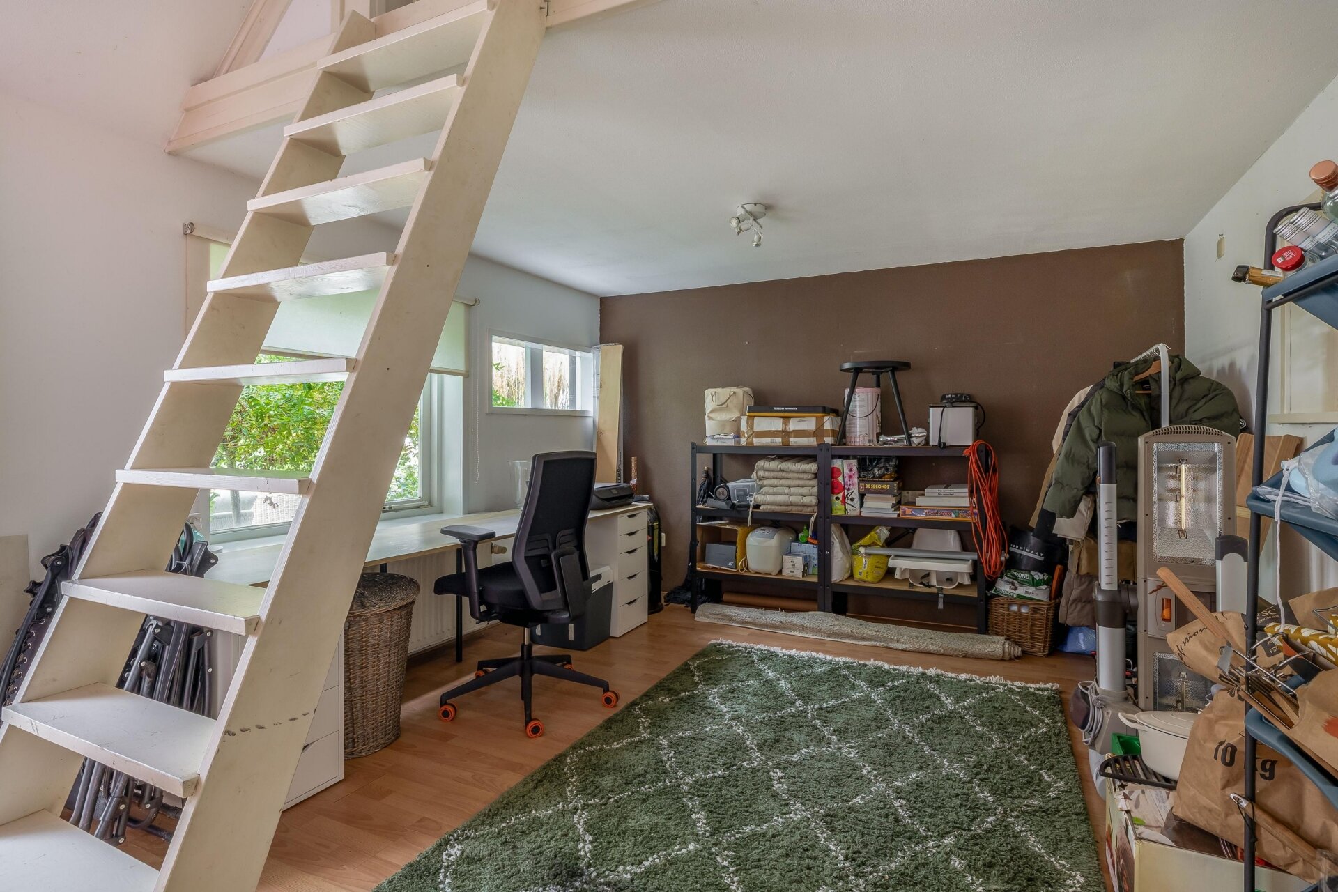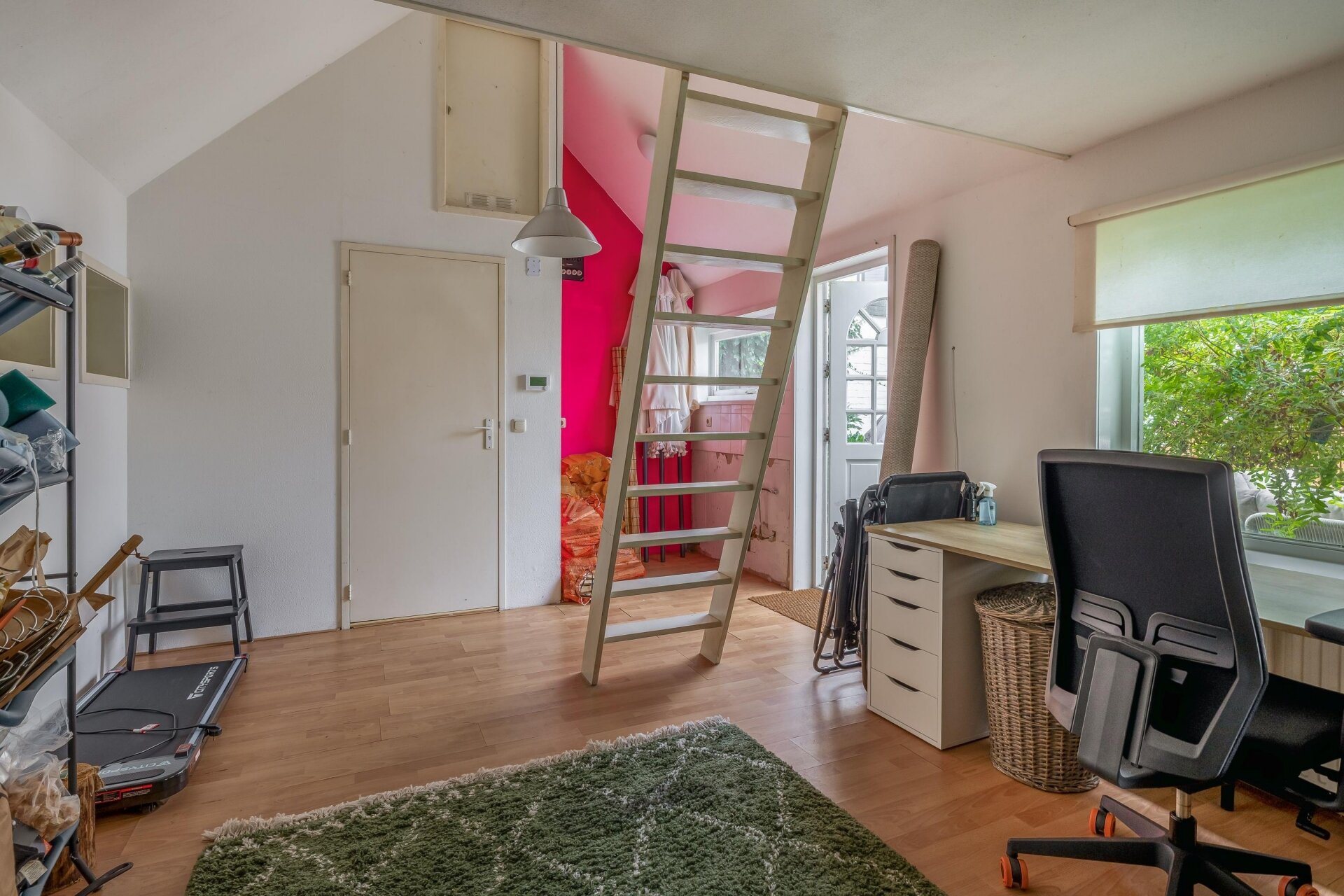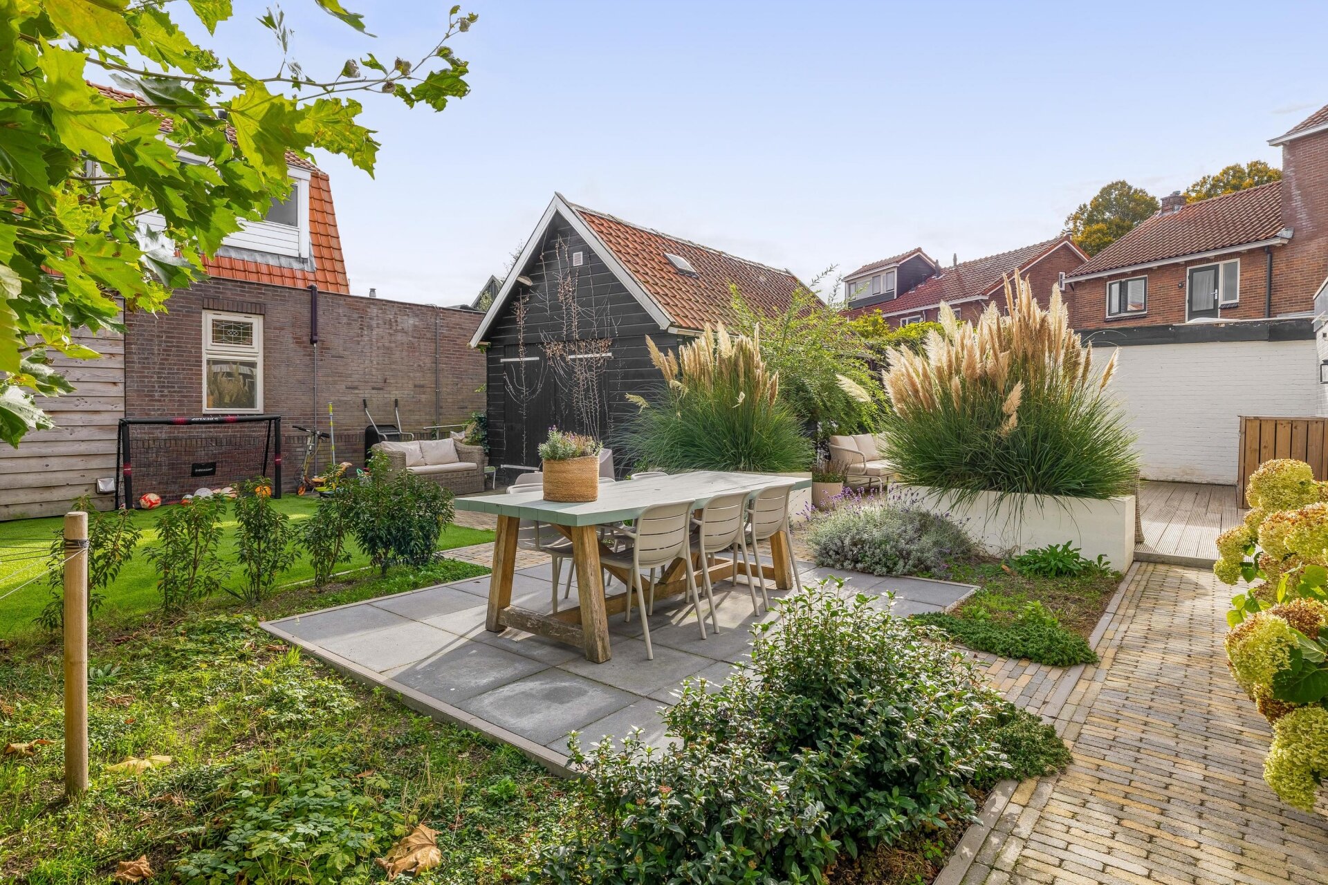 In de prachtig aangelegde tuin bevindt zich een vrijstaand bijgebouw van circa 22 m². Deze ruimte is voorzien van een eigen CV ketel, wateraansluiting en elektra, volledig vrijstaand en kan op allerlei manieren worden benut: als atelier, thuiskantoor, hobbyruimte, sportruimte of zelfs als gastenverblijf. De tuin loopt rondom het huis en is keurig onderhouden, met diverse zitplekken, borders, een fijn terras én een eigen oprit waar je kunt parkeren op eigen grond – een zeldzaamheid op deze locatie.