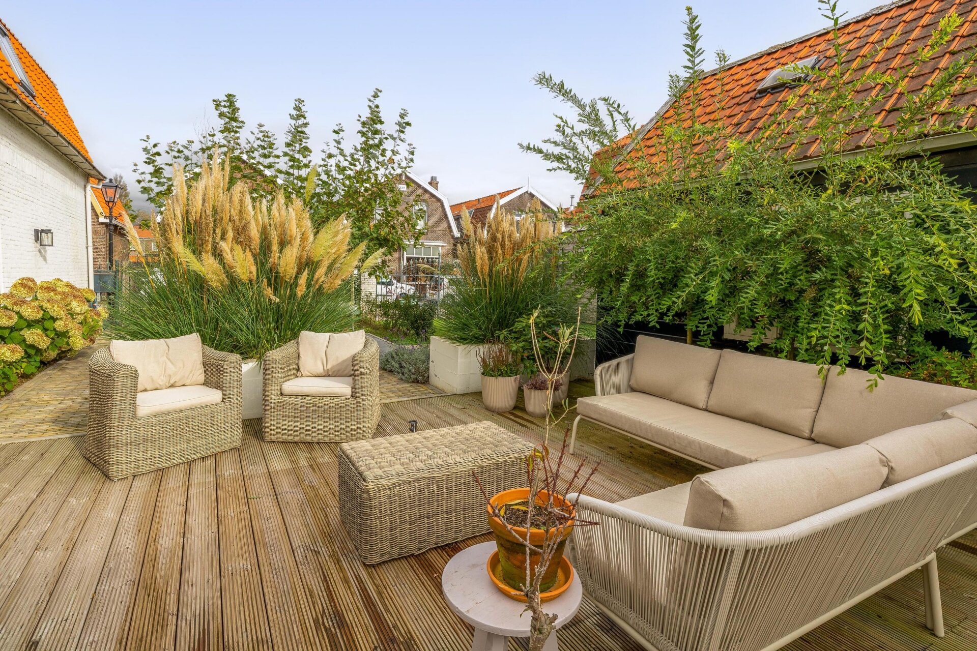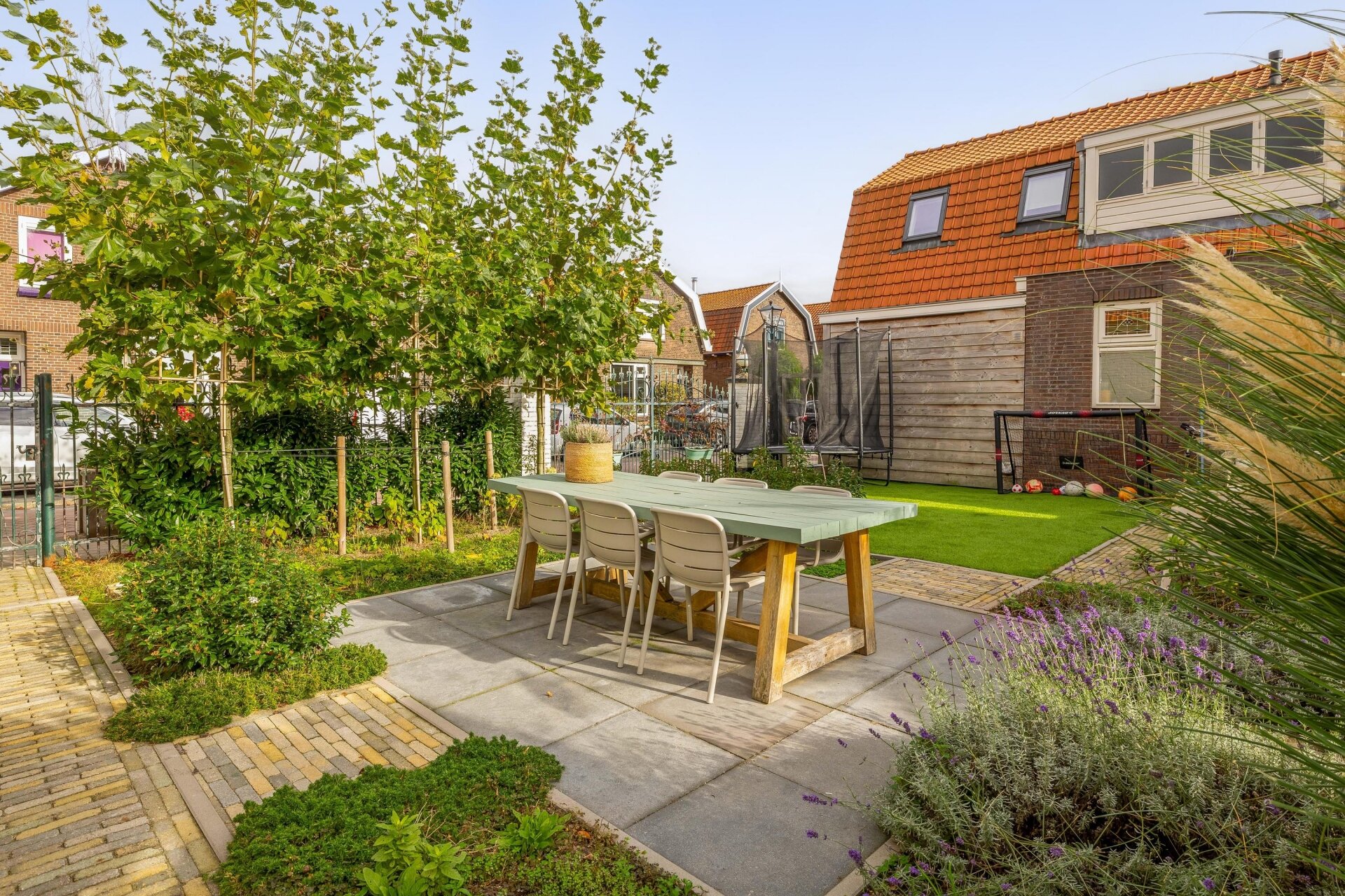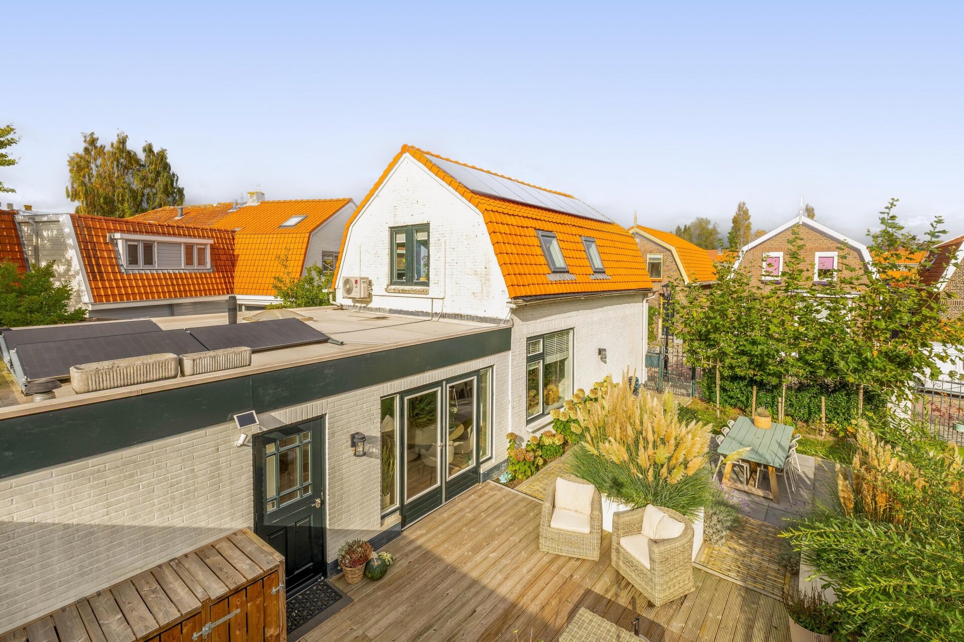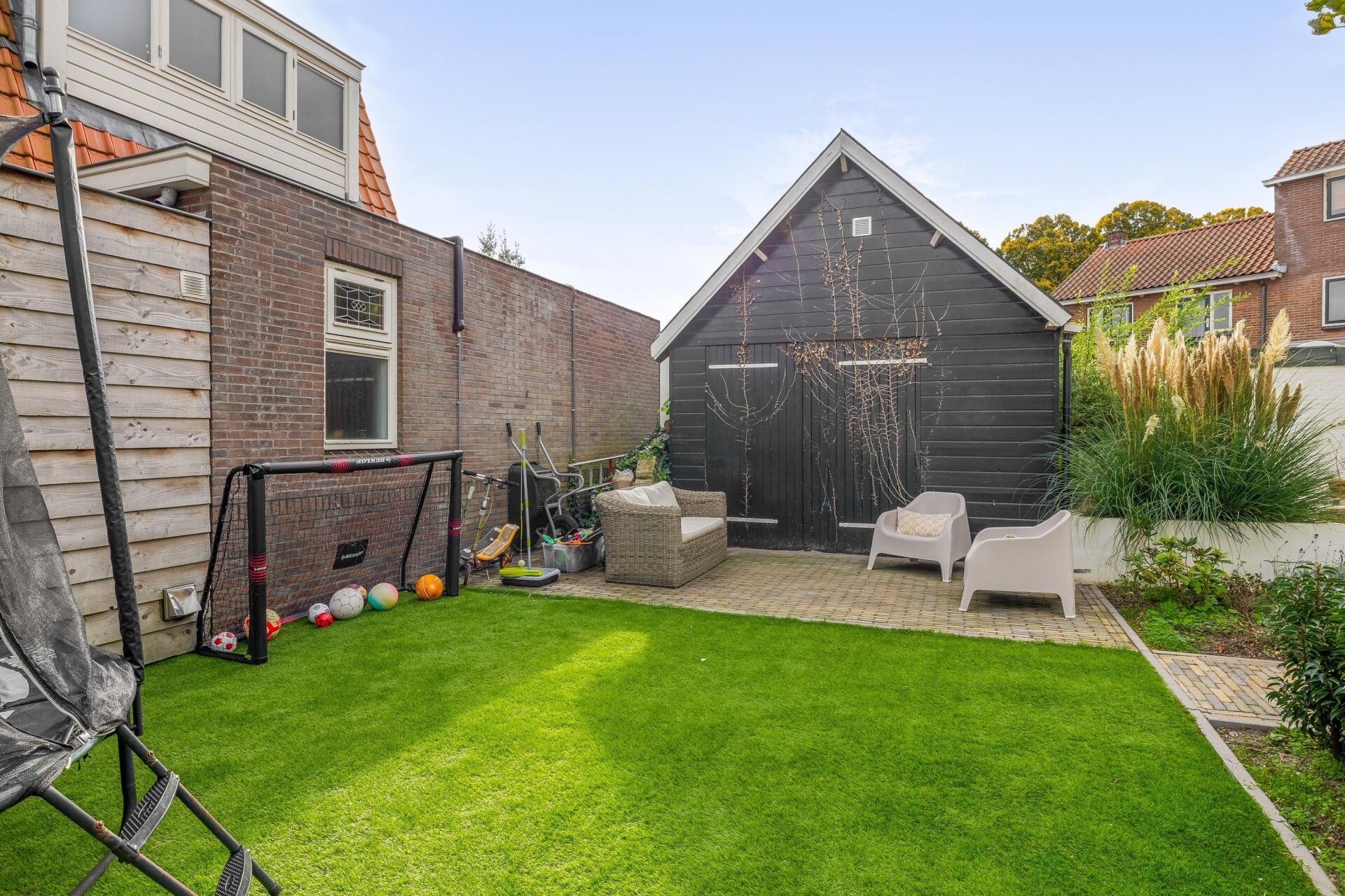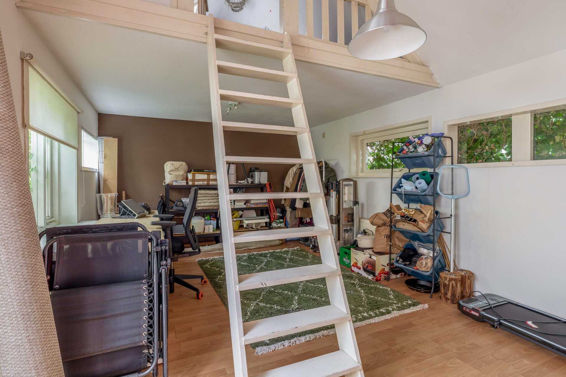 In de prachtig aangelegde tuin bevindt zich een vrijstaand bijgebouw van circa 22 m². Deze ruimte is voorzien van een eigen CV ketel, wateraansluiting en elektra, volledig vrijstaand en kan op allerlei manieren worden benut: als atelier, thuiskantoor, hobbyruimte, sportruimte of zelfs als gastenverblijf. De tuin loopt rondom het huis en is keurig onderhouden, met diverse zitplekken, borders, een fijn terras én een eigen oprit waar je kunt parkeren op eigen grond – een zeldzaamheid op deze locatie.
