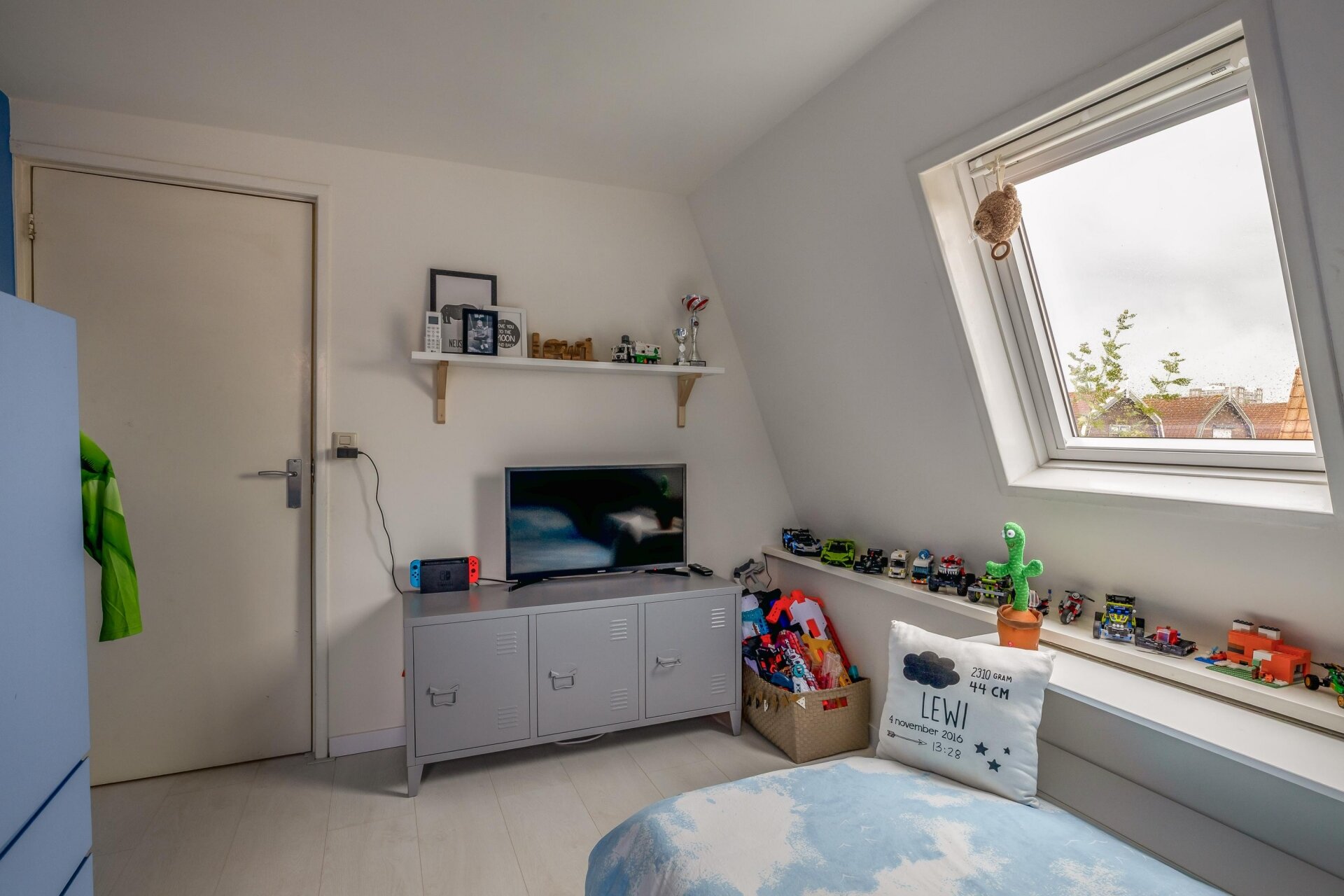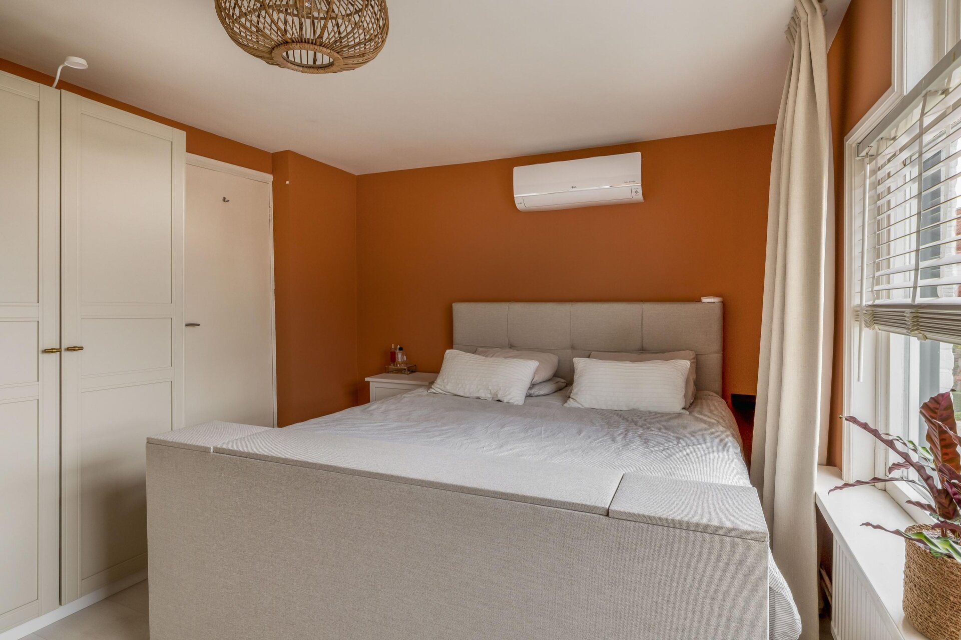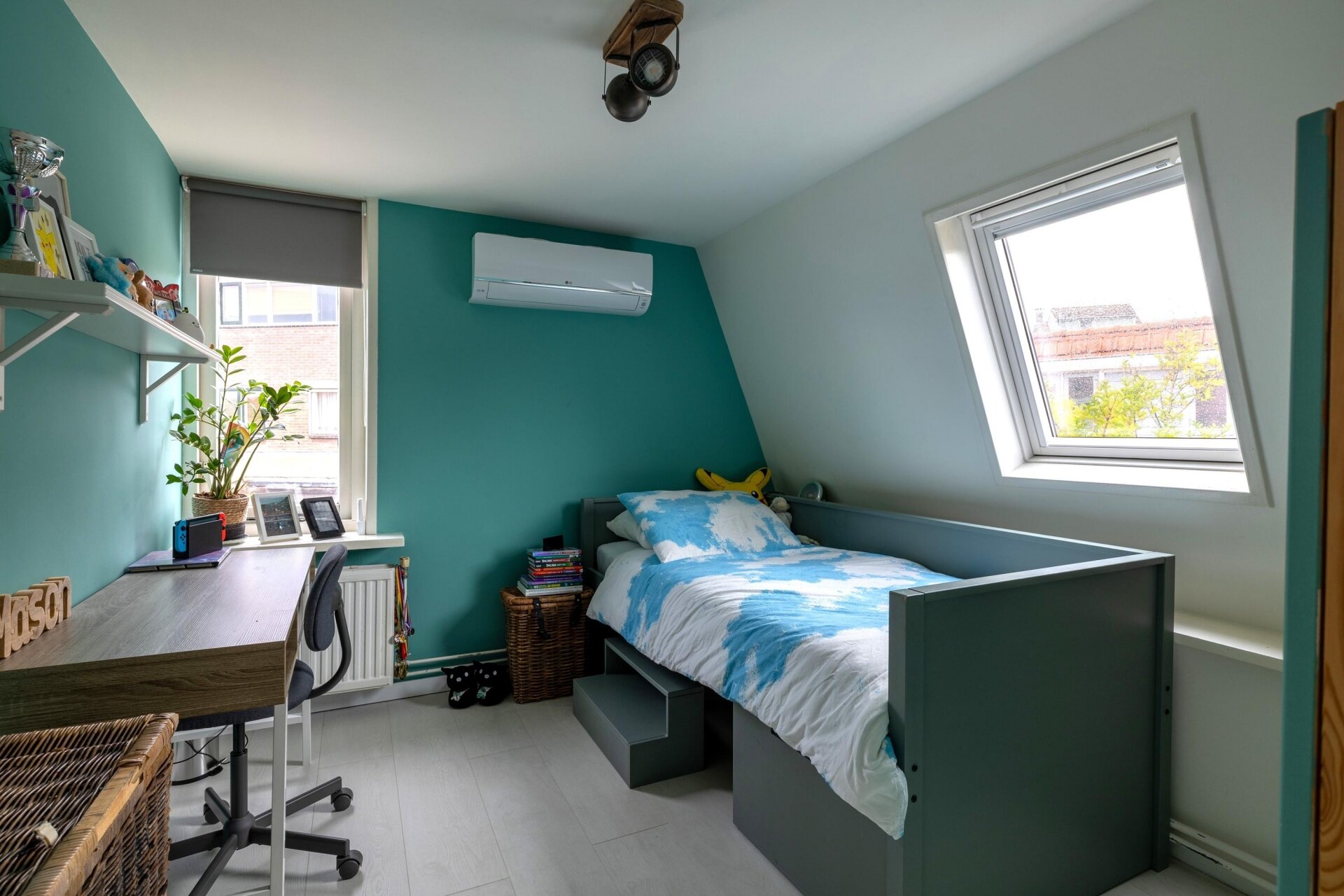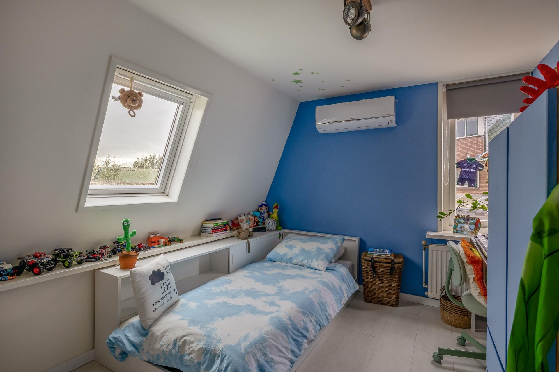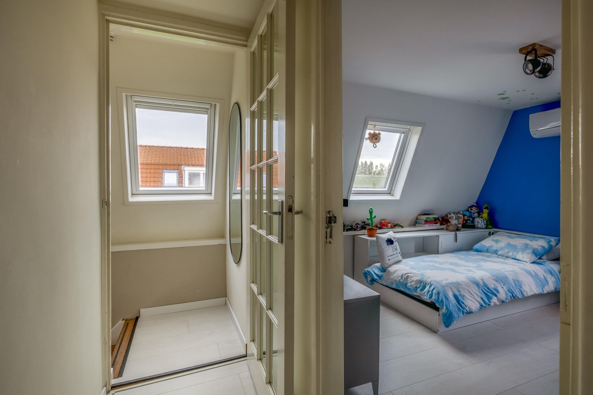 Binnen tref je een mooie balans tussen stijl en functionaliteit. De badkamer is strak en modern ingericht met een vrijstaand bad, een ruime inloopdouche, dubbele waskommen en luxe afwerkingen zoals messing kranen en groene wandtegels voor een eigentijdse look. Alle slaapkamers bevinden zich op de eerste verdieping, met een ruime hoofdslaapkamer en twee kleinere kamers die perfect geschikt zijn als logeerkamer, kinderkamer of werkruimte. De bovenverdieping heeft een sfeervolle indeling en biedt een aangename, huiselijke sfeer.