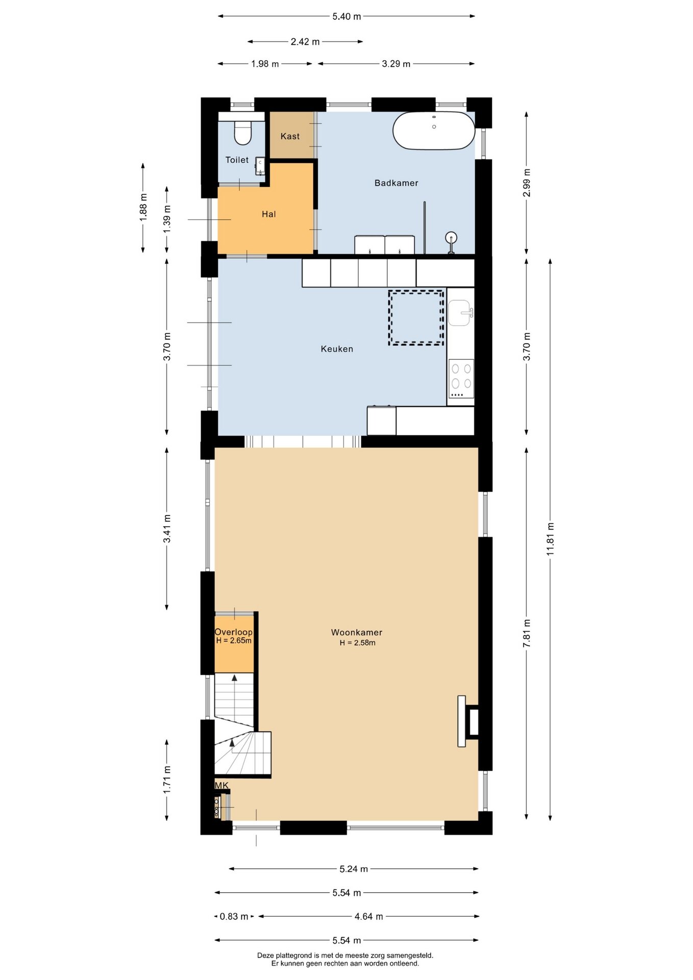 “Deze informatie is door ons met de nodige zorgvuldigheid samengesteld. Onzerzijds wordt echter geen enkele aansprakelijkheid aanvaard voor enige onvolledigheid, onjuistheid of anderszins, dan wel de gevolgen daarvan. Alle opgegeven maten en oppervlakten zijn indicatief.”
